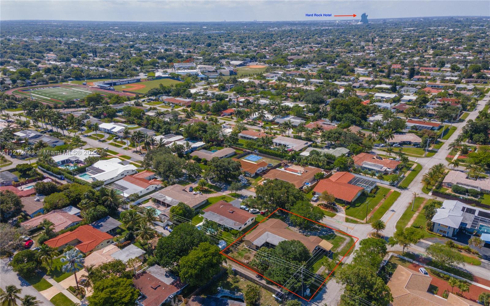 Here is the Hollywood Hills large home you have been waiting for. a profound statement of your achievement, with almost 2,800 SQFT under air and a corner lot just short of 15,000 SQFT and a true architectural design for entertaining family and friends. Offering 5 bedrooms, 4 bathrooms, formal living and dinning rooms, family room, 690 SQFT screened-in covered patio and pool. Three of the 5 bedrooms have their own bathroom and all bathrooms have been remodeled. Large kitchen w/ wood cabinets, stainless steel appliances and granite counters. Storm ready w/ 2016 impact windows. Two NEW central air units and all NEW air ducts. In addition, 2015 shingle roof, 24x24 ceramic tile, privacy fence, sprinkler system, circular driveway and septic system serviced in 2022. A HOME YOU’LL BE PROUD TO OWN!