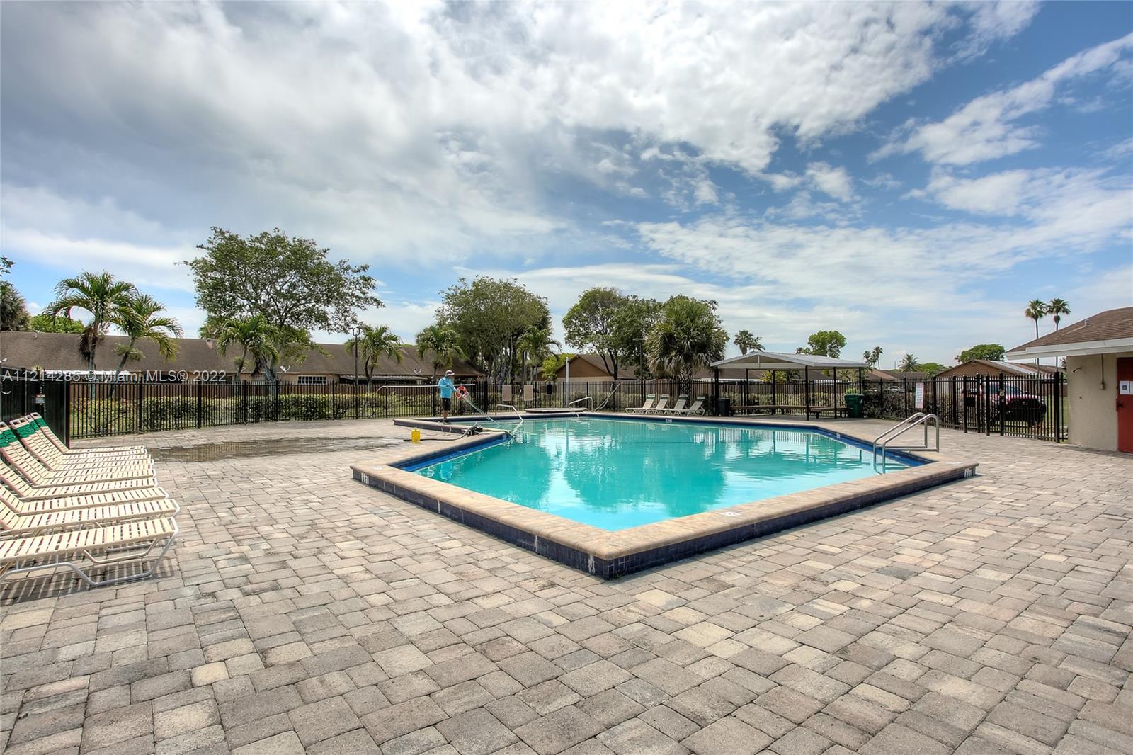 Corner property with only one neighbor. Spacious & bright 2/2 townhouse offers tiled flooring throughout. Washer|Dryer located inside the unit. Large covered back yard. Two assigned parking spaces in front of your unit + guests. Community offers 24 hour security, tennis courts, pool and children's playground. Currently leased but will be vacant at the time of closing. New Roof.
