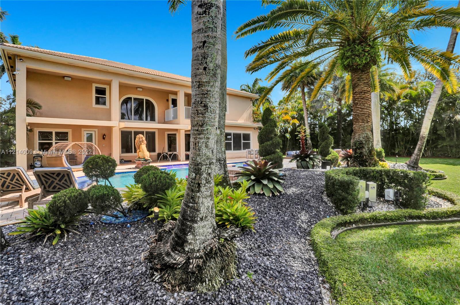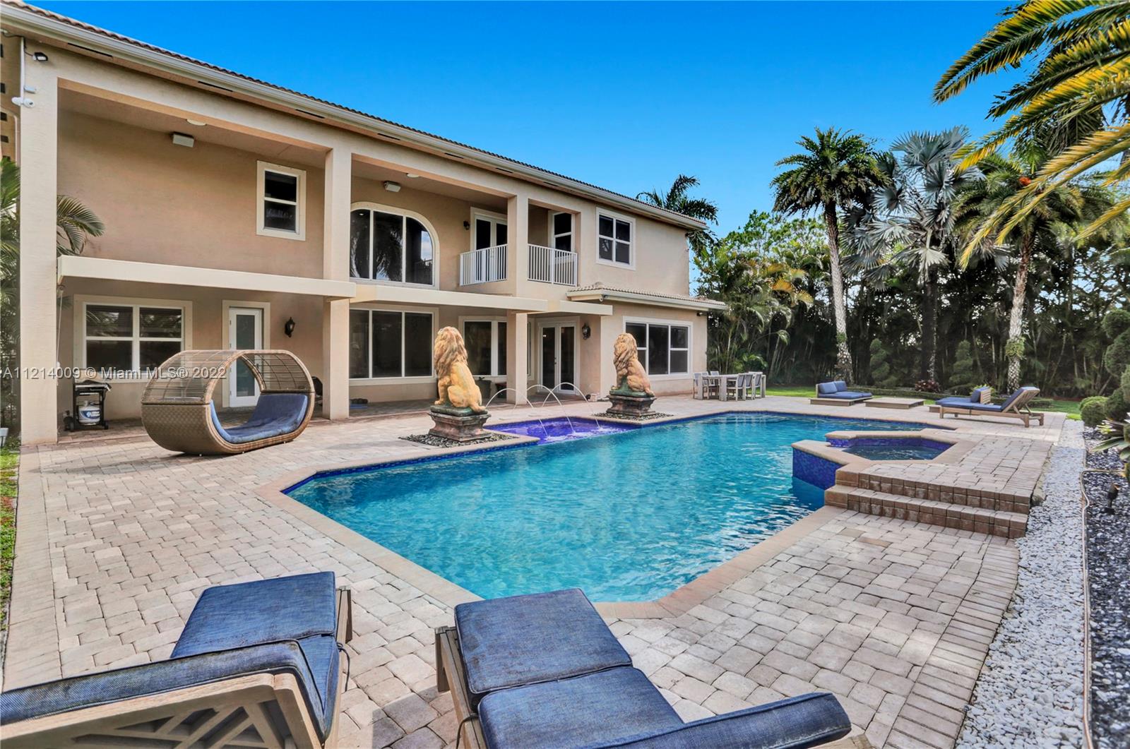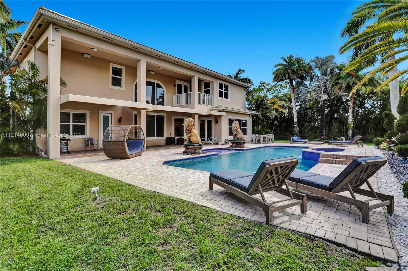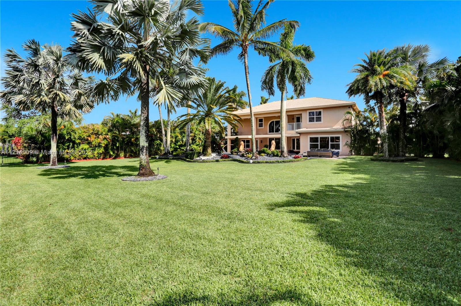 Welcome to this Majestic 6 bed/4.5 bath pool home in the gated Community of Riverstone in Davie. This gorgeous updated home sits on one of the largest culde- sac lots. This exquisite home comes with upgraded floors, cabinets and an amazing custom kitchen featuring Wolf Appliances; sub-zero refrigerator; and a beautiful island, the interior features exceptional living and family room space, with a formal dining room and an office. Looking for backyard space to entertain then come see this very private lot. The master suite features his and hers bathrooms an oversized sitting area, his and hers walk in closets Over 100k in newly installed Impact windows throughout the house. Enjoy this very Tranquil private back yard with Lush landscaping
