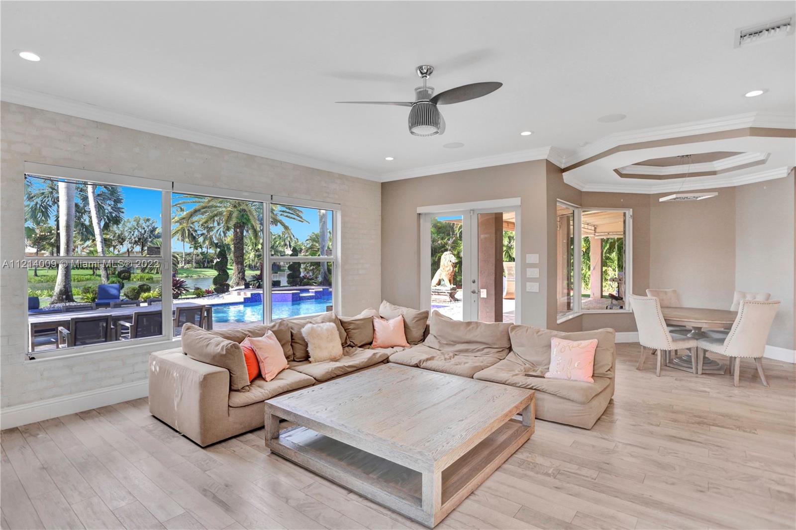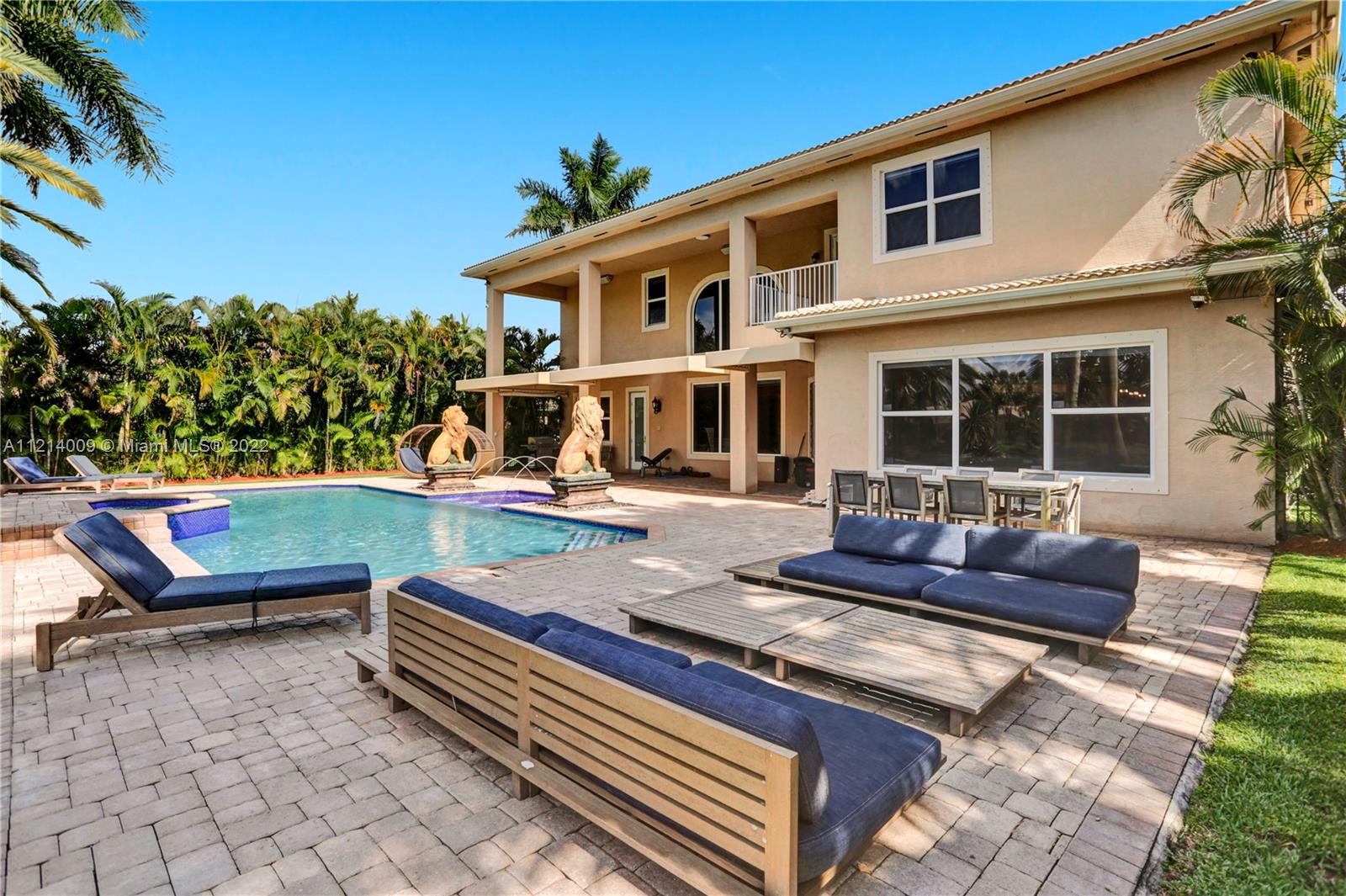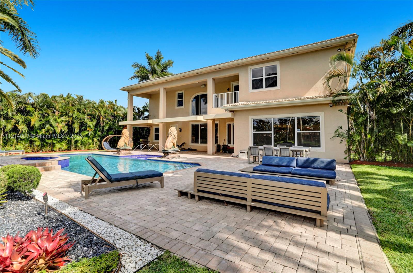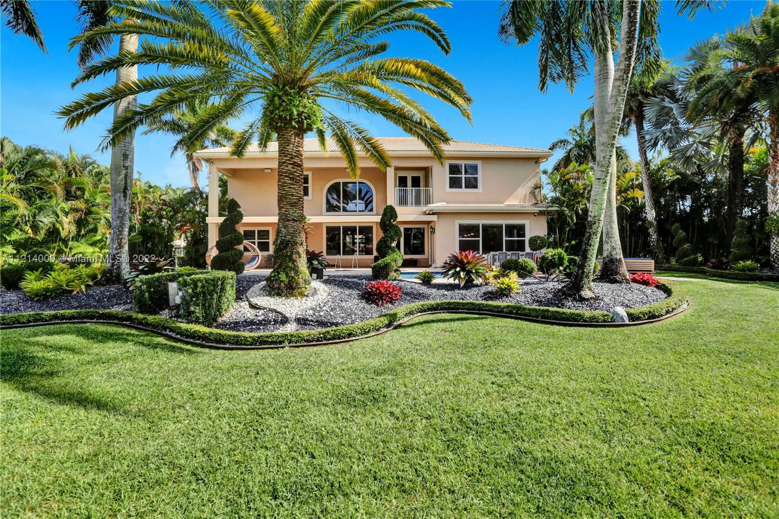 Welcome to this Majestic 6 bed/4.5 bath pool home in the gated Community of Riverstone in Davie. This gorgeous updated home sits on one of the largest culde- sac lots. This exquisite home comes with upgraded floors, cabinets and an amazing custom kitchen featuring Wolf Appliances; sub-zero refrigerator; and a beautiful island, the interior features exceptional living and family room space, with a formal dining room and an office. Looking for backyard space to entertain then come see this very private lot. The master suite features his and hers bathrooms an oversized sitting area, his and hers walk in closets Over 100k in newly installed Impact windows throughout the house. Enjoy this very Tranquil private back yard with Lush landscaping