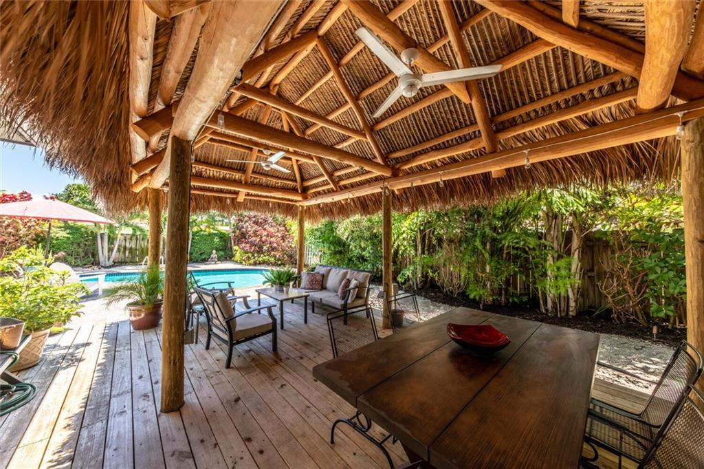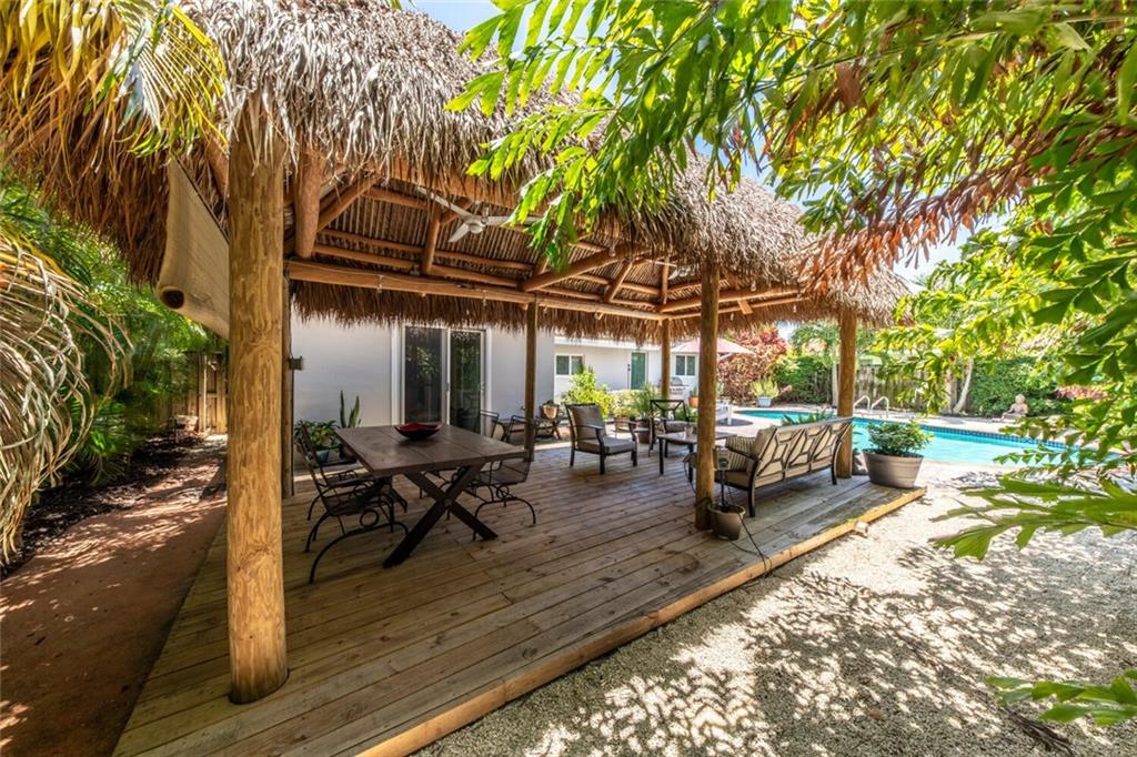 THIS 4/2 POOL HAS AN OPEN AND INVITING LIVING SPACE THAT IS IDEAL FOR FAMILY AND ENTERTAINING. THE HOME BOASTS THE FOLLOWING; STUNNING CHEF'S KITCHEN WITH PANTRY, TONS OF STORAGE, NEWER STAINLESS APPLIANCES AND QUARTZ COUNTERTOPS (2020), HURRICANE IMPACT WINDOWS & DOORS, TILE FLOORING THROUGHOUT, PRIVATE AND TRANQUIL LUSH BACK YARD WITH HEATED POOL (2020),OUTDOOR SHOWER, HUGE TIKI HUT (20X10) THAT IS A GREAT WAY TO ENJOY THE YARD ALL YEAR ROUND. FANTASTIC LOCATION AND MINUTES TO SHOPPING, RESTAURANTS AND THE BEACH.