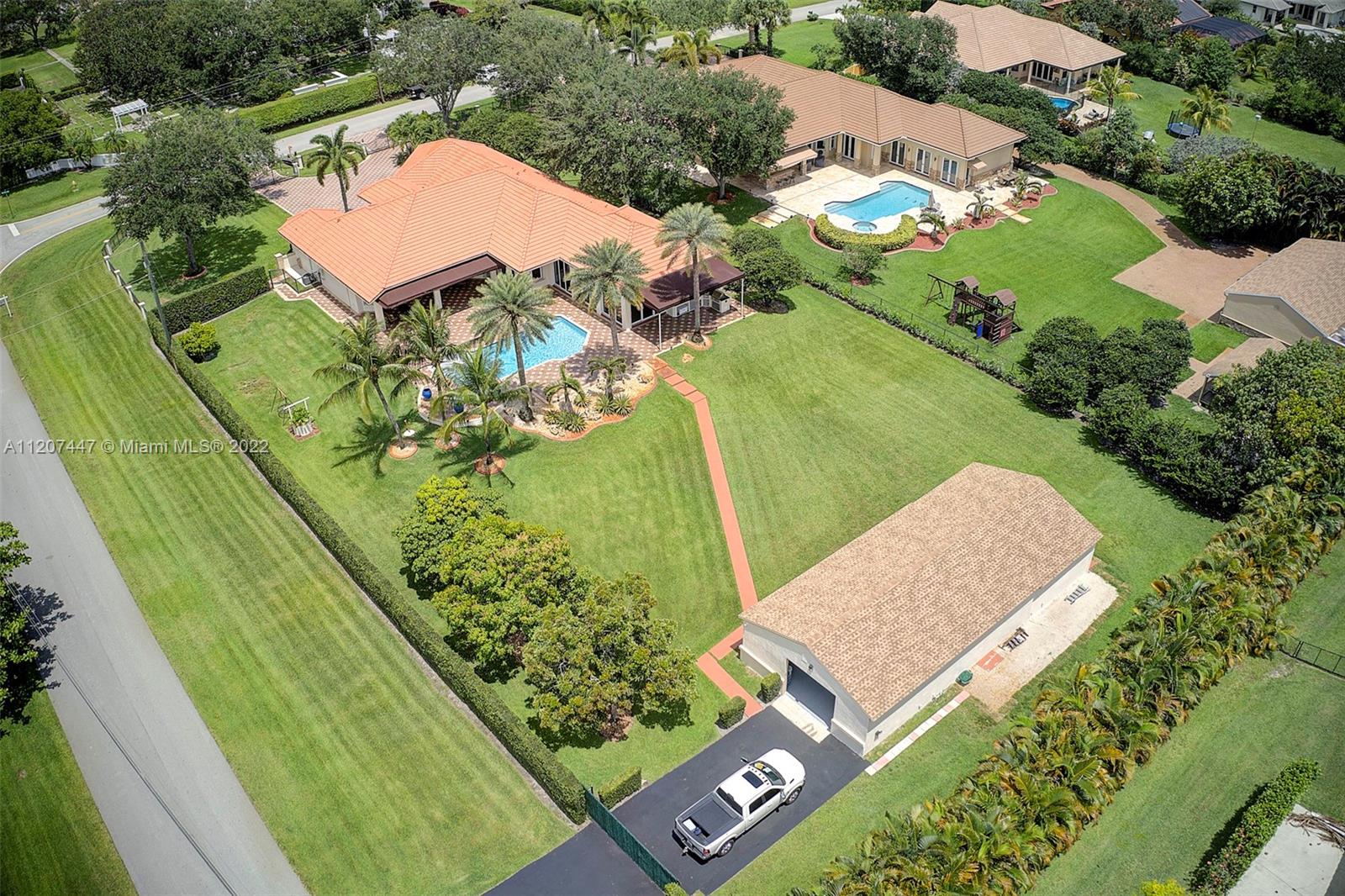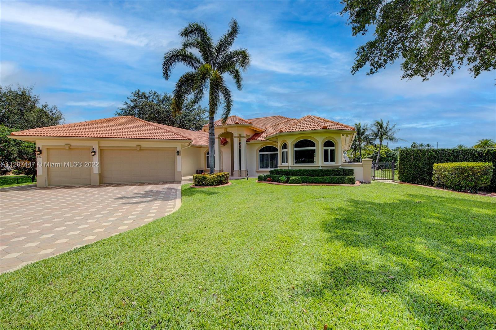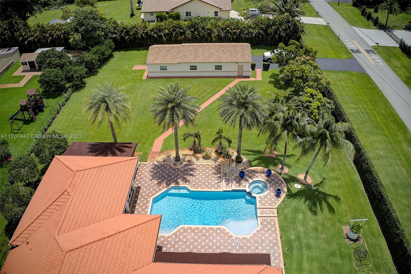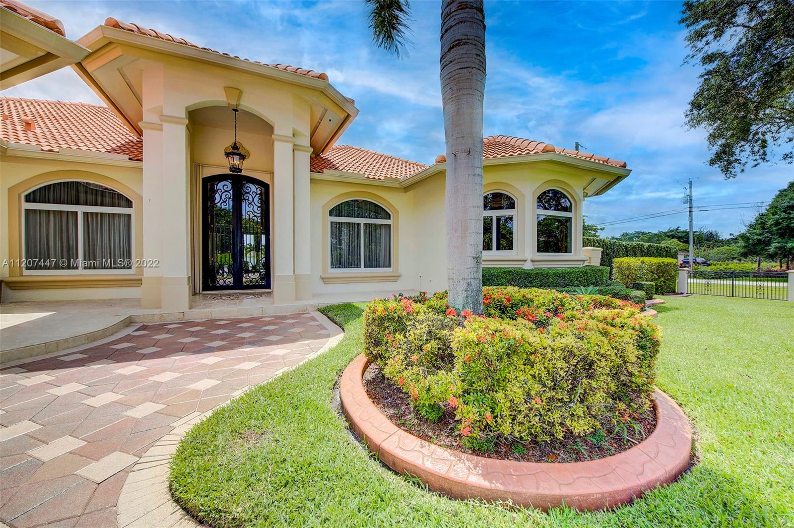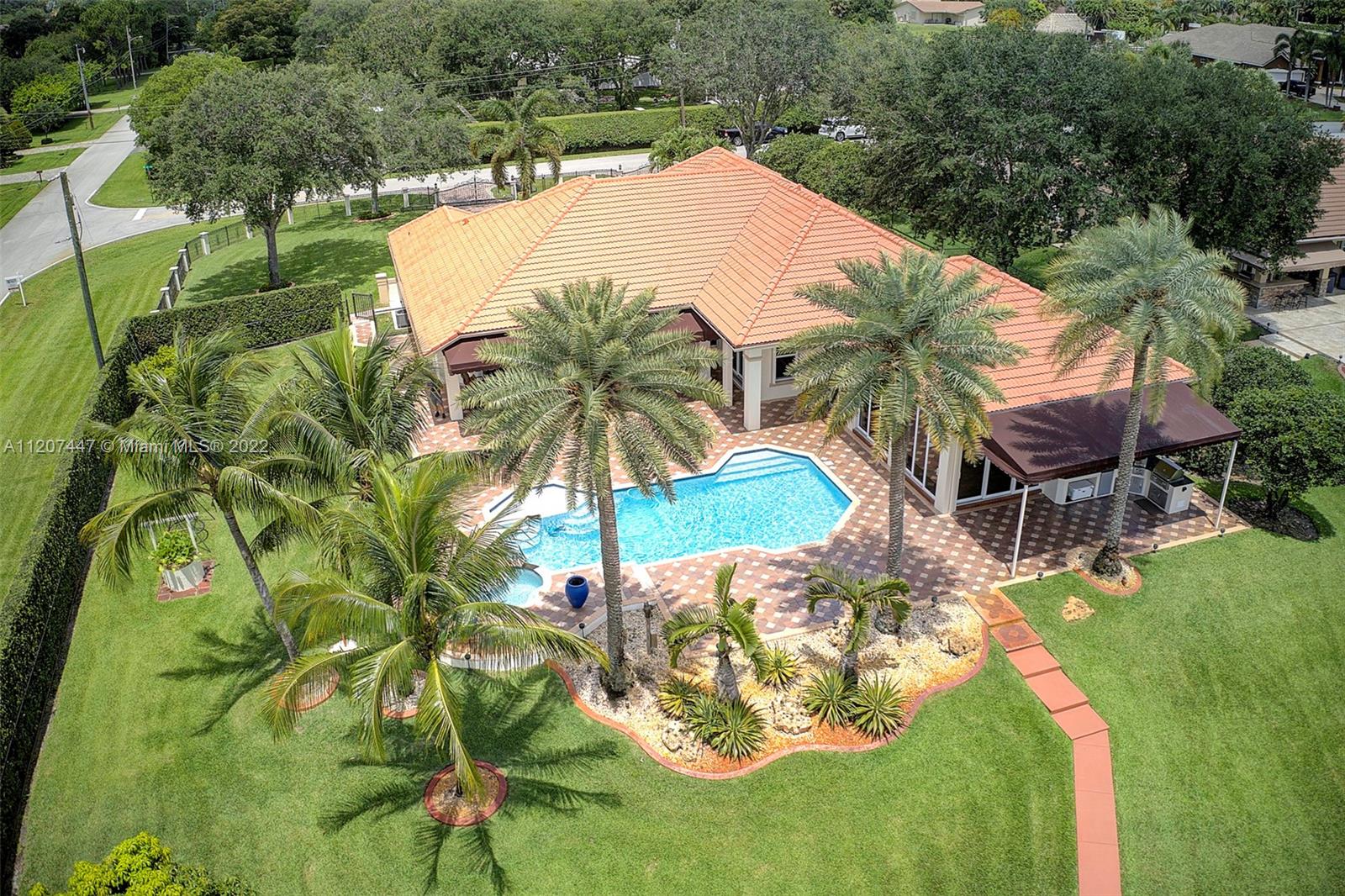 Welcome to the highly sought after neighborhood of Plantation Acres! From the moment you pull into the over sized corner lot you are greeted with a beautiful metal electric gate, circular drive way & lush landscape which highlight the prime lot in the central acres. Prepare to be amazed as you step inside this spacious triple split floor plan. This is a 4 bedroom, 3 bath estate that is situated on an acre of land! Aside from the bedrooms you have a HUGE media/game room with a custom full bar. An office with all built in custom cabinetry. Porcelain floors & new kitchen. Sparkling renovated & modernized pool views, Resort style tropical oasis & built in BBQ area. BONUS is the detached 997 sqft garage which is partially under a/c. Perfect for a gym, car collection or so much more. Must See!