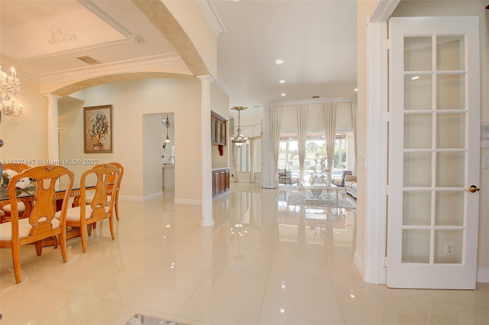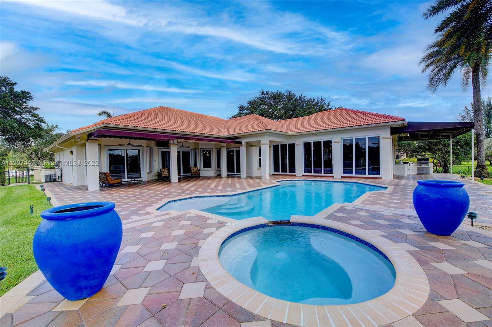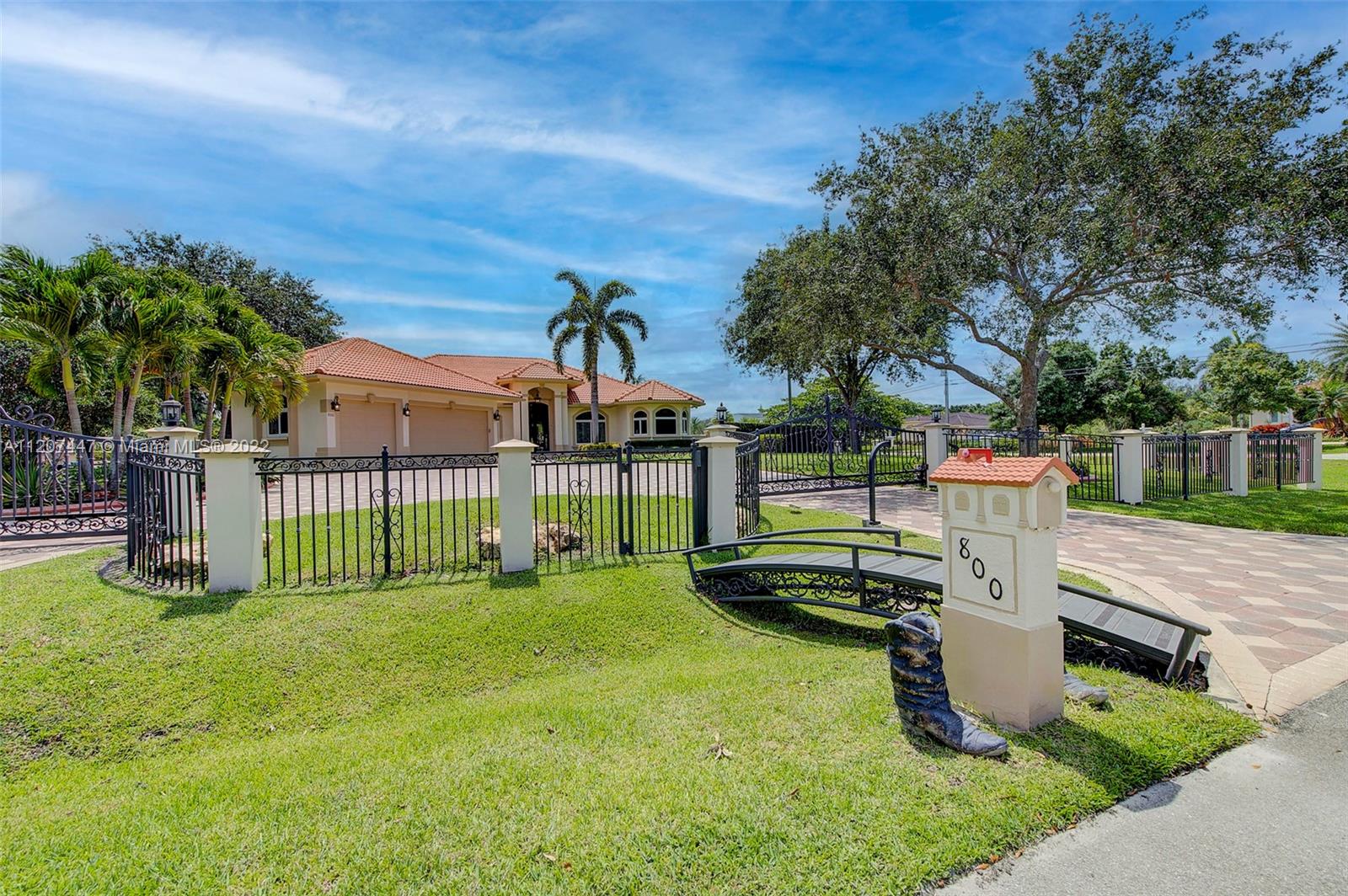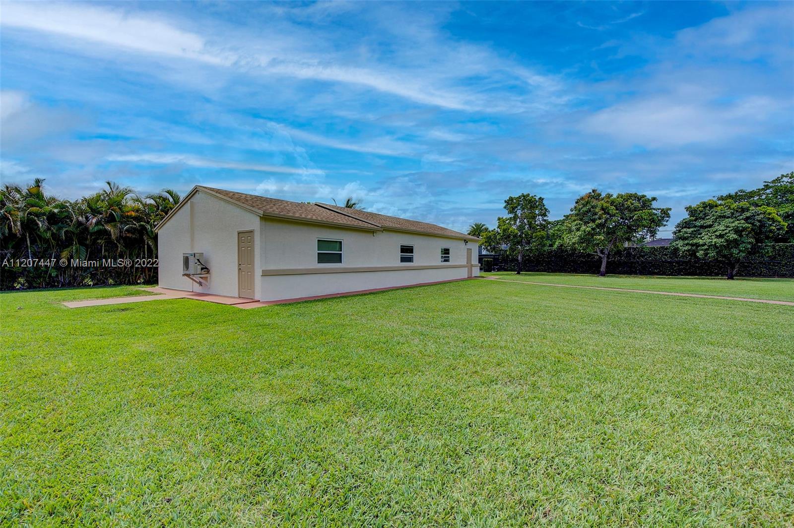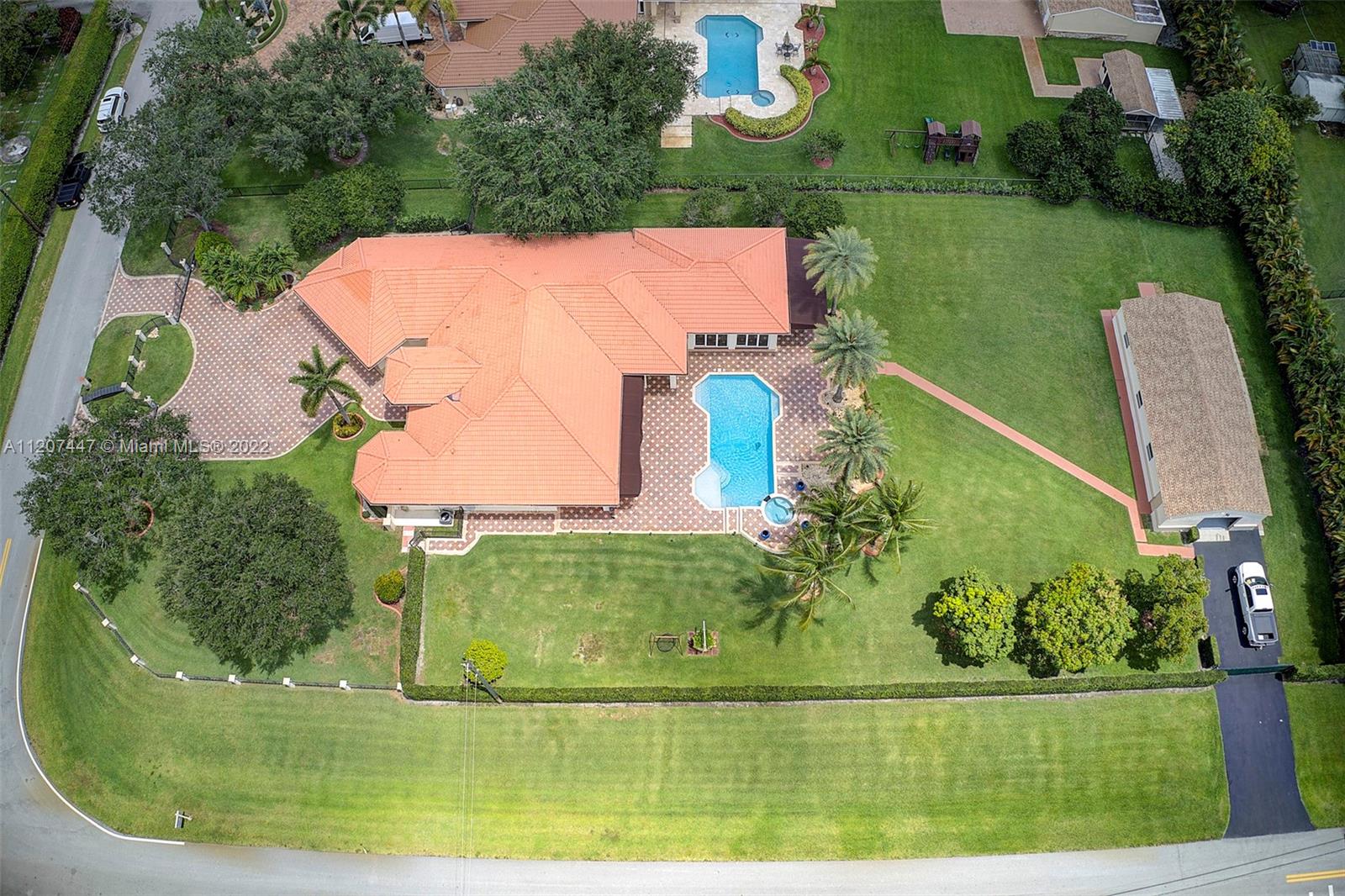 Welcome to the highly sought after neighborhood of Plantation Acres! From the moment you pull into the over sized corner lot you are greeted with a beautiful metal electric gate, circular drive way & lush landscape which highlight the prime lot in the central acres. Prepare to be amazed as you step inside this spacious triple split floor plan. This is a 4 bedroom, 3 bath estate that is situated on an acre of land! Aside from the bedrooms you have a HUGE media/game room with a custom full bar. An office with all built in custom cabinetry. Porcelain floors & new kitchen. Sparkling renovated & modernized pool views, Resort style tropical oasis & built in BBQ area. BONUS is the detached 997 sqft garage which is partially under a/c. Perfect for a gym, car collection or so much more. Must See!