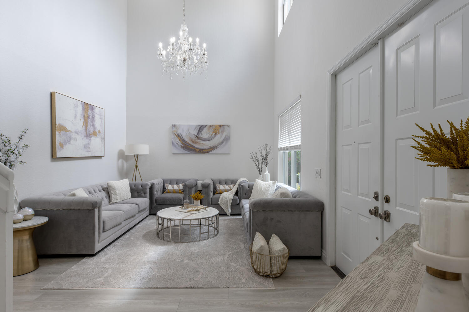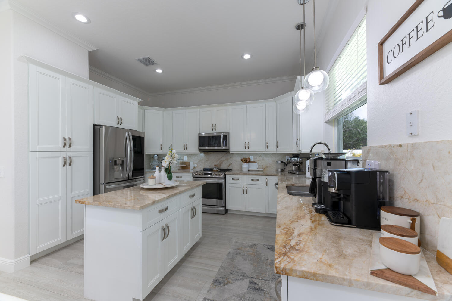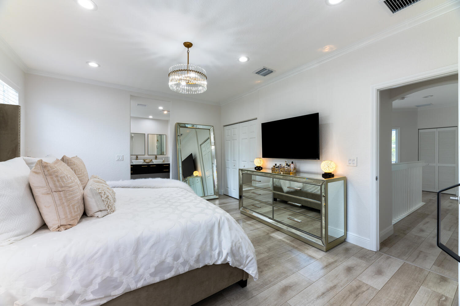 Well appointed residence in an oversized lot within the gates of Lakes of Laguna. Renovations completed draw you in from the entry to the master bedroom upstairs and from floors to ceilings. Handpicked counters, rain shower, tailored sinks, cabinetry and an open floor plan make you forget that you are in the heart of North Palm Beach County while within your own compound! The main level hosts the living, dining, family, breakfast nook, kitchen and guest bedroom with a full bathroom. The upstairs hosts the master bedroom and three additional bedrooms sharing a bathroom. The seller expresses the lot as being the largest in the community with water view, fruit trees and plenty of room for a pool and multiple security cameras. Lakes of Laguna has a community pool, courts and security patrol.