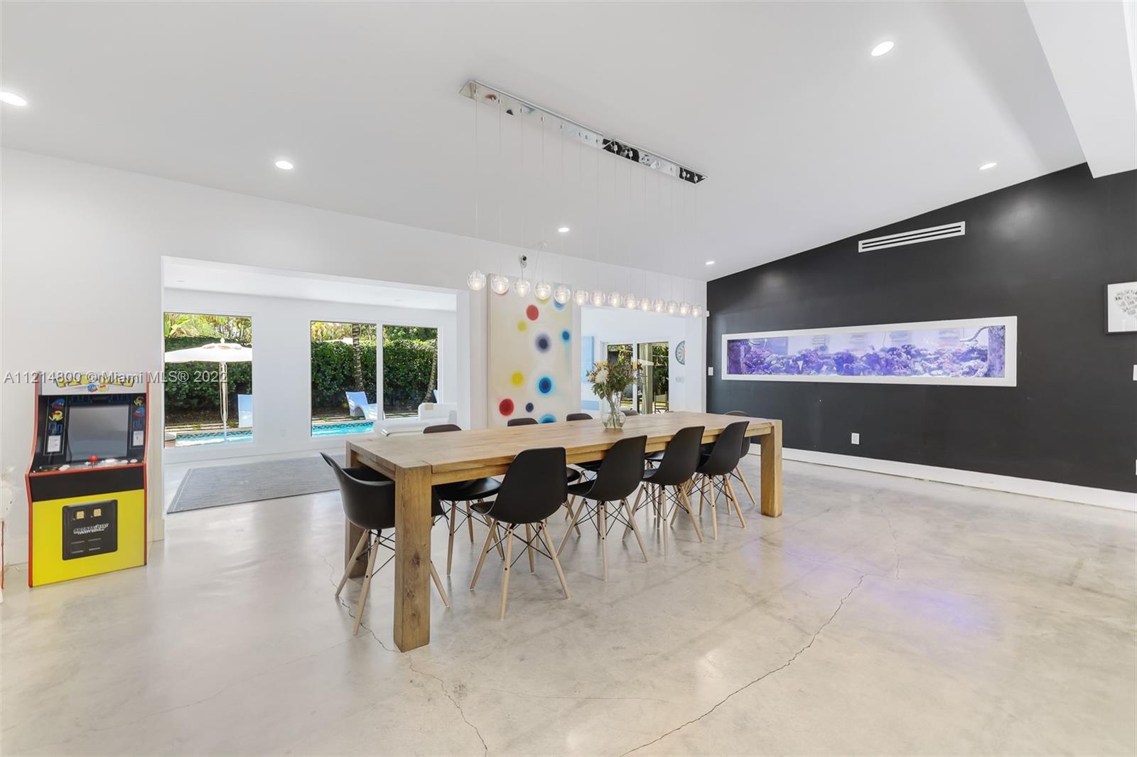 Modern and bright in desirable Pinecrest pocket. Designer touches to a split plan make it a comfortable home for family life and entertainment. Just under 3000 sq ft, this home offers 4 beds, 4 baths and indoor laundry room. Extended renovations in 2016 include updated concrete poured floors, impact windows, open kitchen with Spanish Cabinetry and wine fridge, gas range, heated pool and more.