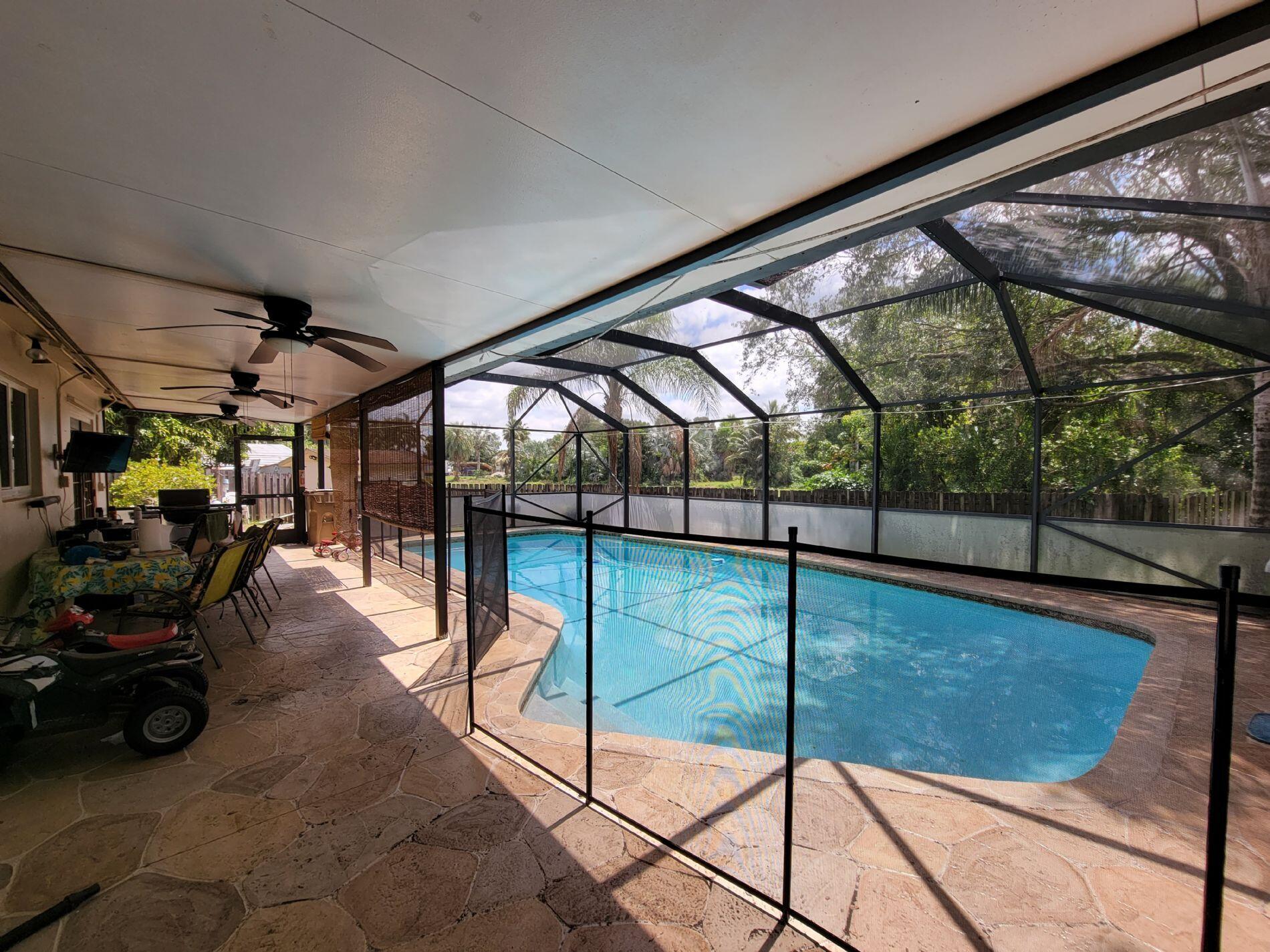 Come check out this fantastic three bedroom, 2 and a half bath with 2 car garage in beautiful Davie, FL! LOCATION LOCATION LOCATION!!! This peaceful beauty is situated on a quiet dead end and tree lined street where kids still play outside. Very well maintained neighborhood with no HOA or FLOOD INSURANCE REQUIREMENT!!! Walking distance to dining and shopping including Publix and Walmart! This great single family home with over 1,600 square feet has so much going for it including... Updated eat-in kitchen and bathrooms with granite countertops and stainless steel appliances! Tiled throughout for easy cleaning! Freshly painted exterior! Enjoy great pool parties in the large screened in patio and pool area with nicely shaded backyard and privacy fence!