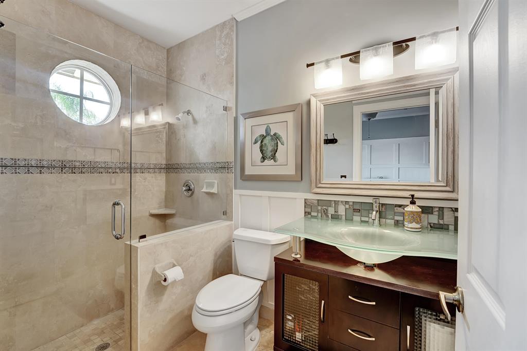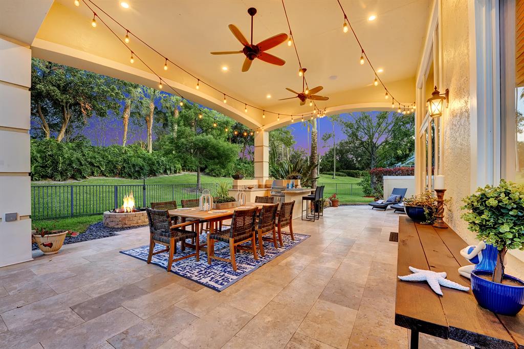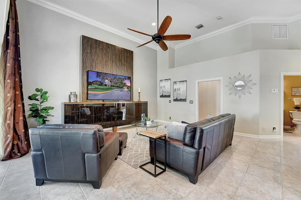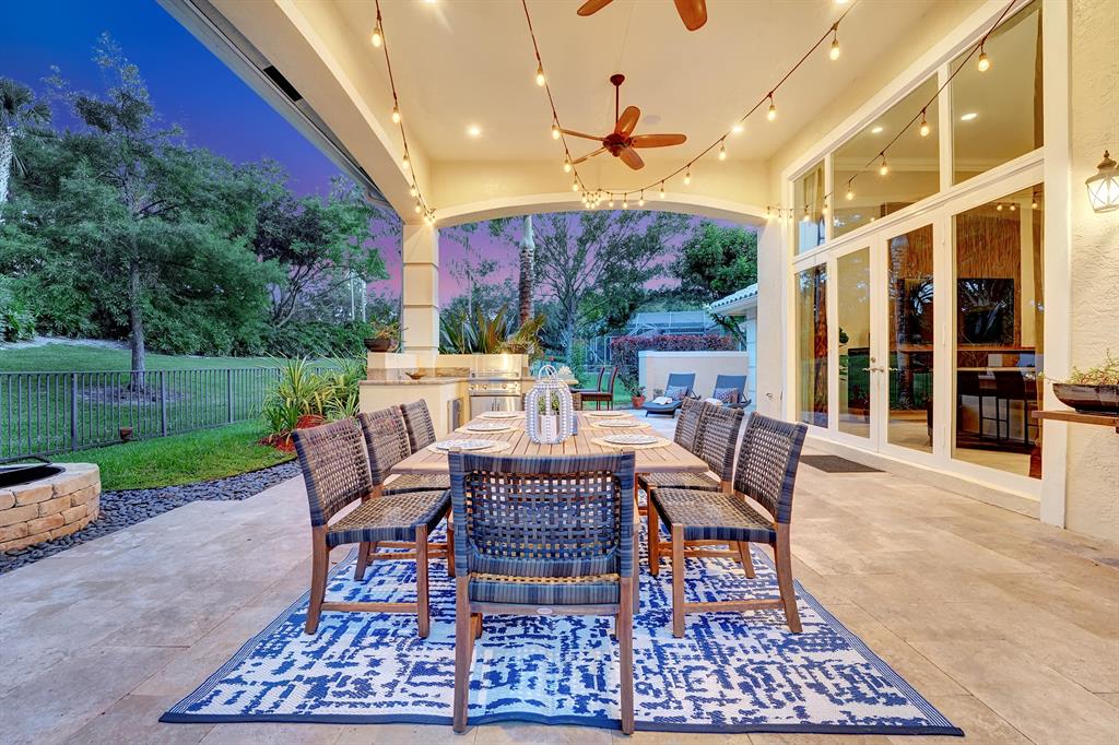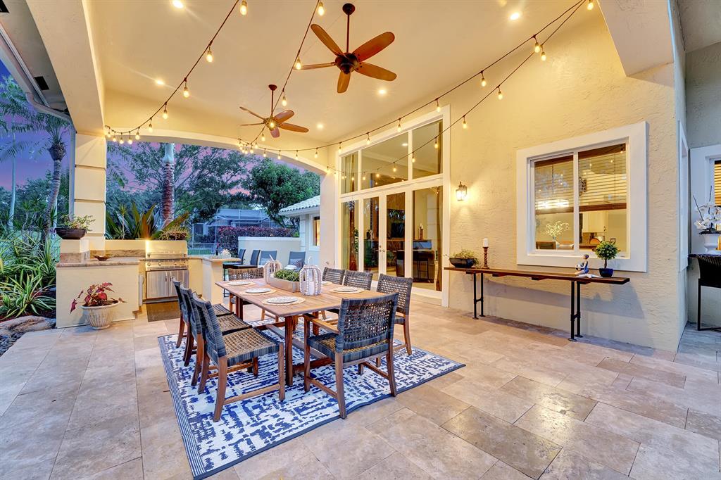 Rarely available beautiful single-story home in the Estates section that will make you say WOW! The Mahogany doors welcome you as you walk up to the grand front entrance with tropical lush greenery, a circular driveway and a 3-car garage. Meticulously cared for, this split floor plan has the primary bedroom and office on one side and the remaining 3 bedrooms & 2 baths (one is a cabana bath) on the other side; with a half-bath perfectly located near kitchen/family room. UPDATED primary bathroom like a spa! All other bathrooms updated! NEWER ROOF. IMPACT GLASS COMPLETE. And wait until you see the resort-style backyard! Extended roof provides shaded cover, outdoor kitchen, fire pit, beach-entry pool, plenty of grass space, PRIVATE and completely fenced in! YOU WILL LOVE THIS HOME!