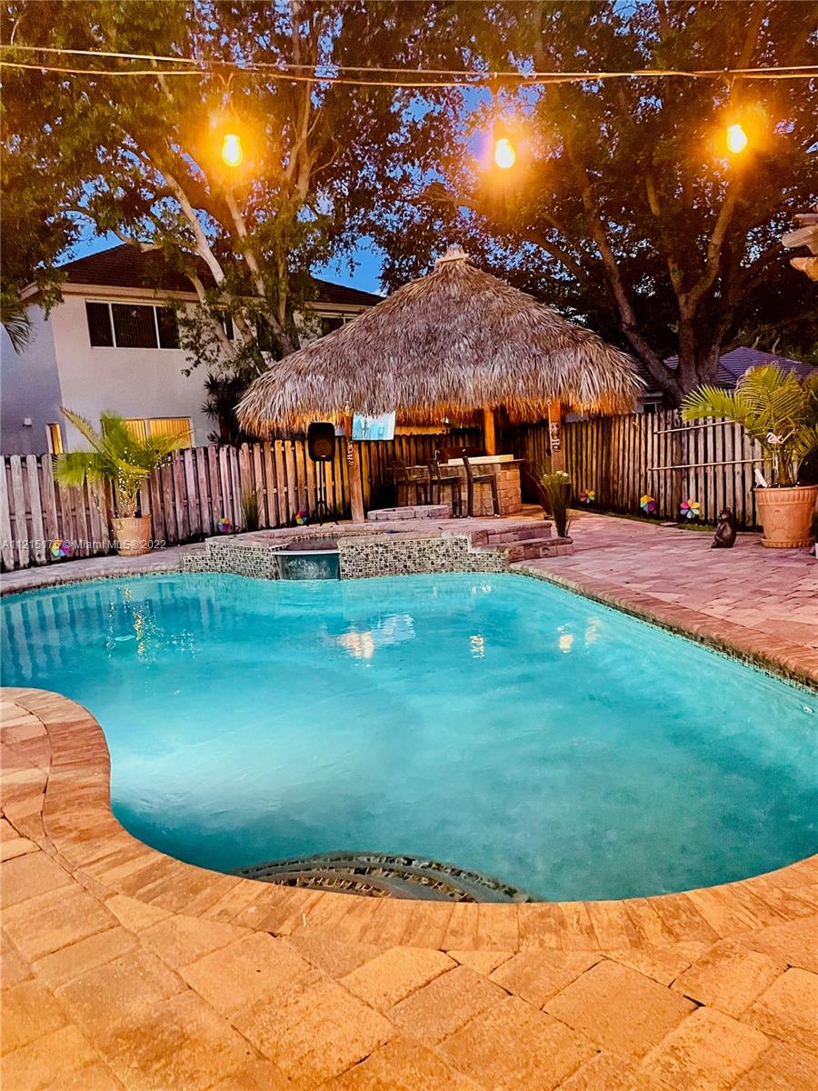 Absolutely stunning 3/2 pool home with well over 50,000 in recent upgrades. This home makes the most of the square footage with an open concept that feels spacious & airy. LED lighting & new ceiling fans add to the ambience. The Kitchen is the heart of the home & this updated one is centered perfectly between living/dining/family room. Both baths have been done to perfection. Beautiful flooring. Must see upgrade list to appreciate all the features the owner has added. A Florida paradise awaits as you step onto the huge patio complete with pool/spa/tiki/outdoor kitchen. Plenty of place to lounge, play, splash & entertain. Enjoy deep insurance discounts with the NEW ROOF, accordion shutters & rated garage door. Quaint gated community with 148 homes, community pool, clubhouse & LOW HOA.