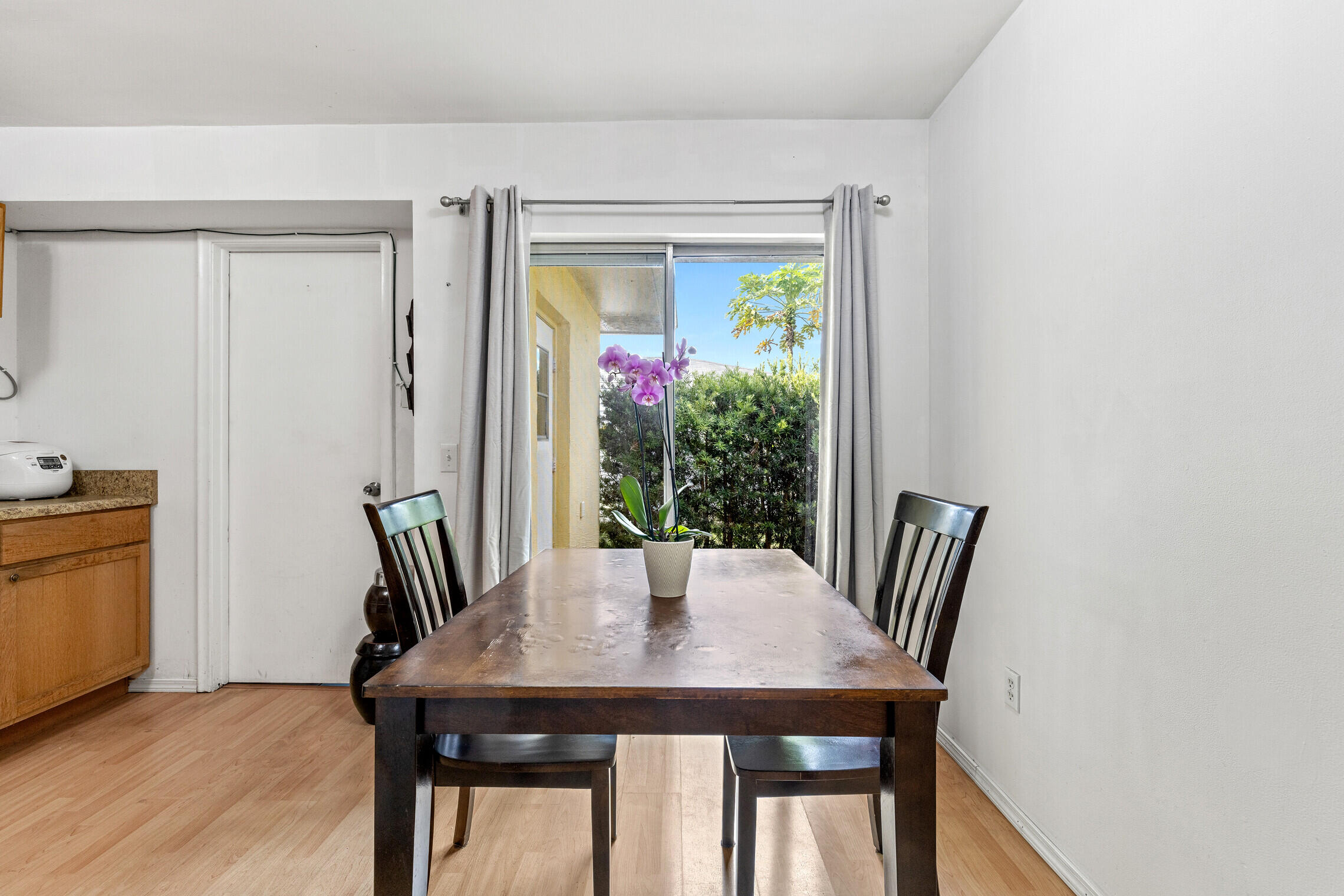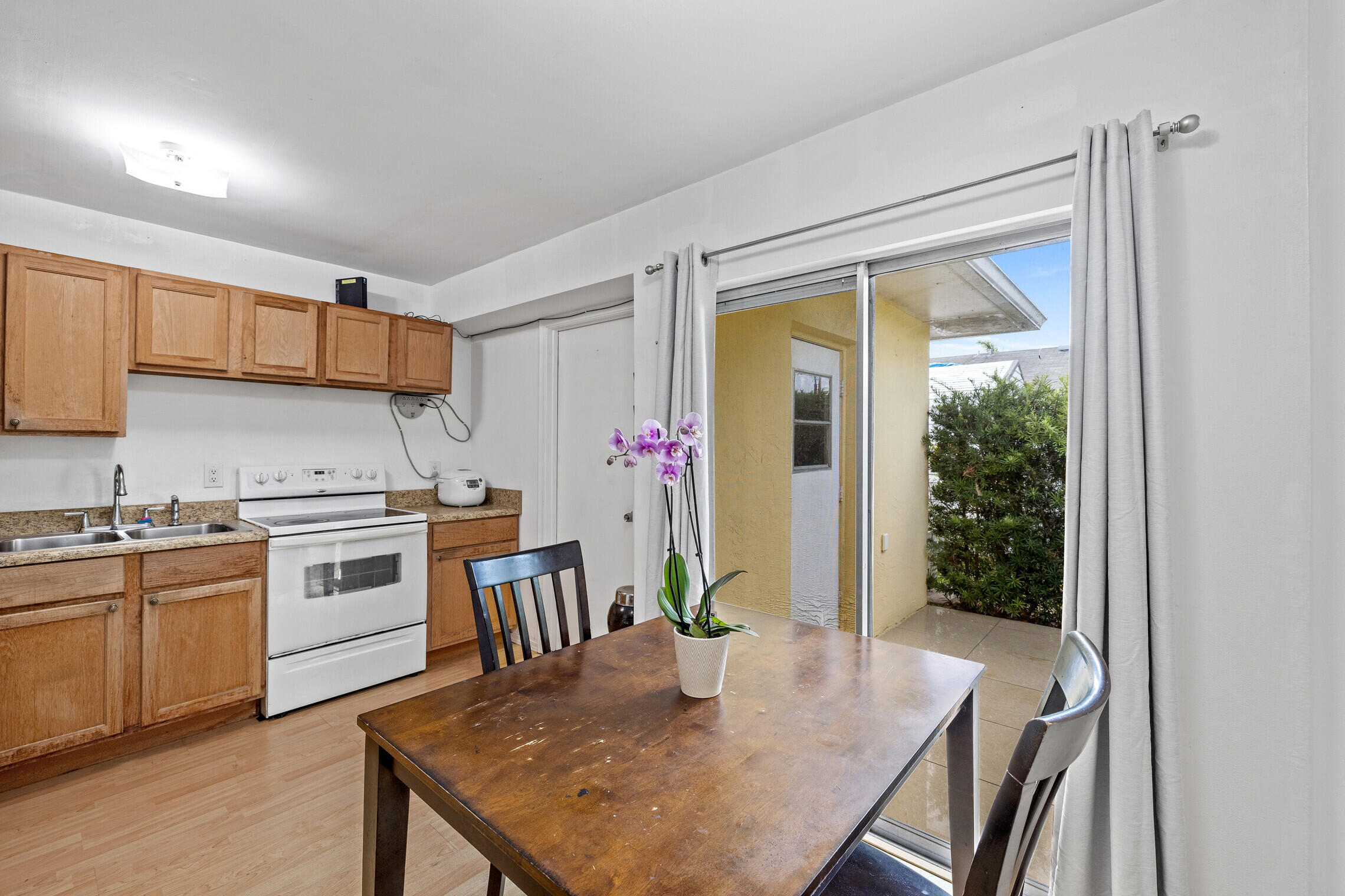 Very well maintained 2 bedrooms & 2 bathrooms home. This adorable home has a separate laundry room and spacious backyard. The backyard is fully fenced in and includes a tiled open patio, shed, lychee tree (will produce fruit next year), and herb garden. A/C and Water Heater replaced within the last 10 years. Low HOA includes landscaping and common areas. Located near shopping centers and malls, 5 min drive to Palm Beach International Airport and a 10 min drive to the beach!