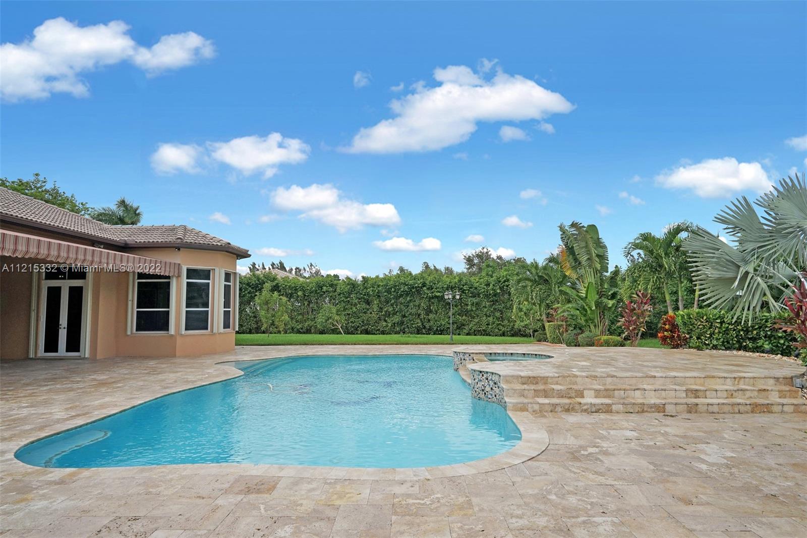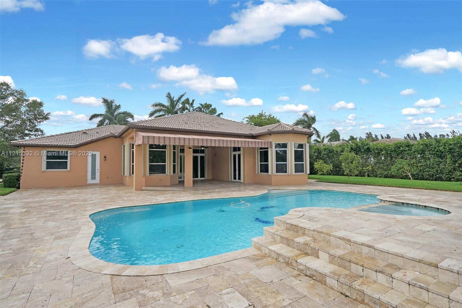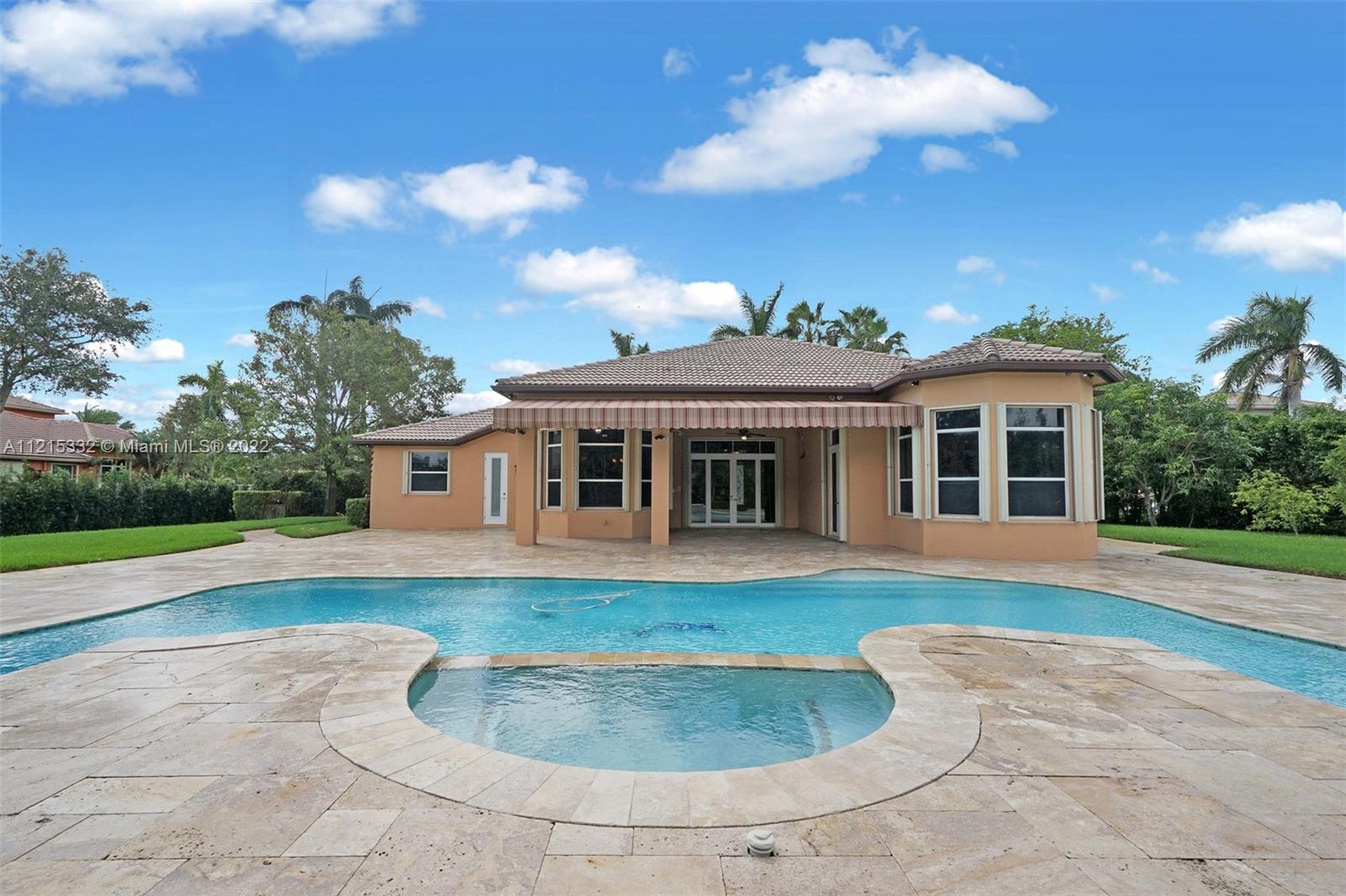 This luxurious home, located on a builder's acre, boasts: 4 bedrooms, a den (which can be converted to another bedroom), plus office, 3.5 bathrooms, hurricane impact front doors, accordion shutters, gorgeous chef's kitchen with gas stove, custom cabinetry and shelving in all closets, master bedroom with large sitting area, Jacuzzi tub in master bathroom, hardwood floors & travertine throughout, and laminate wood floors in all bedrooms. The home is powered with a back-up generator, which runs on a 500 gallon propane tank and can power the house for over a week. There is a separate 110 gallon propane tank, which fuels the stove and hot water heater. Both AC's were replaced in 2014. The home is equipped with security cameras around the perimeter. You must see the backyard to believe it!!!