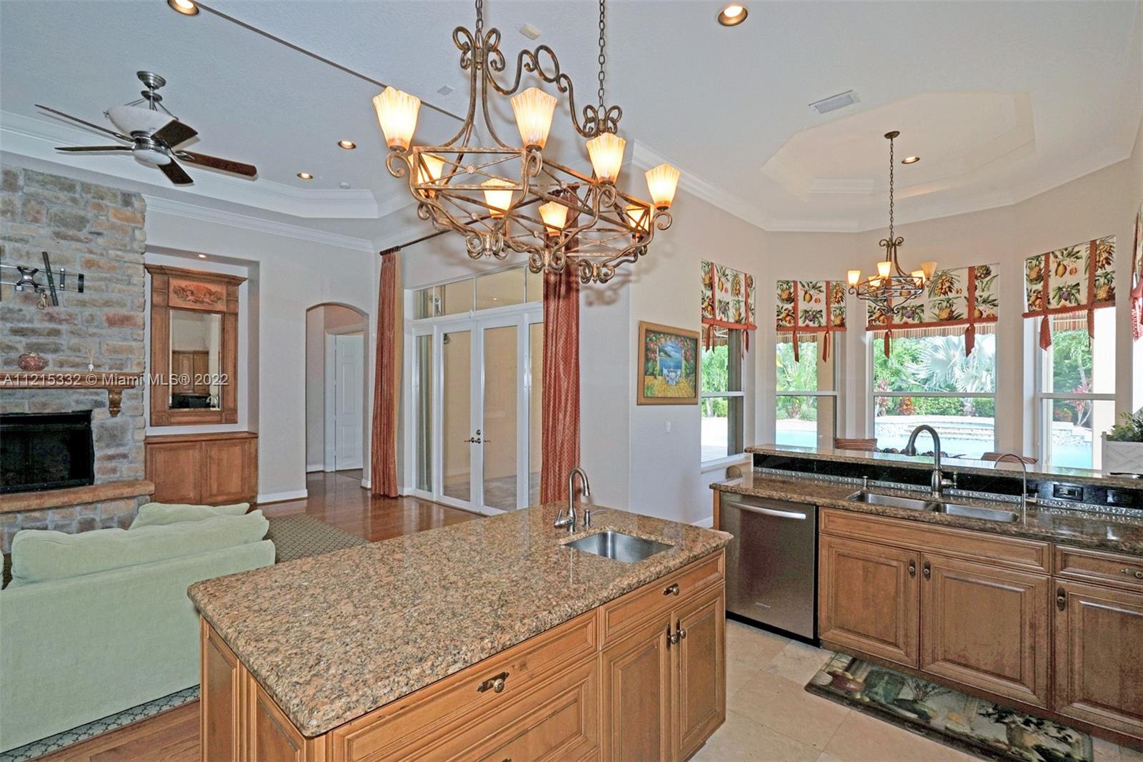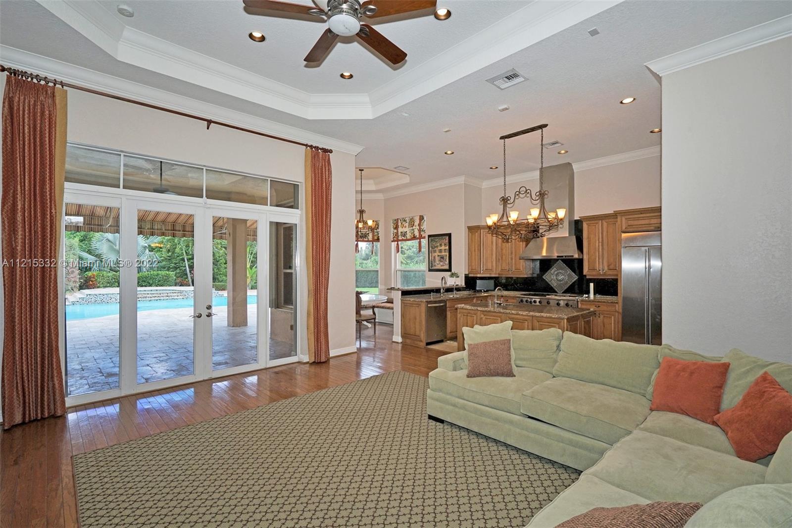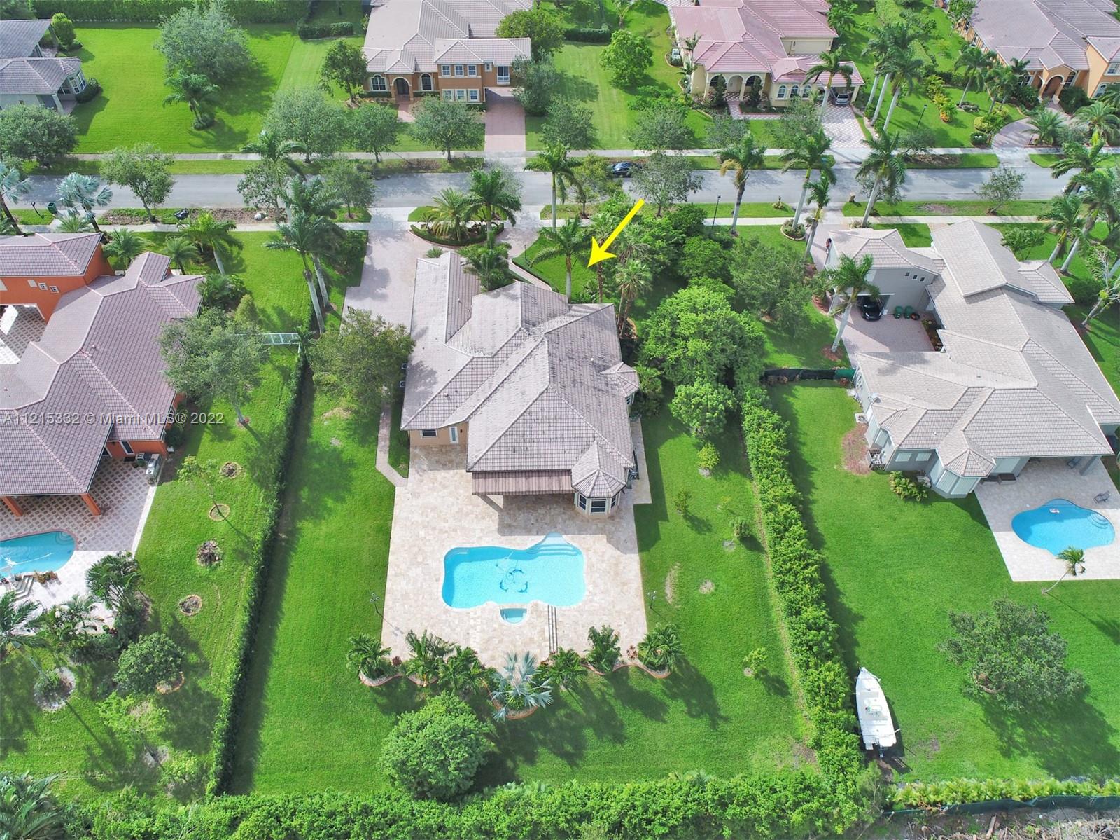 This luxurious home, located on a builder's acre, boasts: 4 bedrooms, a den (which can be converted to another bedroom), plus office, 3.5 bathrooms, hurricane impact front doors, accordion shutters, gorgeous chef's kitchen with gas stove, custom cabinetry and shelving in all closets, master bedroom with large sitting area, Jacuzzi tub in master bathroom, hardwood floors & travertine throughout, and laminate wood floors in all bedrooms. The home is powered with a back-up generator, which runs on a 500 gallon propane tank and can power the house for over a week. There is a separate 110 gallon propane tank, which fuels the stove and hot water heater. Both AC's were replaced in 2014. The home is equipped with security cameras around the perimeter. You must see the backyard to believe it!!!