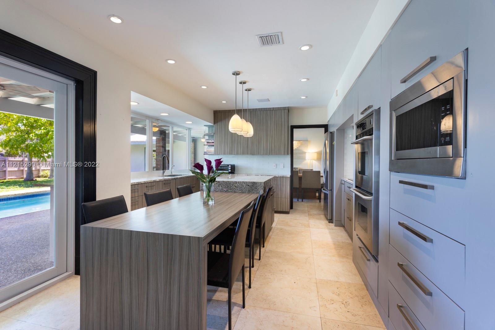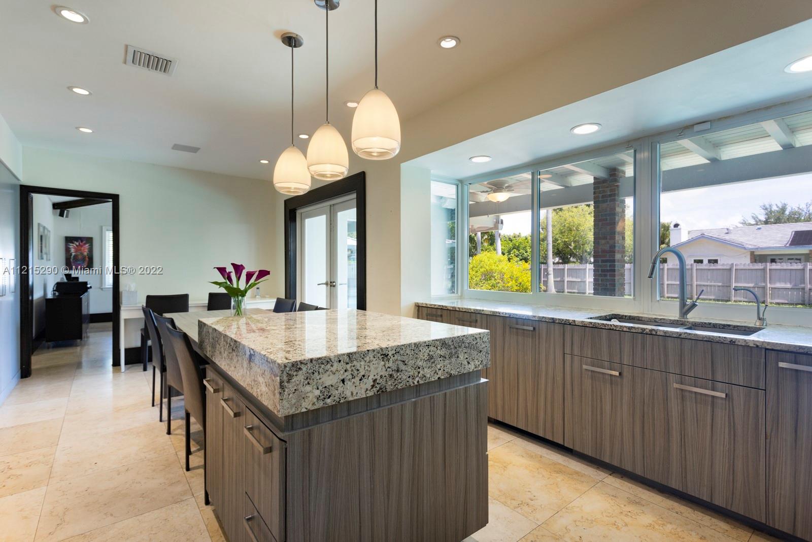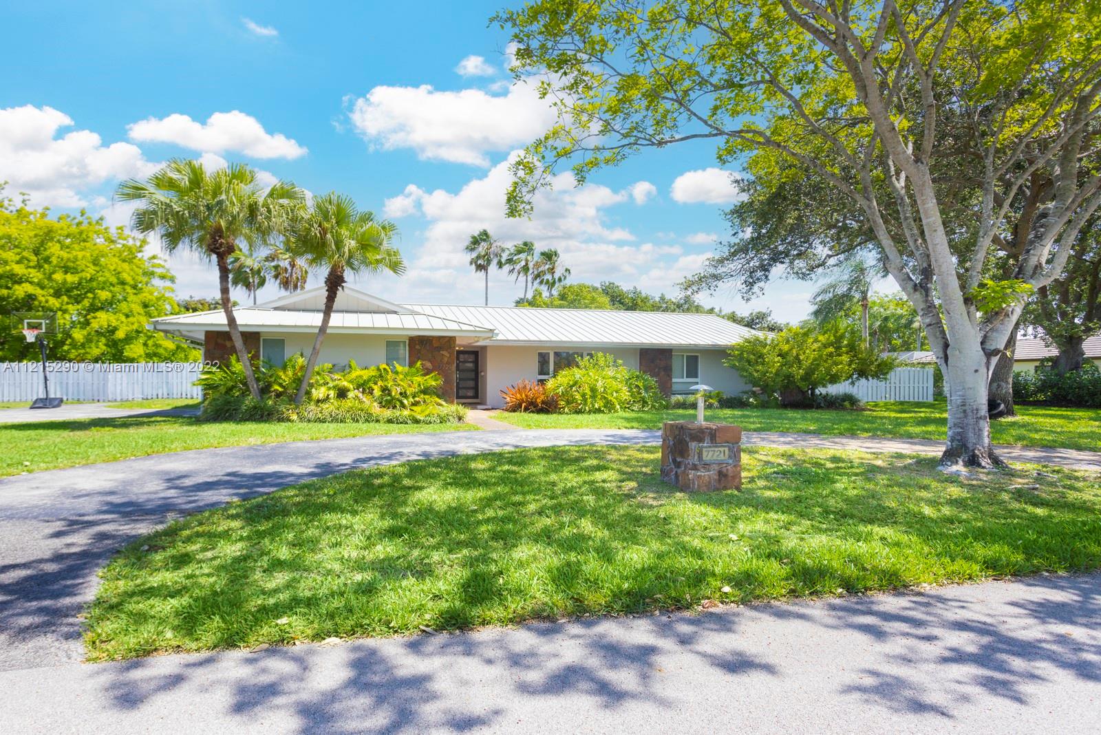 Beautifully updated 4/3 family home on an extra large 26,306 sqft half acre+ lot in south central Pinecrest. No detail spared in 2015-2016 renovation which includes full master suite makeover with modern high-end finishes, tons of closet built-ins and space, and electric blinds. 2015 metal roof. Gorgeous stone floors throughout most of the house coupled with wood. Modern top-of-the-line eat-in kitchen, impact glass windows and doors, vaulted ceilings in living-dining-family rooms, and an indoor laundry room. Control 4 smart system for electric, ACs, and Sonos sound system. Ideal patio-pool-yard layout with plenty of room to expand as well.