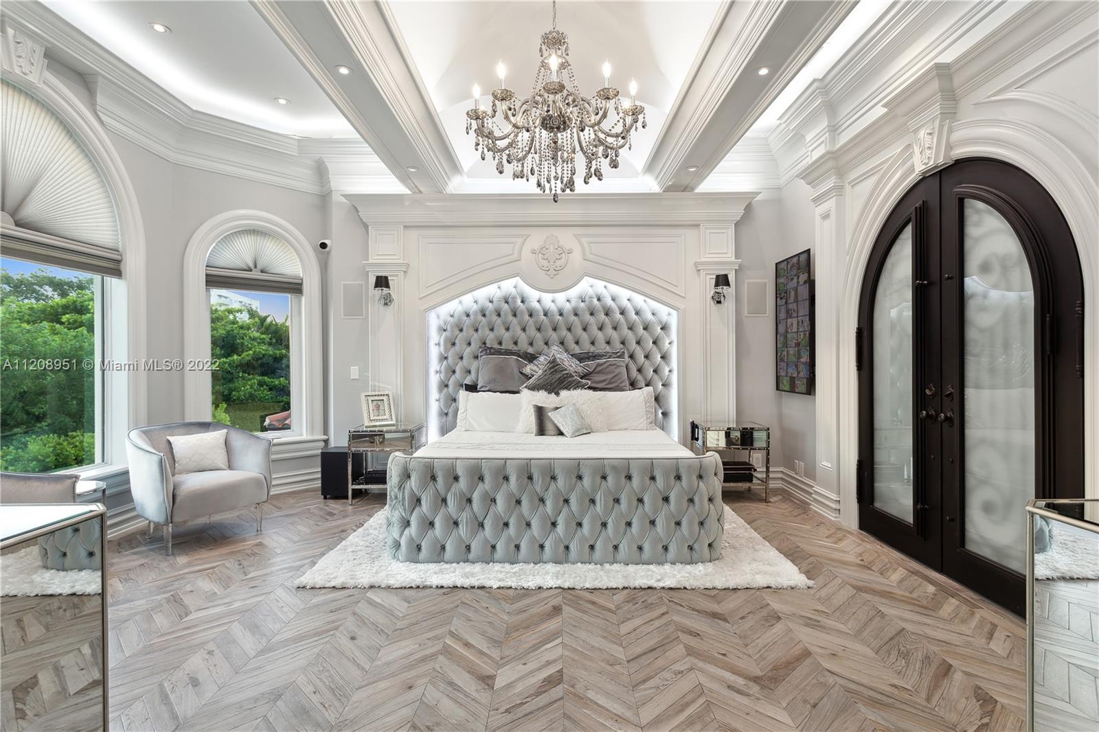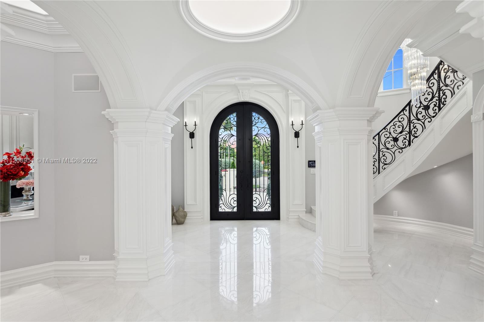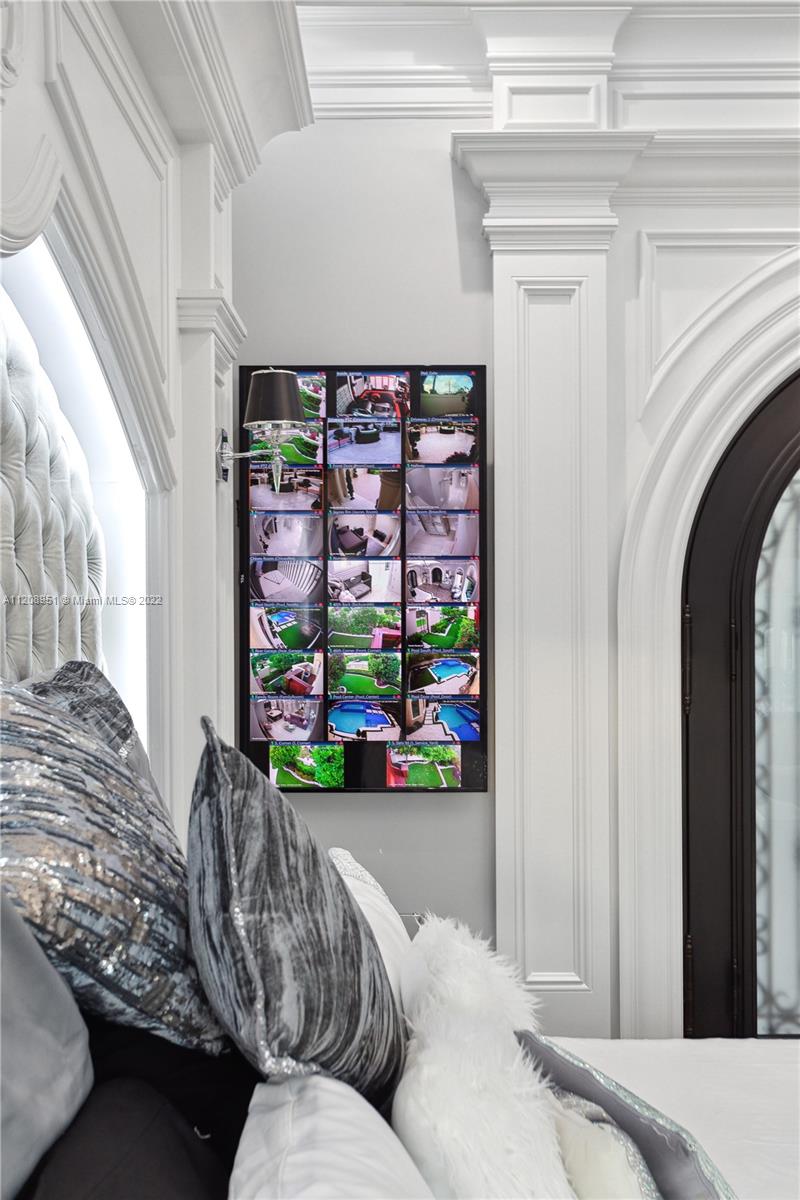 Exquisite, elegant, and sophisticated custom-made new home. Rarely has Miami Beach offered such a level of ornamentation and crisp details. Very bright with high ceilings, (12ft and 28ft), secured with 25 surveillance cameras and control panels, this home is the pinnacle of luxury and privacy. Opulent wall panels and millwork fabricated on site. Each ceiling is backlit with recessed LED lights. 8' interior doors, 24'' white marble tiles. Impeccably maintained design present throughout the home, leading to a manicured backyard with a large pool, spa, 4 submerged bar stools, and a BBQ area. Two-car garage with 28' ceilings allowing for extra lifts. Expansive center Cristall Quartz kitchen- island backlit with LED lights and 32' disappearing TV. See attachment for more details.