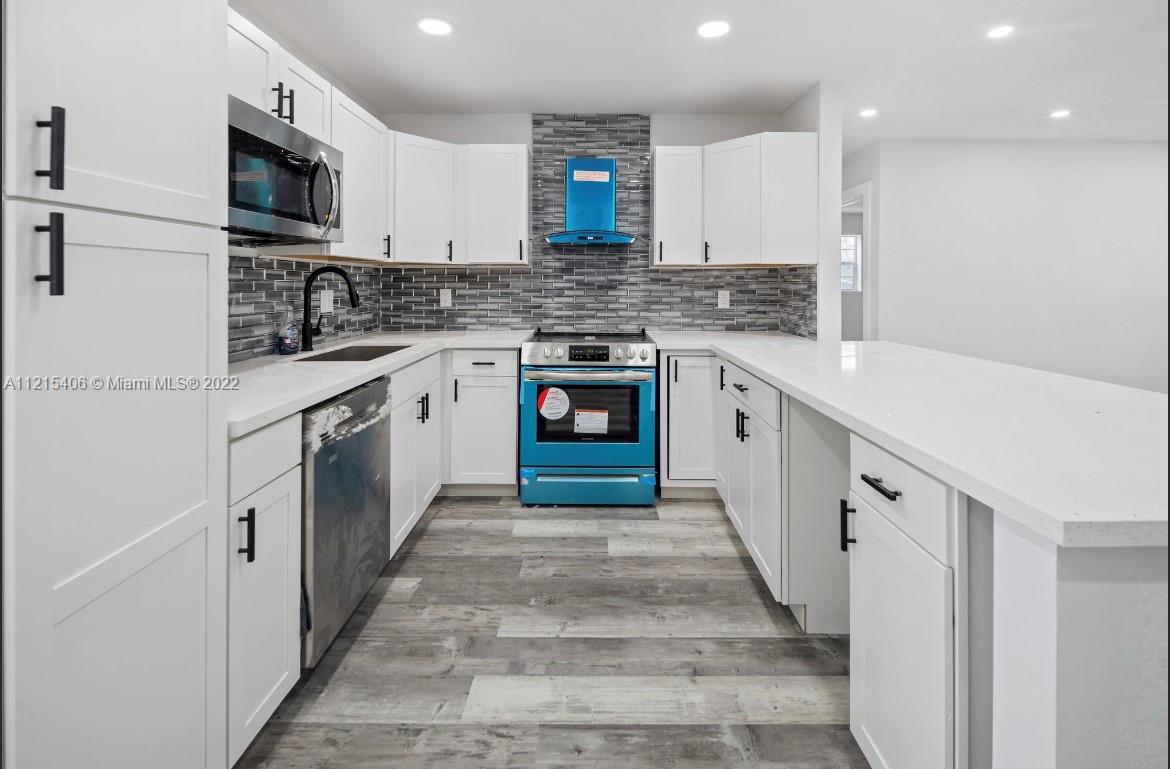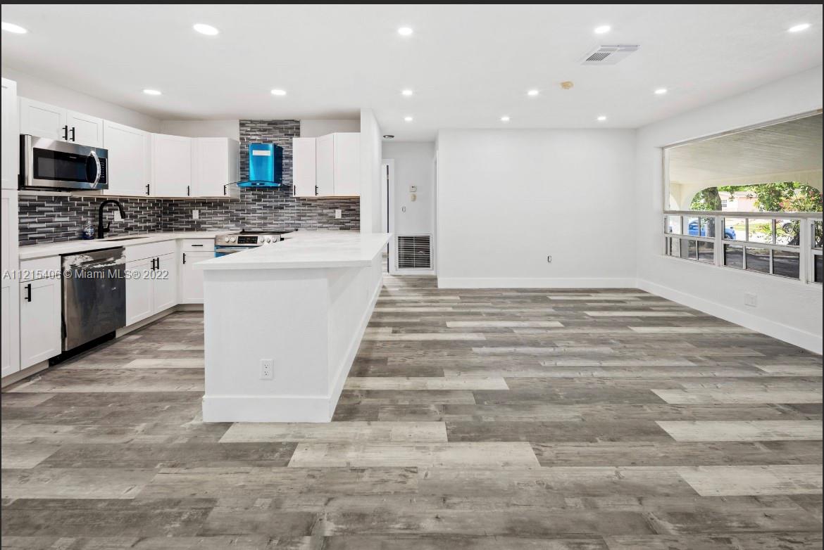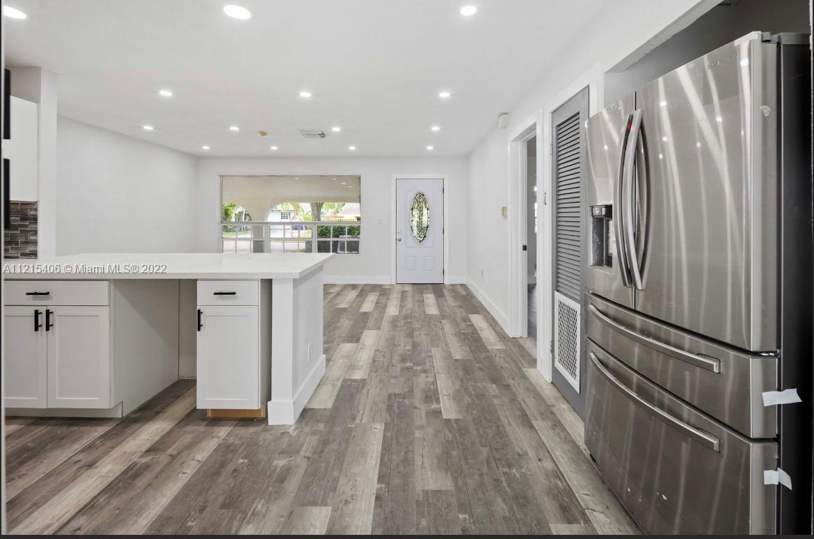 Beautifully renovated 4/2 pool home in Hollywood on a quiet street with proximity to Hard Rock Casino and Hollywood Beach. This charming home is updated with new bathrooms, new kitchen, quartz countertop, stainless steel appliances, flooring, recessed lighting, painted inside and outside, to name a few of the upgrades. Walk into the front door with a view of the pool into an open kitchen with 4 split bedrooms in 3 separate wings and a Florida room. This home is perfect for a family to enjoy or for air BnB.