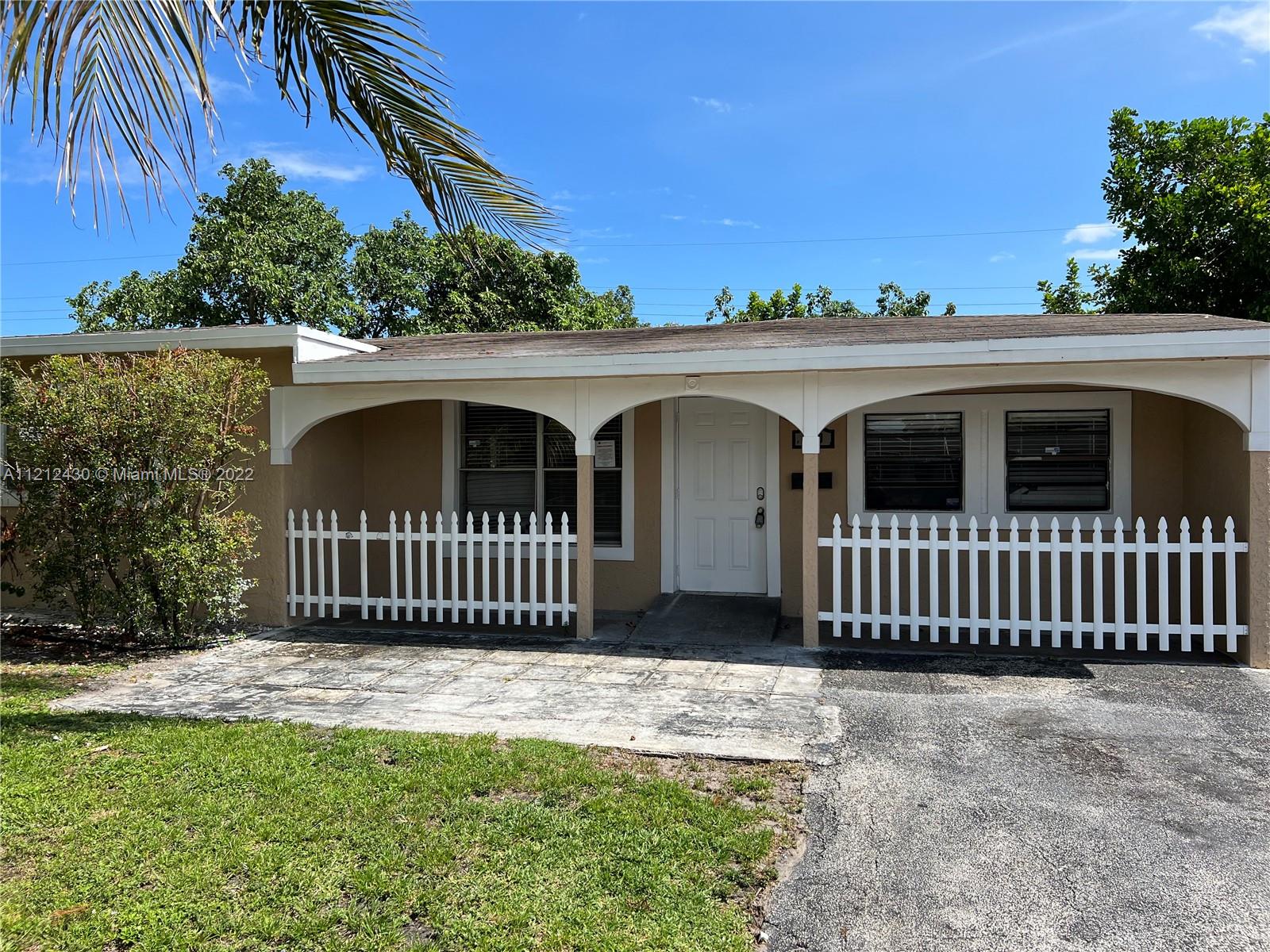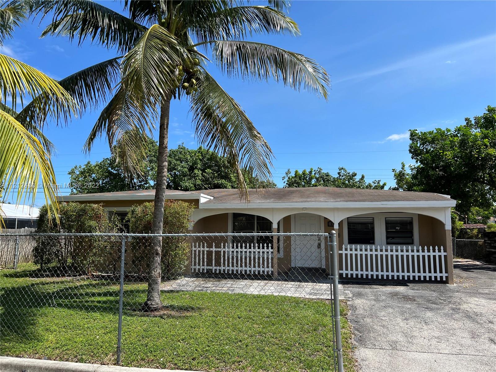 Great opportunity needing TLC! Charming 3 bedroom 2 bathroom home with space for a pool. The property features a master bedroom ensuite, split bedroom floor plan, tile floors, open concept kitchen, laundry room, covered porch and fenced in yard with patio. Centrally located in Pompano Beach! Priced to sell and easy to show.