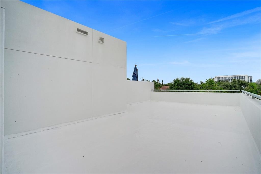 Check out this unique townhome built in 2010 that is owned like a single home with no HOA. Modern architecture abounds with high ceilings, large wall of windows letting in natural light and even a rooftop deck perfect for a summer kitchen, hot tub and casual lounging area. Enjoy your main living area at the entry level and secondary den upstairs-perfect for a home office. Guest suite on top level provides privacy with living Room and Bedroom with private bath. Enjoy a full 2 car garage with storage and large driveway for extra parking. Step out from the living room on to you private patio with pool. Just perfect modern living and close to shopping & dining along Federal Highway, Less than 2 miles to the Beach and to Downtown. A location you just can't beat. See today!