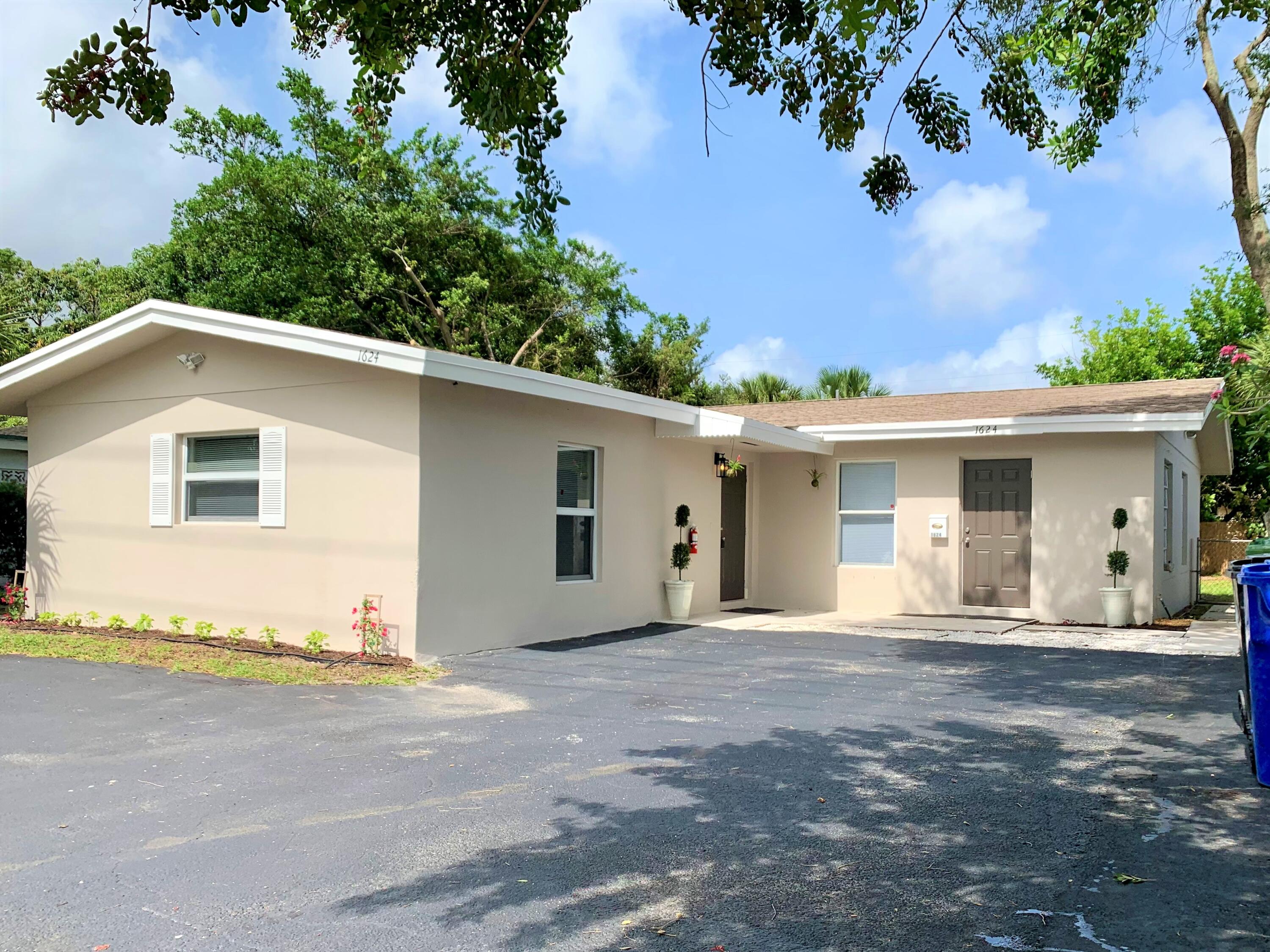 Wow! A true 4 bedroom, 3 full bath home, beautifully updated throughout with new roof in 2014. Enjoy a freshly painted, move in ready home, with tile floors throughout, updated kitchen with white cabinets, tile backsplash, new granite, pantry and a view. The refinished circular driveway provides plenty of parking. An ensuite bedroom features dual closets, w/ one walk-in. The indoor laundry room leads to the large private fenced yard w/ mature trees & concrete pad, ready for your shed. Part impact glass, part shutters. Footage may be larger than tax roll due to 2006 permitted remodel / addition. Layout conducive to split for 2/2 & 2/1, if desired. Don't miss this light, bright, spacious move in ready home, near downtown Ft. Laud., I-95 & beaches.