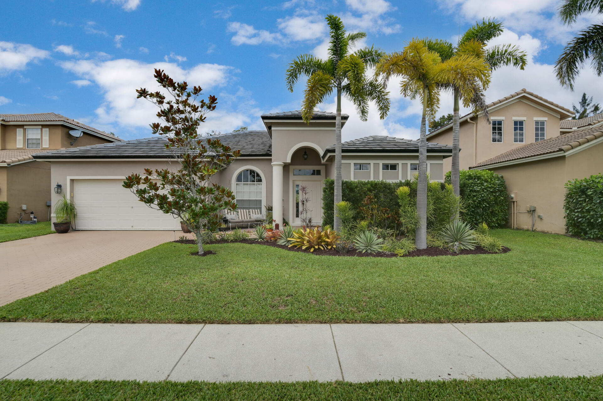 Elegant and spacious 4 bedroom plus den home in exclusive community of Stonehaven. NEW ROOF!!! Come inside and be greeted by spacious living areas, along with an inviting custom kitchen & laundry. All of the bedrooms are spacious as well and offer ample closet space. Outside you will enjoy a beautiful private backyard and is located just minutes to the Turnpike, I-95, Wellington, Boynton Beach, Downtown West Palm Beach, gorgeous area beaches and 3 international airports. Community is a well maintained community which offers its residents many resort style amenities.