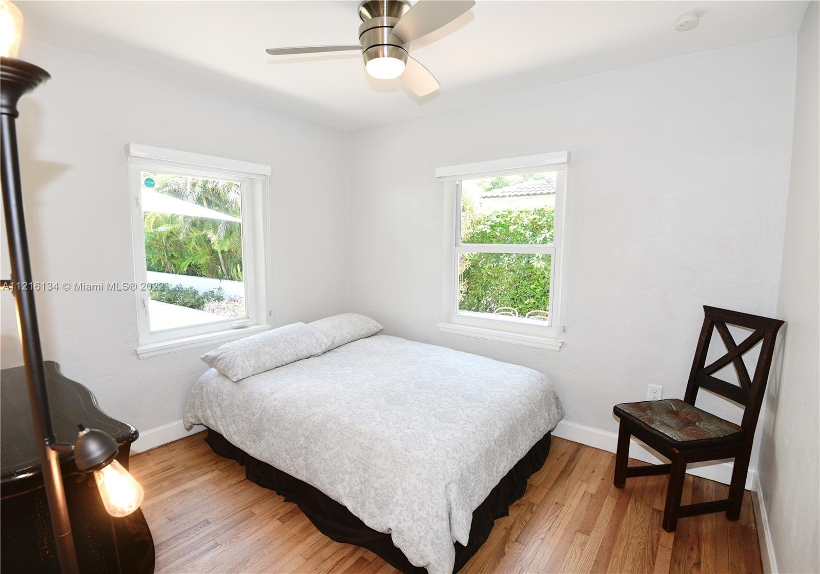 Welcome to Miami Shores! Welcome to this adorable 2bed/1bath jewel-box bungalow located just 2 blocks from downtown Miami Shores. This home is full of charming specific period details such as vaulted wood beam ceilings, fireplace, decorative wall niches, pristine original polished wood floors and a fully remodeled bathroom. Step out back to a sprawling yard with plenty of room for entertaining and expansion in addition to fruit tress. Additional features: bright eat-in kitchen, impact windows, new roof (2019), newer A/C, newer tankless water heater, updated electric, new gutters, and more! Detached 1 car garage with automatic door. Hurry up! This is your chance to be in the Shores under $650k!