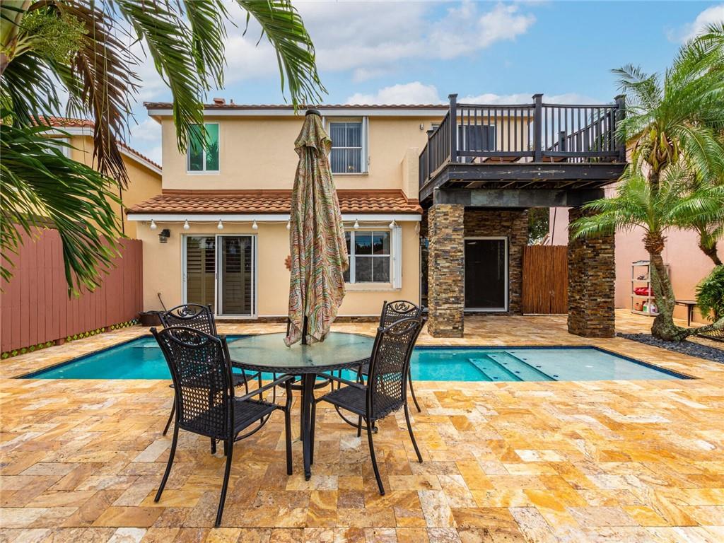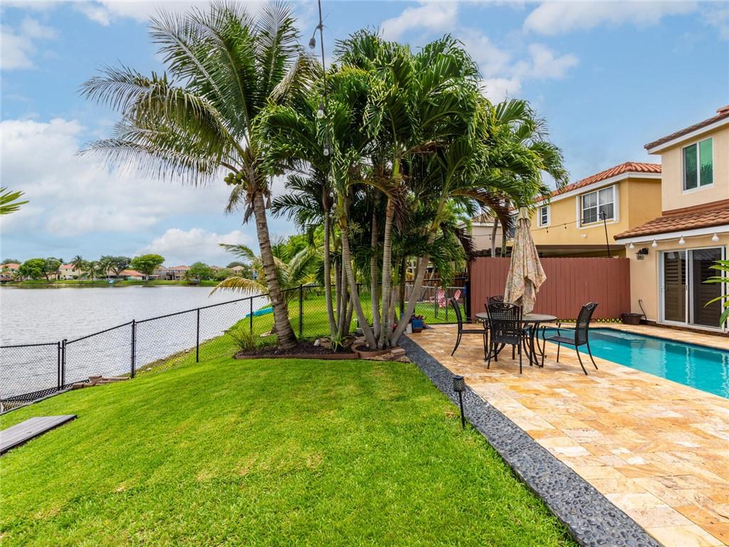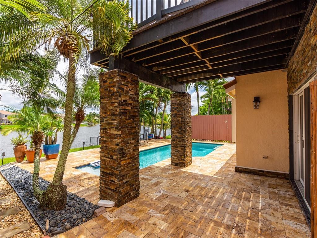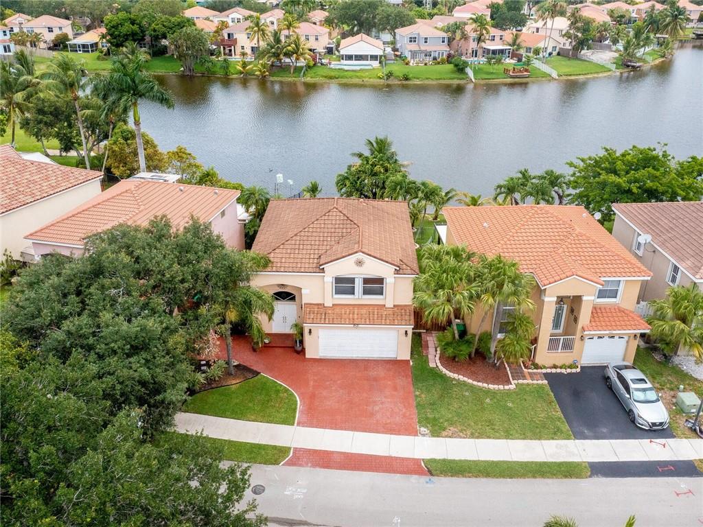 A two-story, **lake front** home with a pool in Pine Island Bay. The home has four bedrooms and two- and one-half baths. The home features Ceramic tile throughout the first floor with the upstairs flooring being all wood laminate. Pine Island Bay is centrally located in Davie, Florida near I-595 and Florida’s Turnpike with A rated schools just within a few miles. This home has hurricane shutters for all windows with all sliding doors upgraded to impact resistance doors.. The metal barrel tile roof provides additional protection against hurricanes. An HOA community with very low fees of only $165 a quarter. All bathrooms and kitchen have been upgraded. This home has energy efficiency in mind with a new 18 seer heat pump for cooling and a tankless water heater.