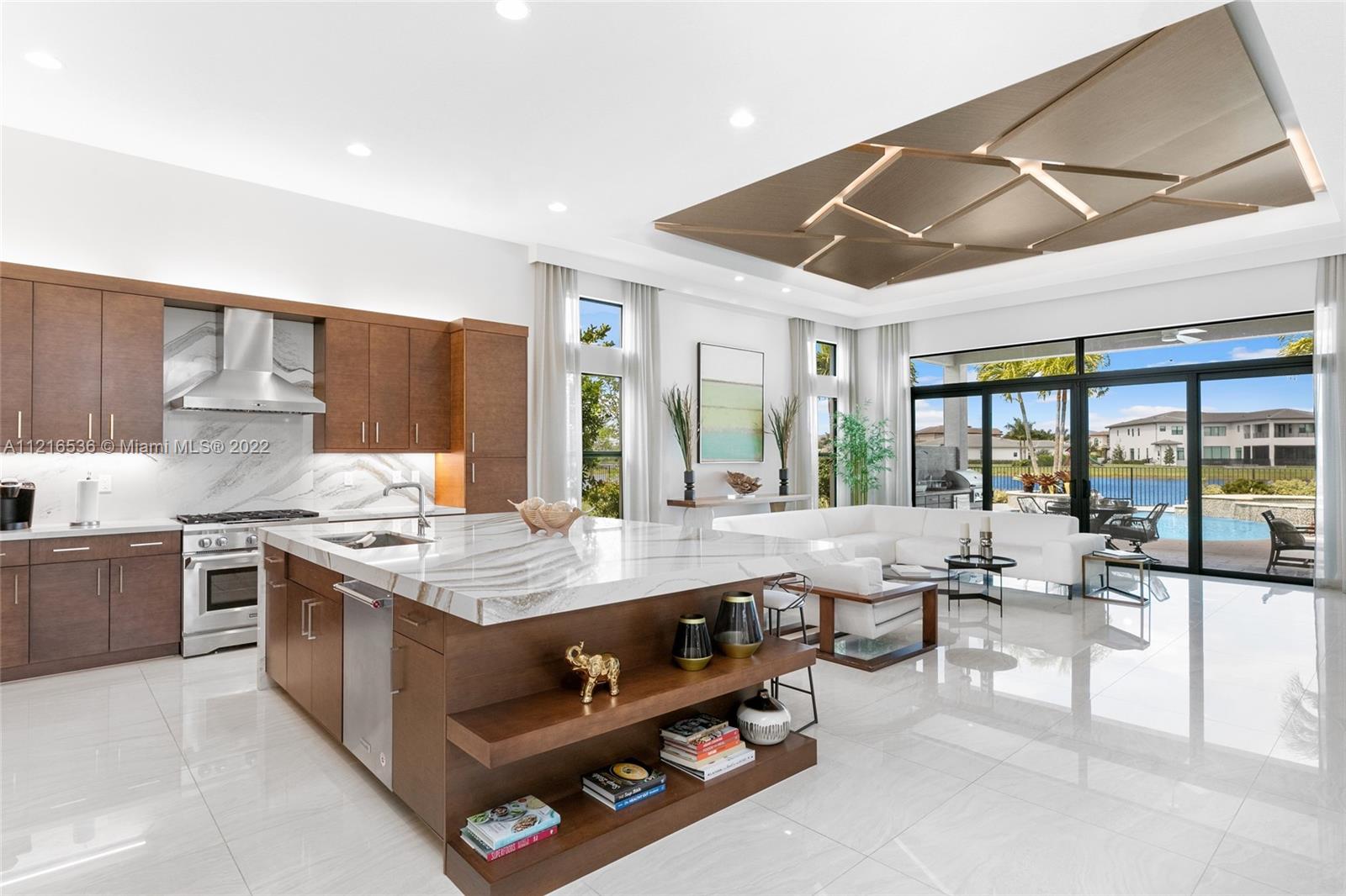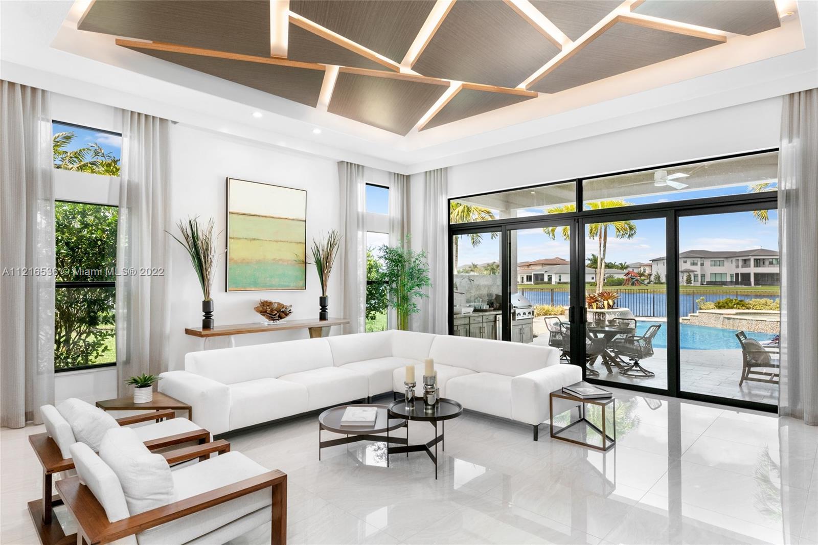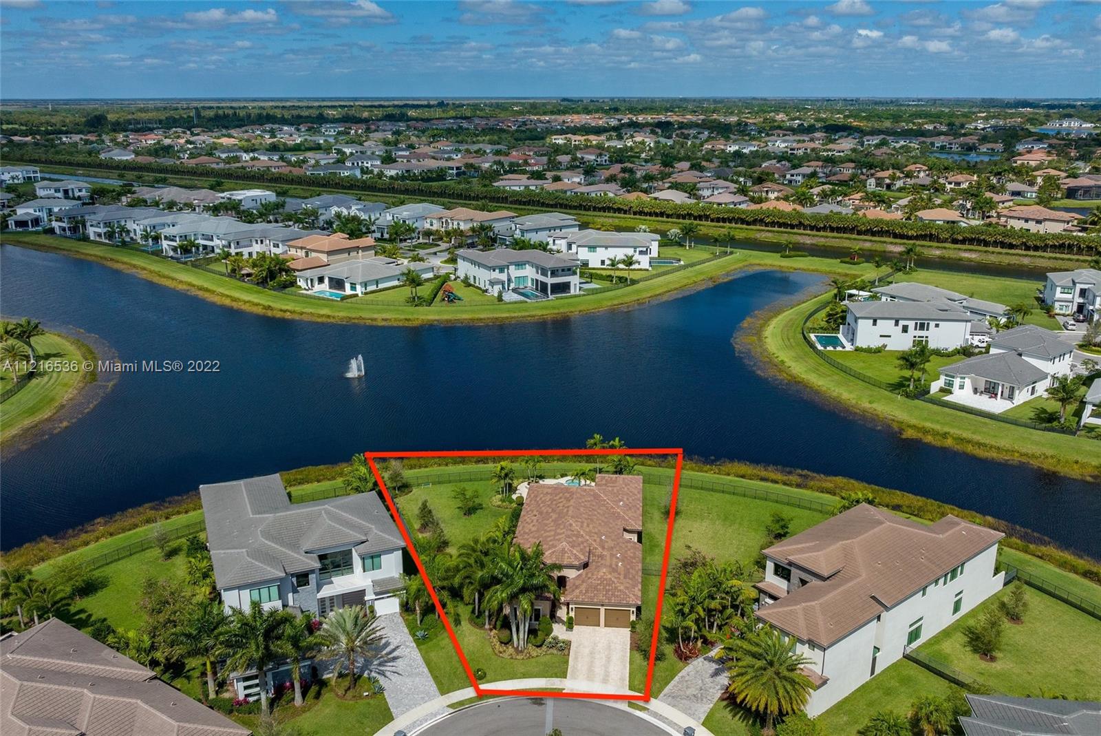 This hidden gem sits on the most desirable oversized lot at the end of the cul-de-sac with wide water views giving it the utmost privacy. An additional 2,000 Sq Ft can easily be built, increasing the living square footage to over 5,100. (Plans attached). Newly built single story model unit with over $750,000 in upgrades. Great room floor plan with 15 ft ceilings leading out to your peaceful lagoon style swimming pool designed with a waterfall spa overlooking breathtaking lake fountain views. This home features 4 bedrooms, all en suite, with walk-in closets, a den, and a gourmet kitchen. Located in the highly sought-after Boca Bridges community offering a 27,000 sq ft clubhouse complex that includes a restaurant with full service pool, bar, game room, fitness center, tennis courts, & more.