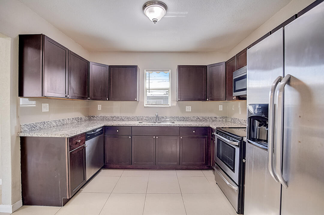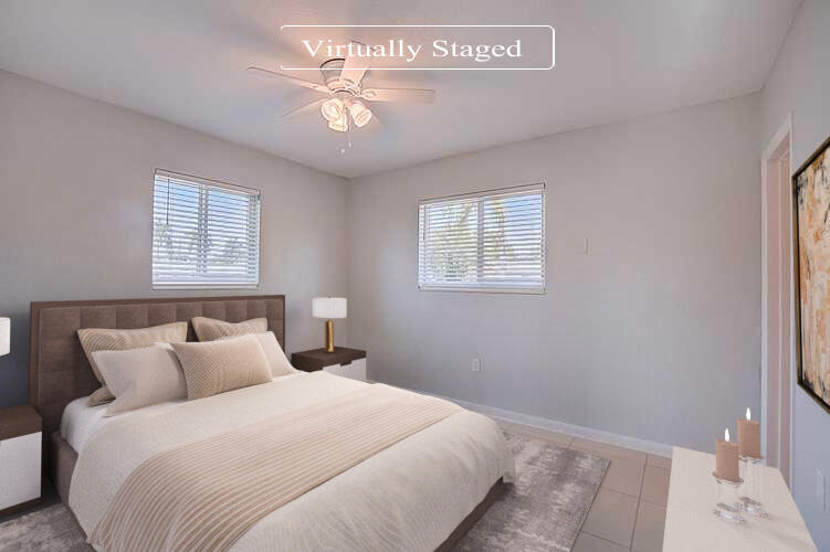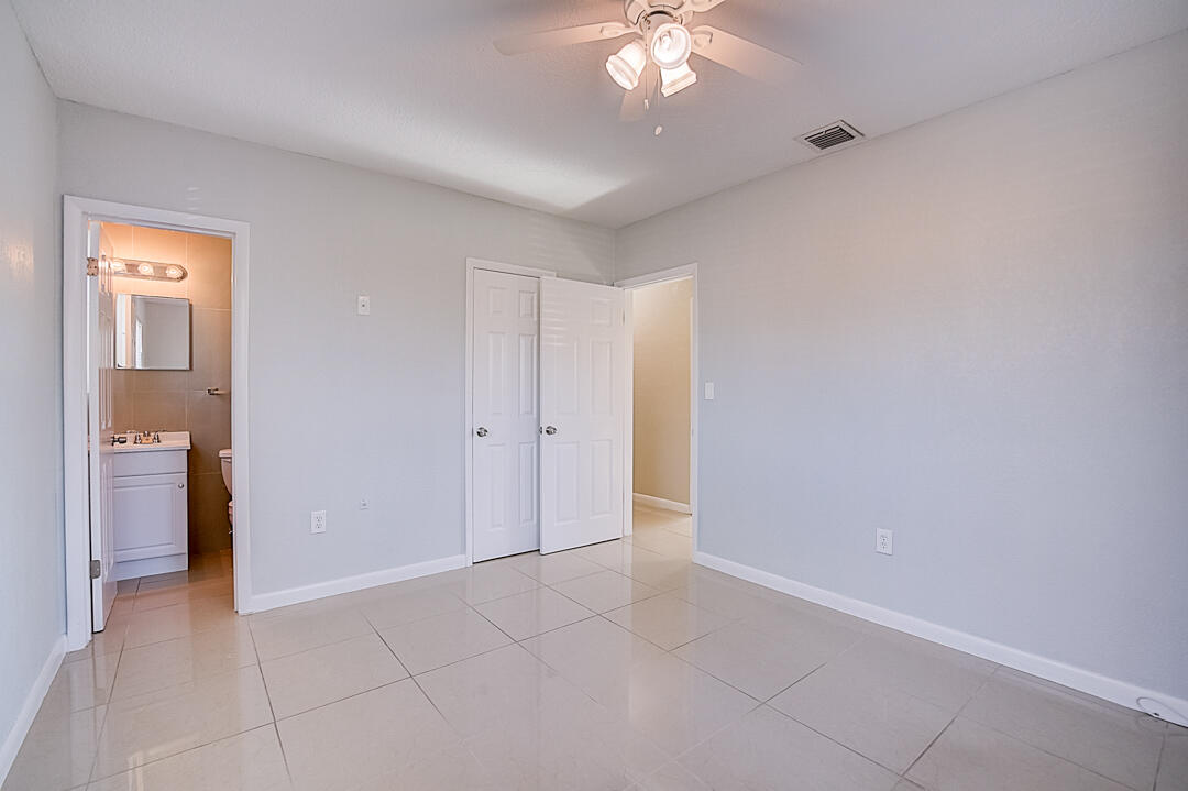 This charming 3 bedroom, 2 bathroom home is now on the market! The kitchen boasts generous counter space and a breakfast bar, making cooking and entertaining a delight. Step inside this beautiful interior with tile floors throughout, plenty of natural light, and neutral palette. The main bedroom boasts a private ensuite and walk-in closet. Other bedrooms offer ceiling fans, and sizable closets. Relax with your favorite drink in the fenced in backyard with a patio, lush grass, and great opportunity for adding personal touches. Don't miss this incredible opportunity.