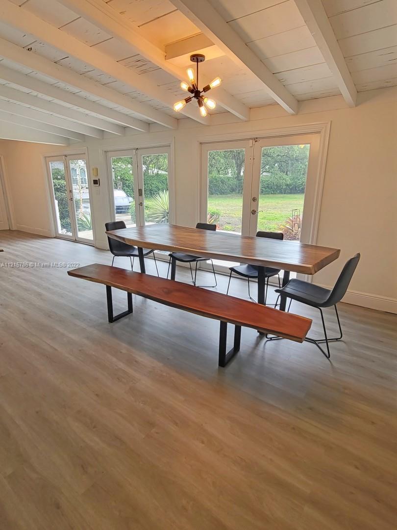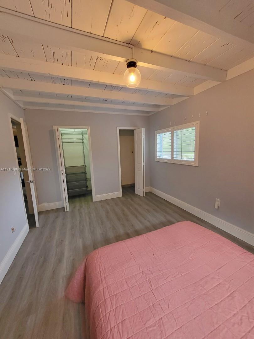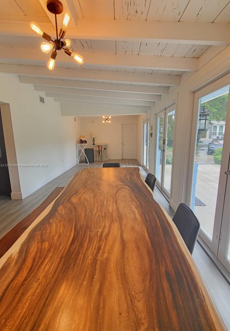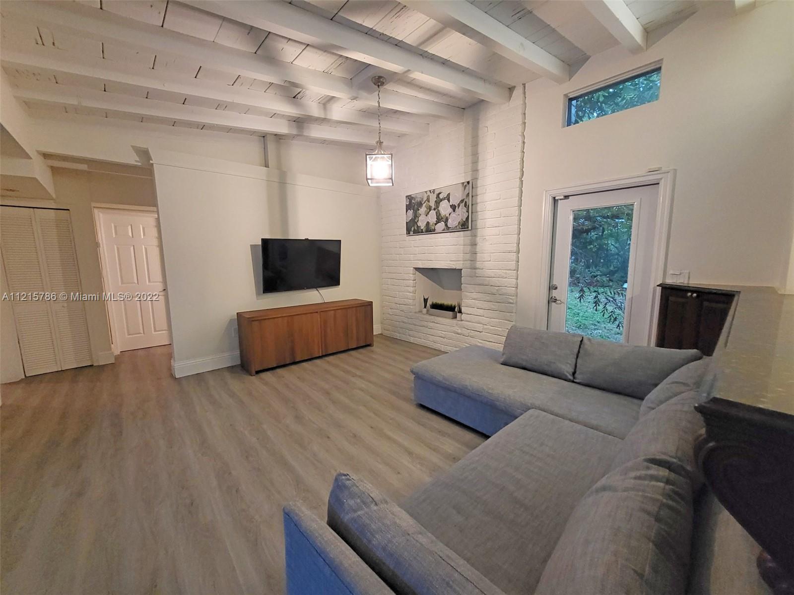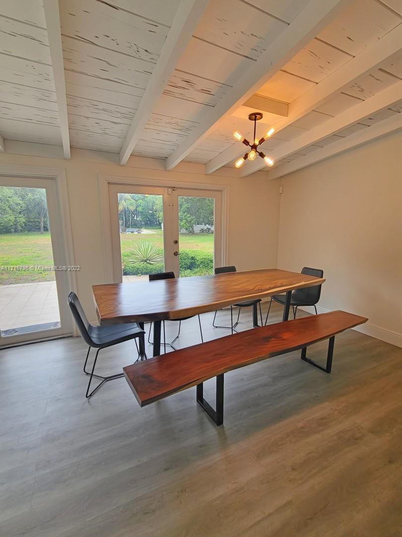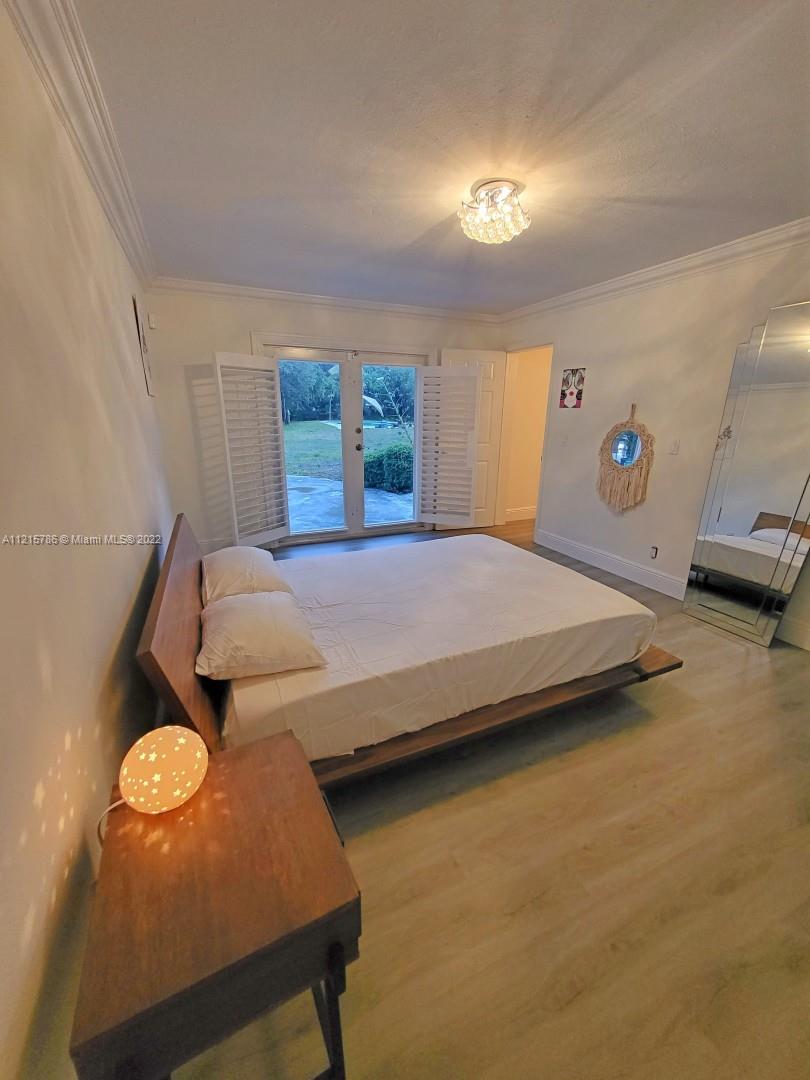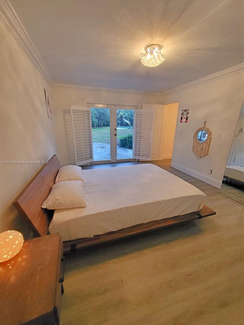 Quiet, inviting, gated North Pinecrest home sitting on over one acre of peaceful greenery. The home is located on a quiet cul-de-sac. The home has multiple mango, avocado and palm trees with a 9' privacy hedge along street. Cottage home has a 3 bed, 2 bath main house, with open floor plan & white Pecky Cypress beam ceilings. The dining area overlooks triple glass doors to an 80' pool & guest house perfect for entertaining. Main house has impact glass and 1-car garage. Pool house was renovated in 2022 with recessed lighting, new kitchen and bath, large porcelain tile floors with 1 bed & full bathroom with an outdoor shower. Guest home can be used as an in-law suite.