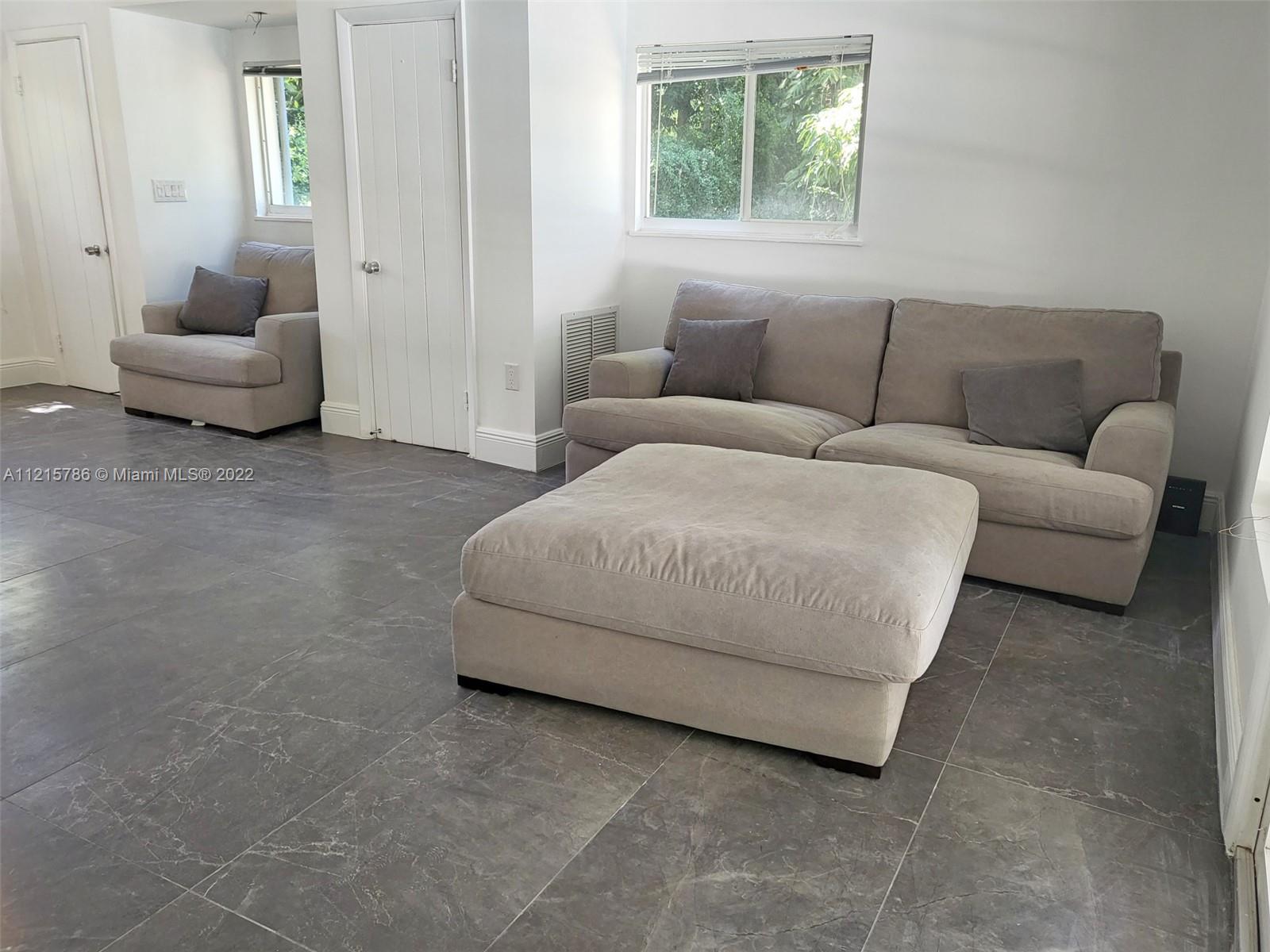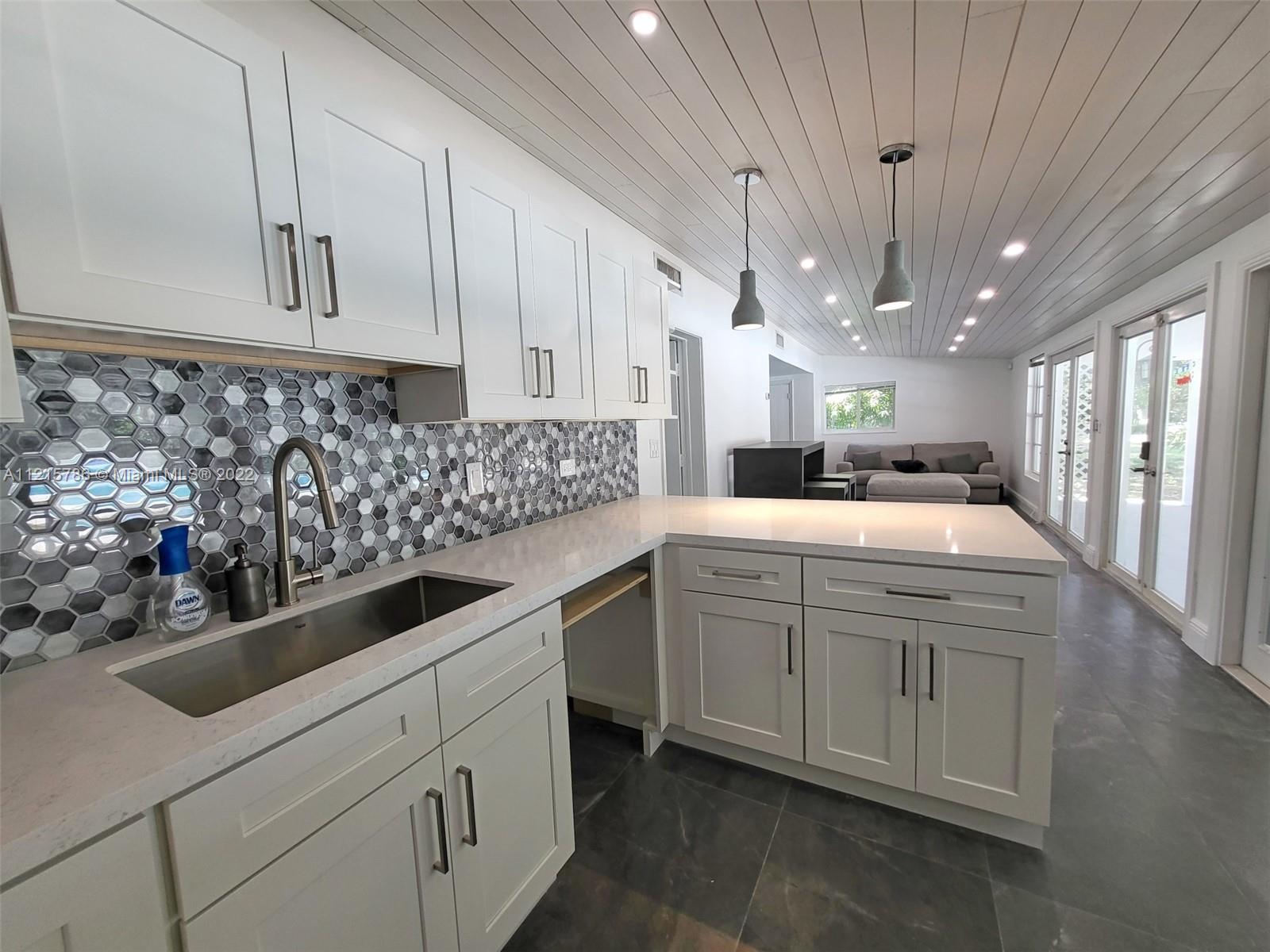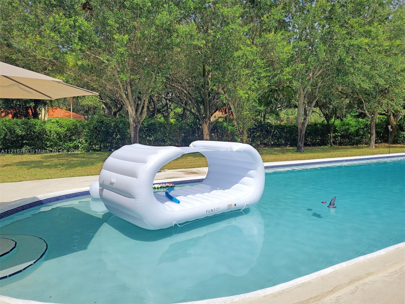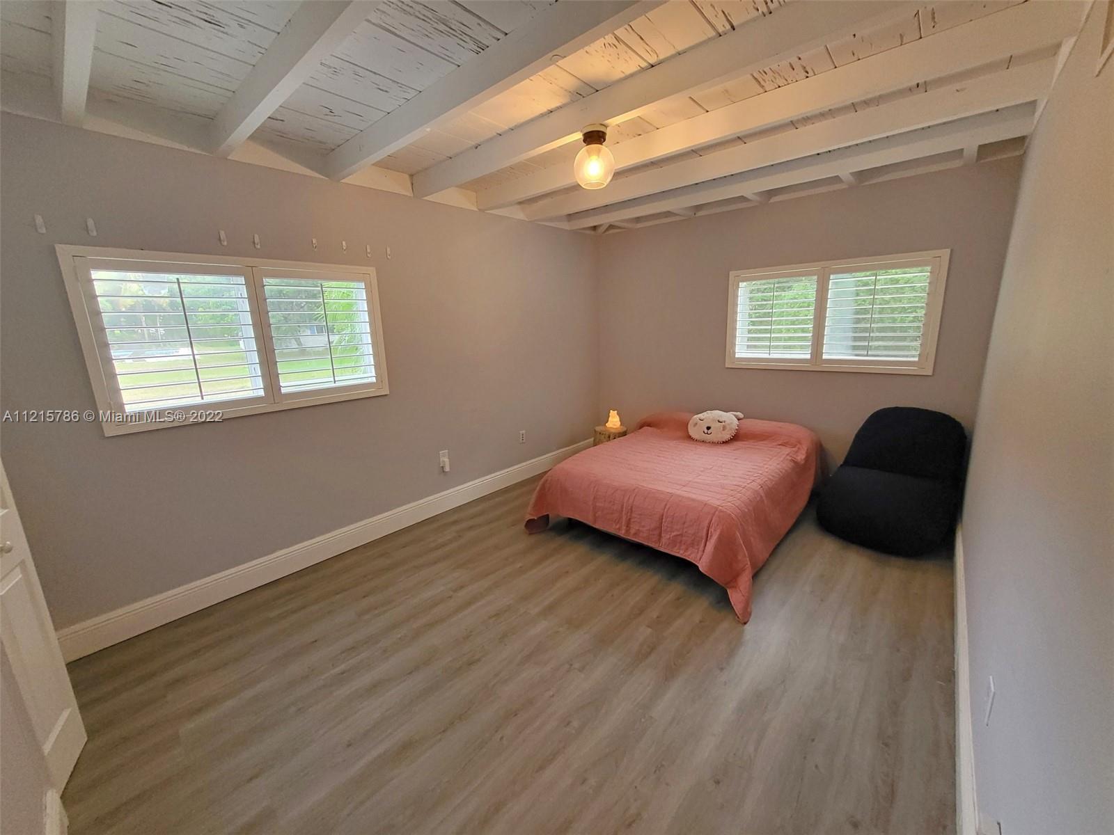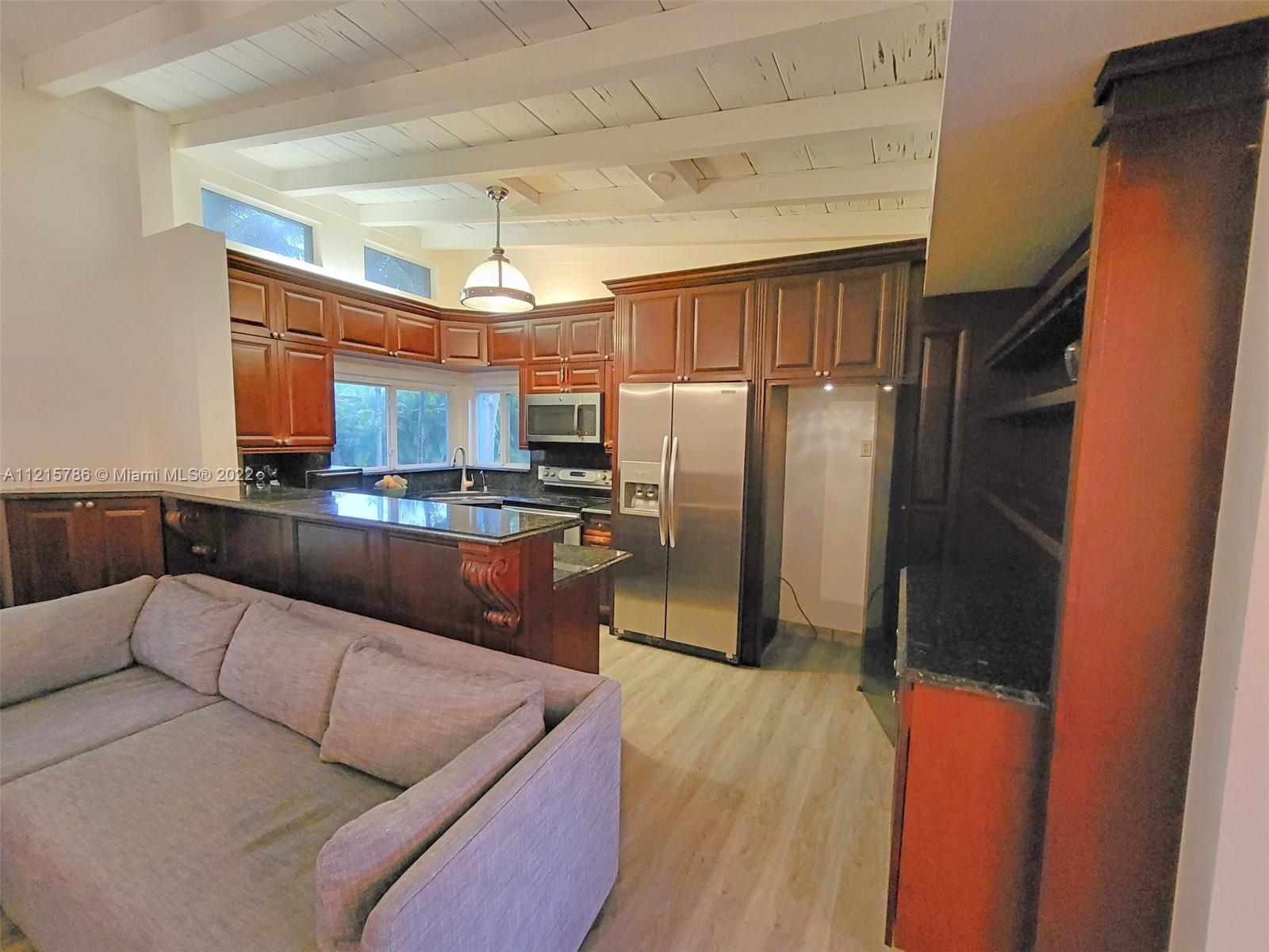 Quiet, inviting, gated North Pinecrest home sitting on over one acre of peaceful greenery. The home is located on a quiet cul-de-sac. The home has multiple mango, avocado and palm trees with a 9' privacy hedge along street. Cottage home has a 3 bed, 2 bath main house, with open floor plan & white Pecky Cypress beam ceilings. The dining area overlooks triple glass doors to an 80' pool & guest house perfect for entertaining. Main house has impact glass and 1-car garage. Pool house was renovated in 2022 with recessed lighting, new kitchen and bath, large porcelain tile floors with 1 bed & full bathroom with an outdoor shower. Guest home can be used as an in-law suite.