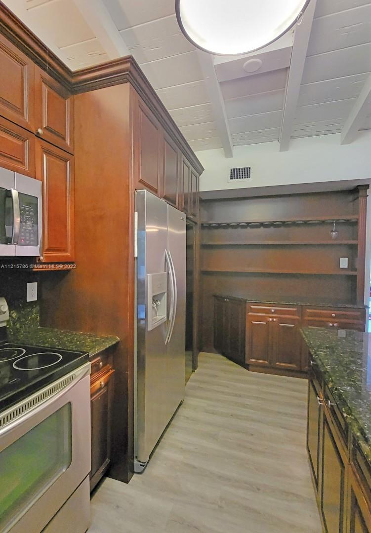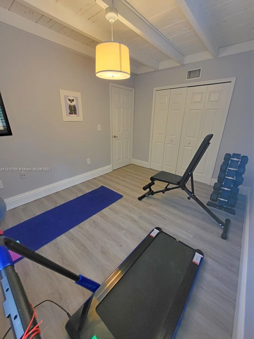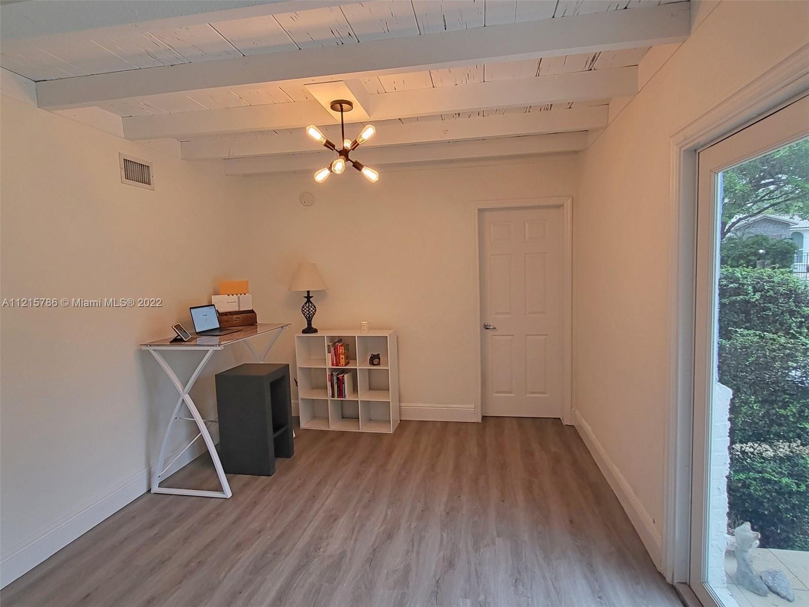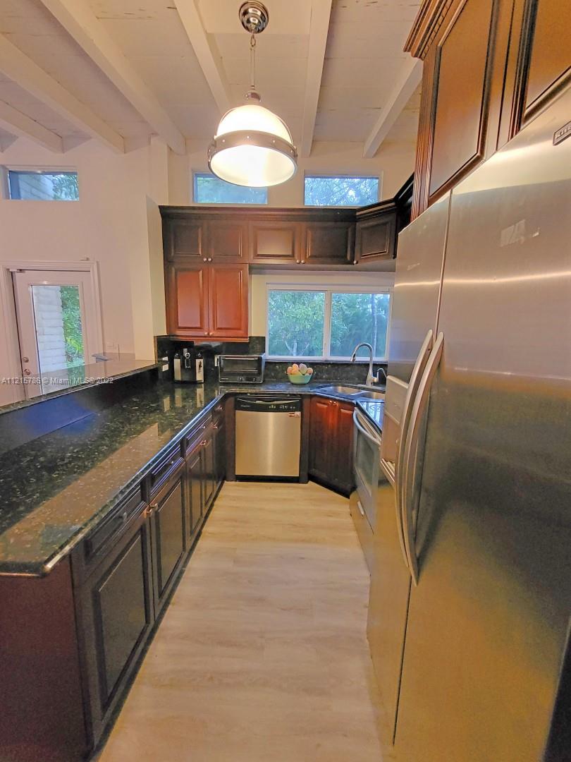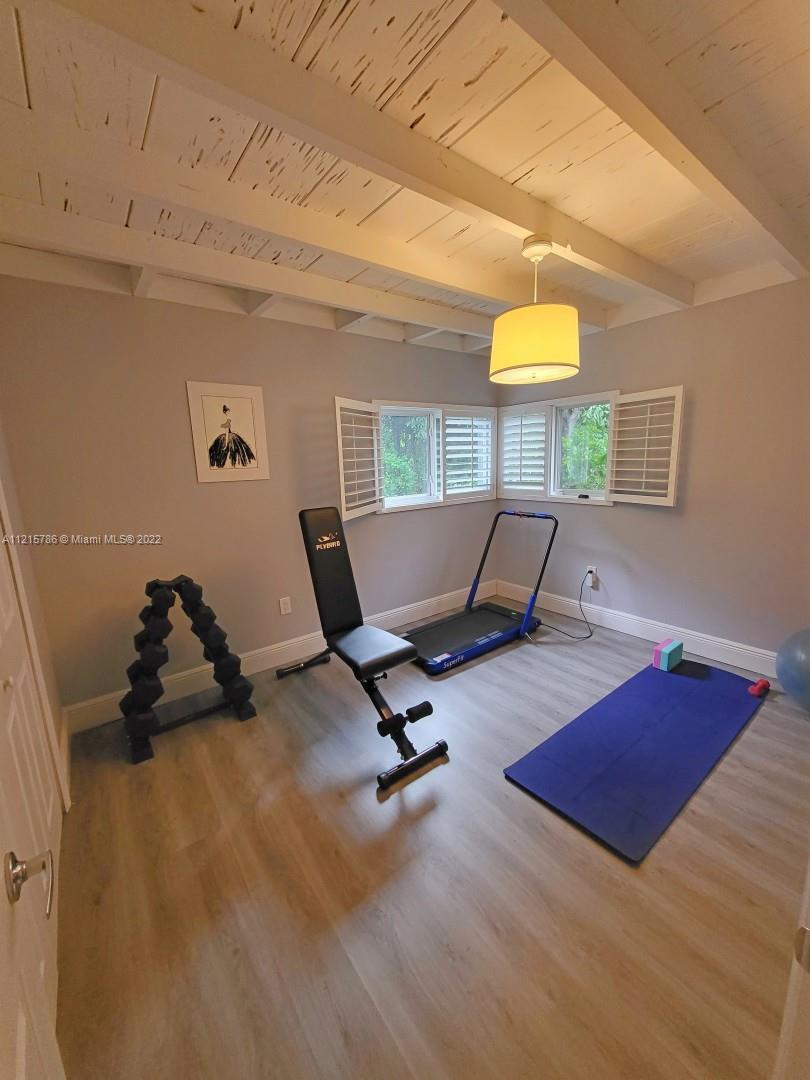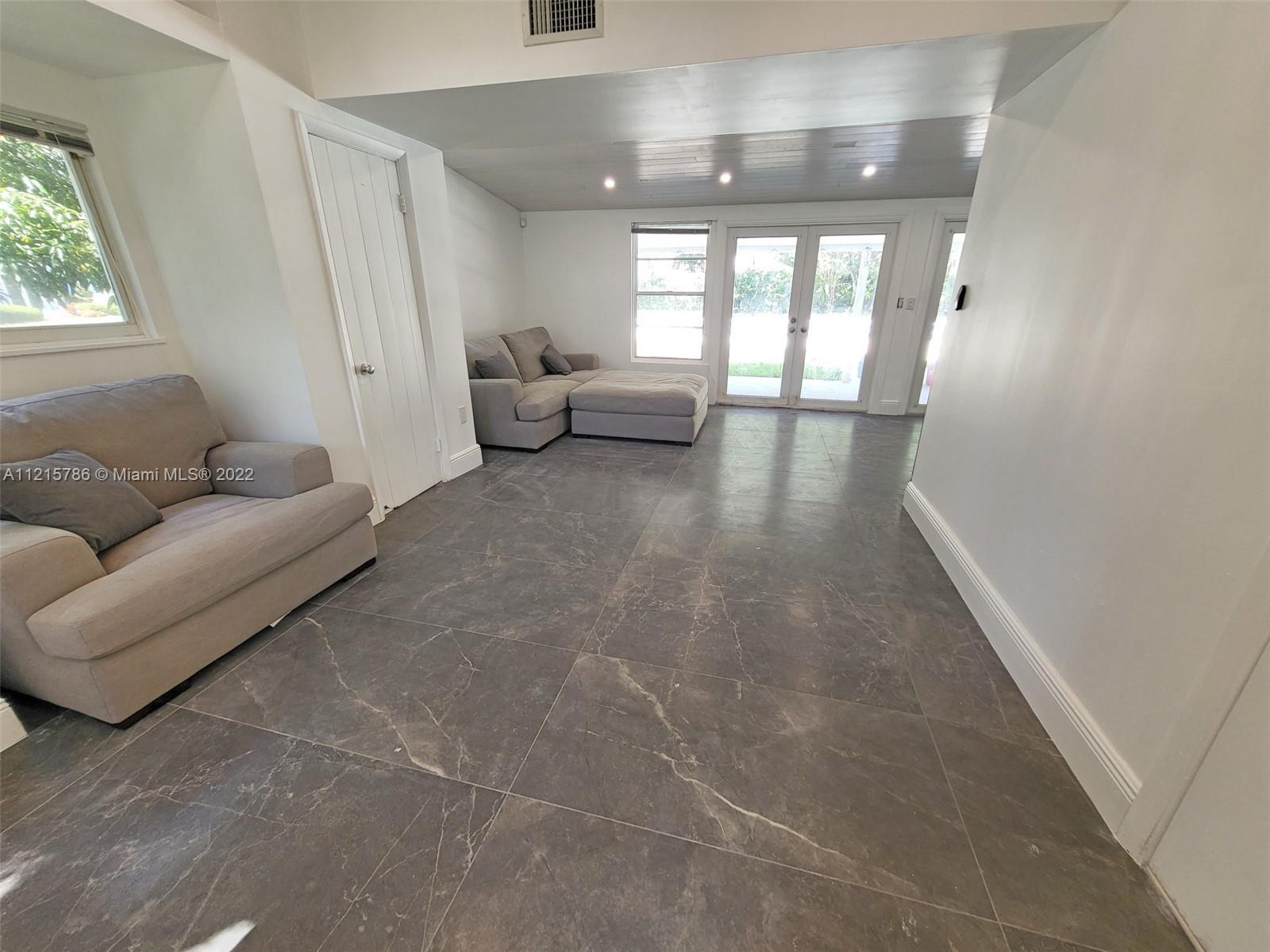 Quiet, inviting, gated North Pinecrest home sitting on over one acre of peaceful greenery. The home is located on a quiet cul-de-sac. The home has multiple mango, avocado and palm trees with a 9' privacy hedge along street. Cottage home has a 3 bed, 2 bath main house, with open floor plan & white Pecky Cypress beam ceilings. The dining area overlooks triple glass doors to an 80' pool & guest house perfect for entertaining. Main house has impact glass and 1-car garage. Pool house was renovated in 2022 with recessed lighting, new kitchen and bath, large porcelain tile floors with 1 bed & full bathroom with an outdoor shower. Guest home can be used as an in-law suite.