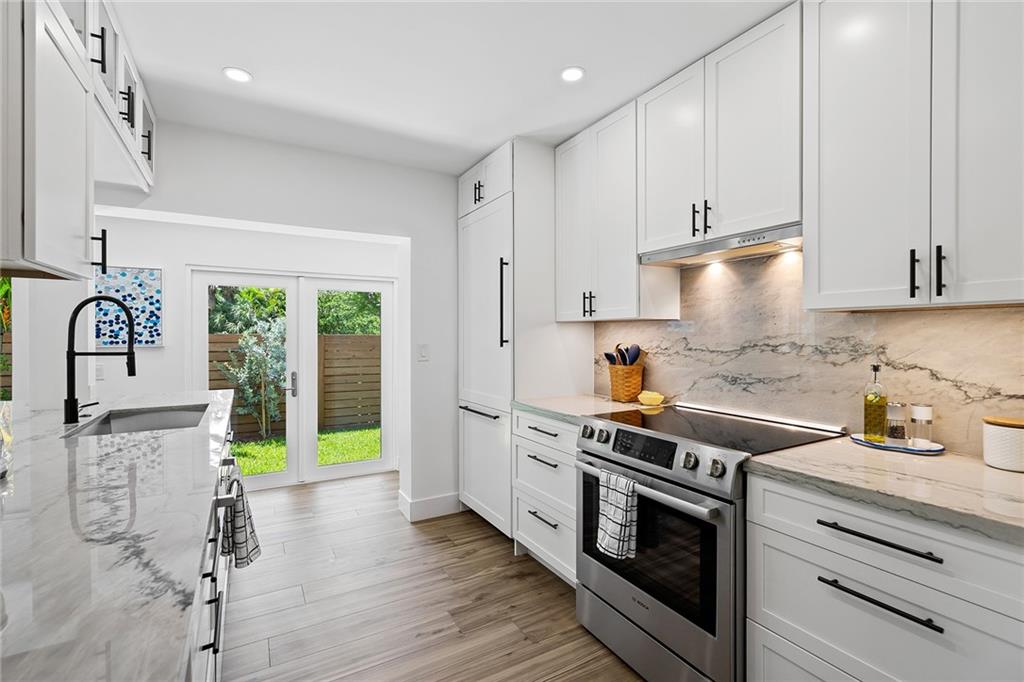 Nestled between Fort Lauderdale Beach and Hugh Taylor Birch State Park sits this impeccably renovated and expanded home. It features an open floor plan with fireplace, high wood beamed ceilings, modern chef’s kitchen, large dining area, generous ensuite baths for each bedroom and private solar-heated pool. Master suite addition completed in 2020. Just 5 houses from the sand and surrounded by tropical landscaping there is a private off-the-beaten-path sensibility while remaining centrally located: nearby hiking trails, beaches and restaurants. Everything was updated and improved with incredible attention to detail: impact windows/doors, new TPO insulated roof, zoned AC systems with air purifying system, water filtration system, exterior cypress ceilings/soffits, storage shed and more