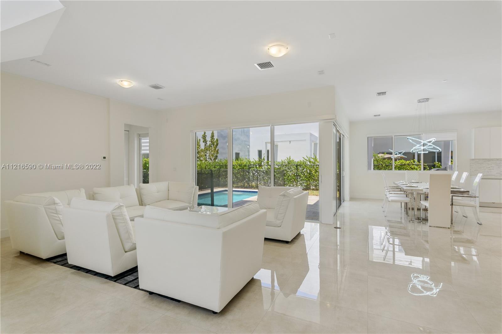 The modernist architecture along with open floor plan gives a wow effect immediately upon entering the house. The 2-story home features 6 bedrooms and 7 bathrooms. 1 bedroom with private bathroom is conveniently located on the main floor. Marble floors, imported Italian Kitchen, Viking & Bosh appliances. High impact windows hurricane proof. Tall 10-12 feet ceilings. Located in the highly sought after gated community of Modern 60, the low HOA gives you access to a state of art Club House with all amenities. With direct access to the Turnpike and Palmetto Pkwy, this home is centrally located: 15 minutes to Miami International Airport, 30 minutes to Miami Beach, walking distance to shops and restaurants. A rated schools! **Dial 4988 at the gate to request access ** SECURITY DOES NOT LET IN!