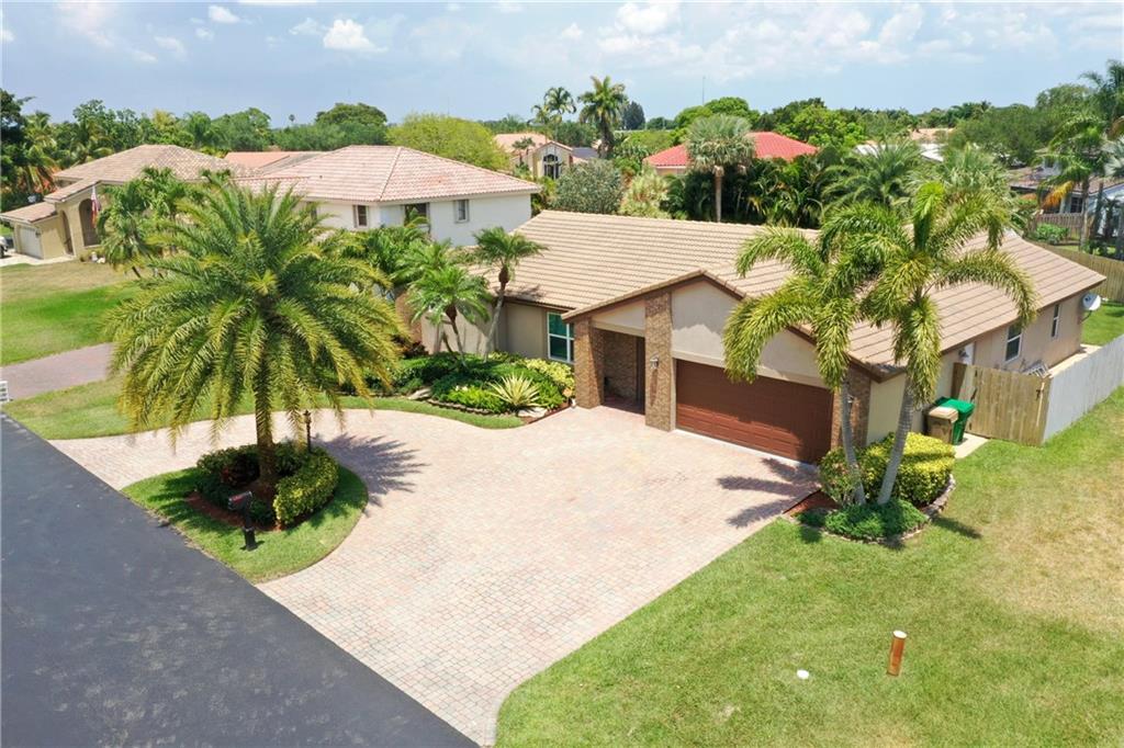 Beautifully updated 3 bed 2 bath home +2 car garage in Hawkes Bluff of Davie. Interior features include vaulted ceilings, formal living & dining room + family room, recessed LED lighting, open kitchen with SS appliances, granite counter tops, & wood grain tile flooring throughout. Master bath 3 years new w/stand up shower plus Jason International hydrotherapy tub. Roof 2008, AC 2010, Rheem WiFi Water Heater 2018, custom closets, impact windows and doors, security system w/cameras. Home sits comfortably on 10,000 sq ft lot landscaped with lush trees, gated yard, & large covered patio, perfect for entertaining. Heated pool 6 years new w/salt water system & hot tub. Automated WiFi Rainbird Irrigation system, A+ schools, minutes to I-75, shopping, dining!