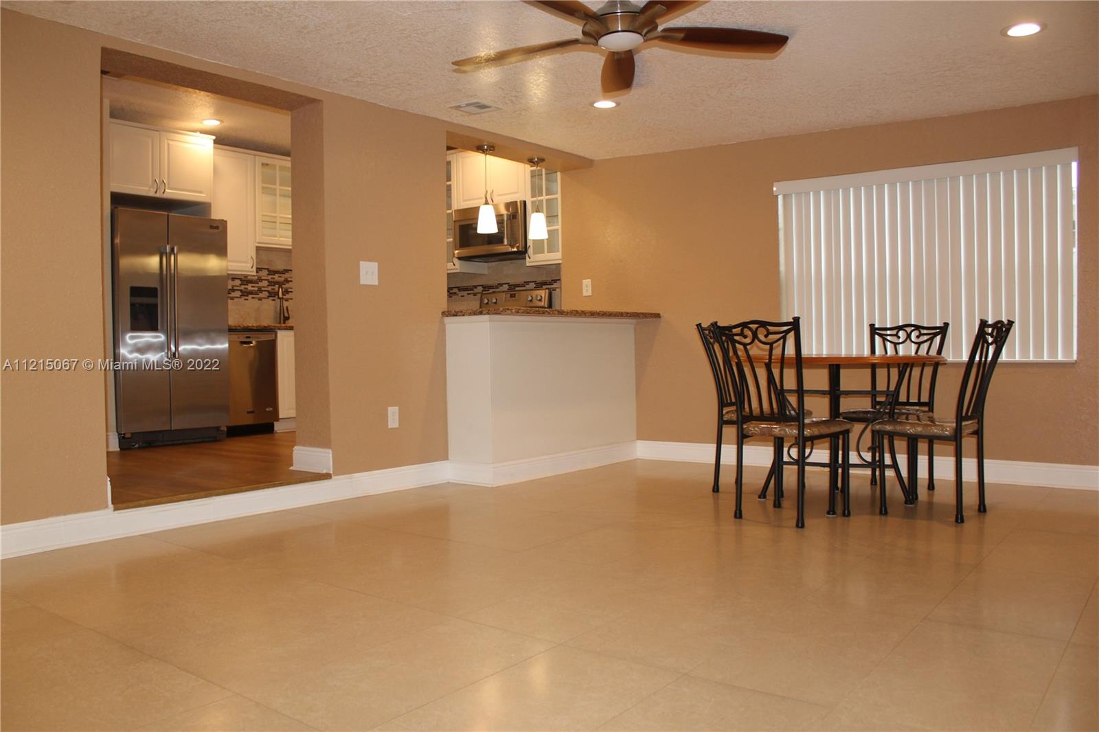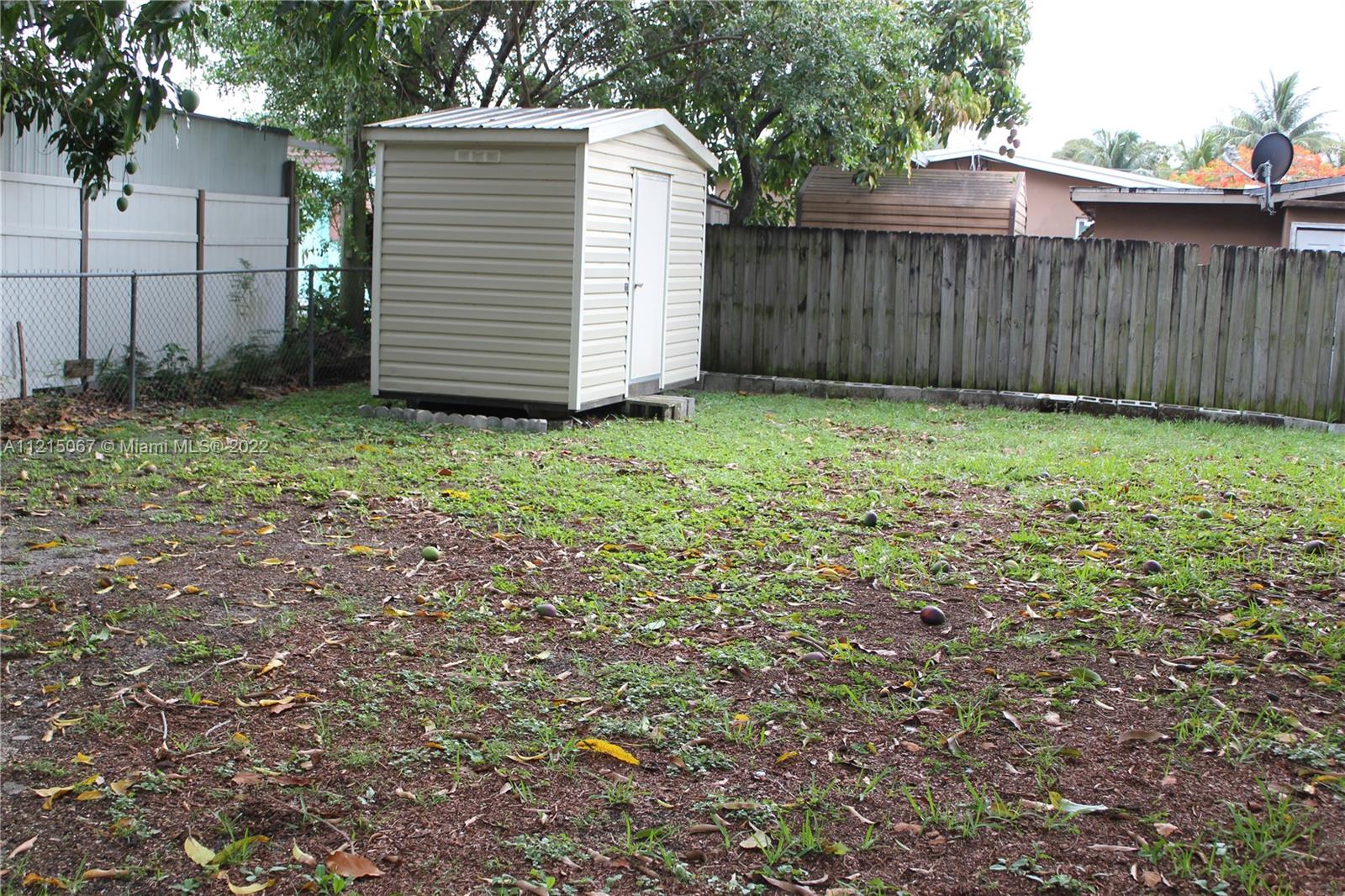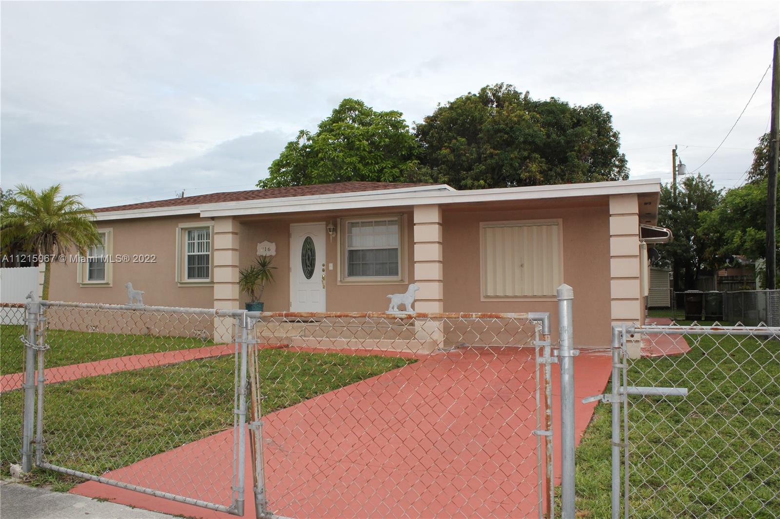 Charming 3/1 single-family home in the heart of East Hialeah. New roof 2021 - New kitchen cabinets with glass doors and lights, Granite counter tops and tile backsplash, Stainless steel appliances, Dryer and washer, Ceiling fans, New water heater, Accordion Shutters & 6'x12' Shed. New Flooring includes waterproof vinyl laminate and tiled bathroom & Florida room. The property has a large driveway and patio, enough room to store a boat/RV. Also, plenty of space to build a pool or add a future addition. Mature fruit trees and staghorn fern. Sold As Is