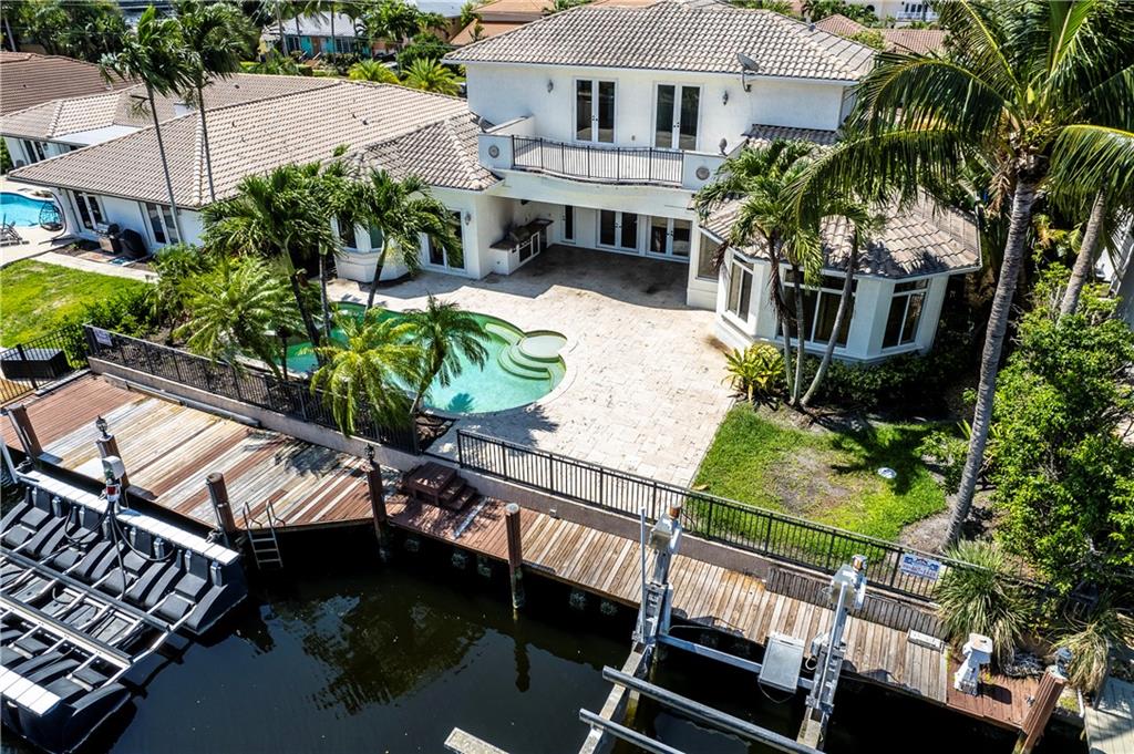 SELLER MOTIVATED! Coral Ridge Country Club waterfront home with 85 feet of waterfront, full length dock, boat lift and no fixed bridges to ocean. This 4 bedroom 4 bath home built in 2005 features very high ceilings, a large open kitchen with walk in pantry, family room, formal living room with fireplace, wine cellar, guest bedroom and large master suite on the first floor. Upstairs are 2 bedrooms and 2 baths, a large terrace overlooking the pool and waterway and a loft that could be converted into a 5th bedroom. The backyard has a covered patio area, summer kitchen and an inviting pool and spa. Walk to Cardinal Gibbons High School and Bayview Park - a 7 acre city park featuring tennis courts, basketball court, baseball diamonds and playgrounds. Close to everything you need!