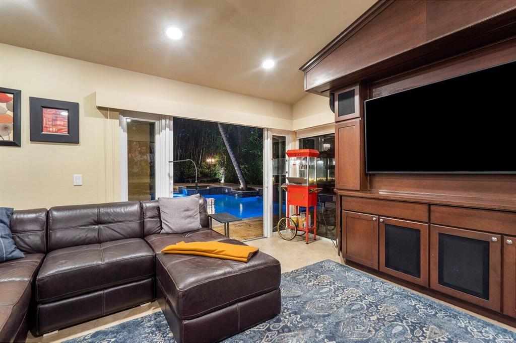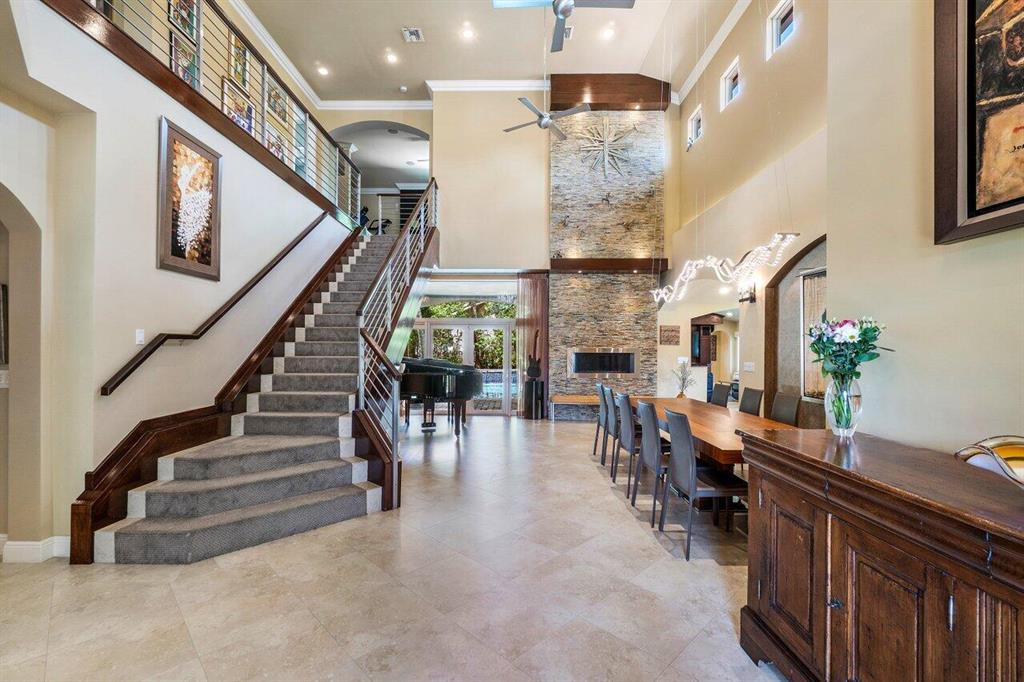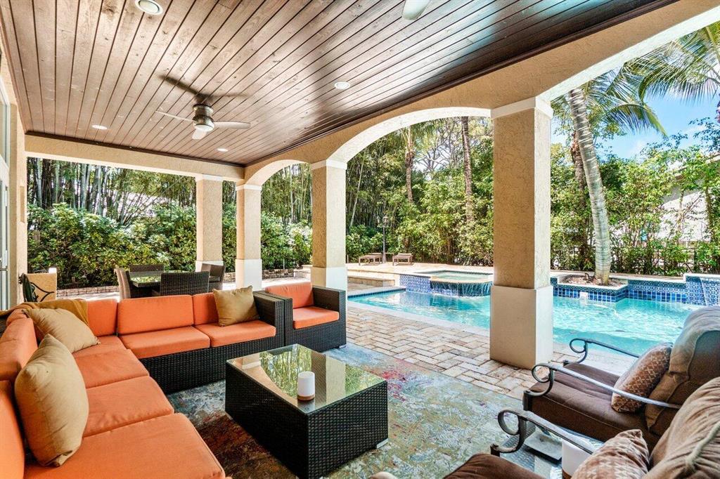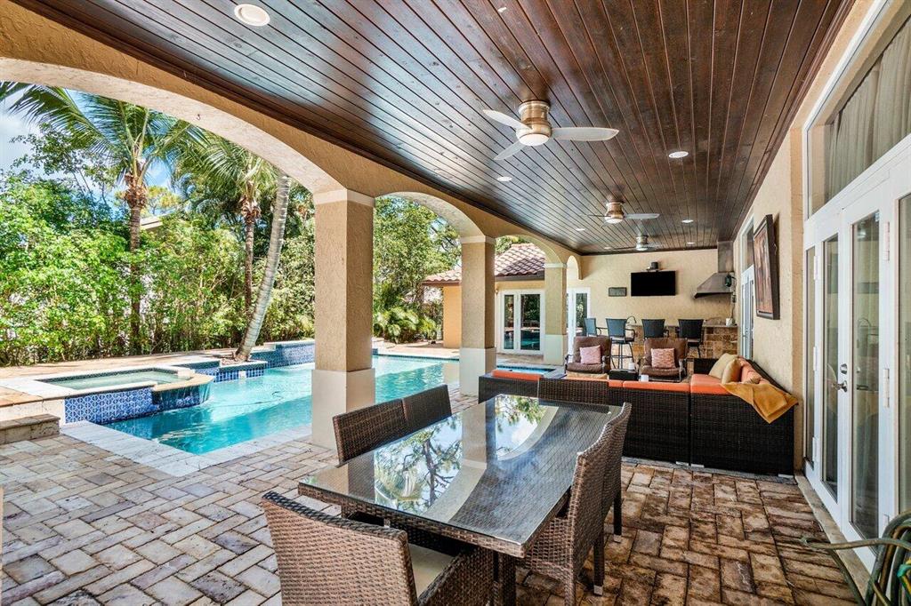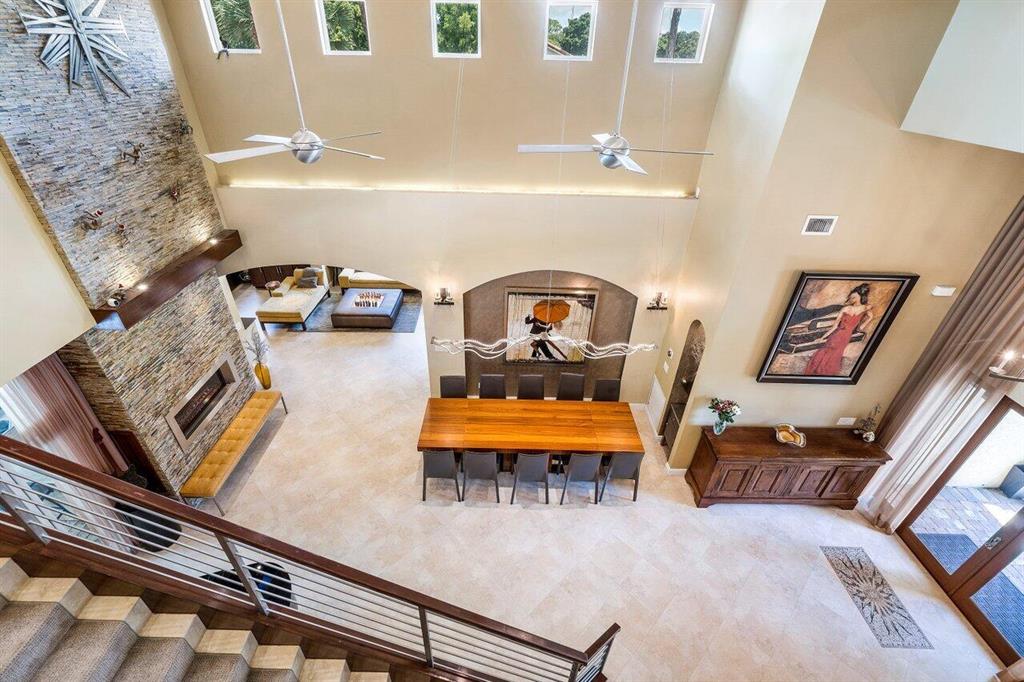 This stunning home will wow you the moment you enter with a grand staircase and 2-story stone fireplace. Completely rebuilt from the ground up in 2010, this 5BD + Loft (6th BD), 5 bath home boasts 3,920 sq ft of living space, impact resistant glass, whole house generator, tankless water heaters, and more. Ground floor master suite and office have 10' ceilings. Recently renovated chef's kitchen with KitchenAid Pro appliances including a 36'' gas stove and 42'' refrigerator. Enjoy family movie night in the media room that includes custom cabinetry with wine/beverage cooler, 70'' HDTV and 106'' remote-controlled projection screen. Outside you'll feel as if you are in a tropical resort with the heated pool, spa, covered loggia, outdoor kitchen/bar, all surrounded by gorgeous foliage. Must See!
