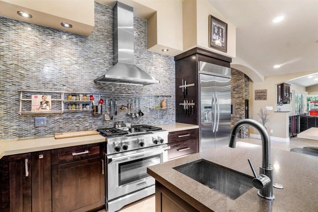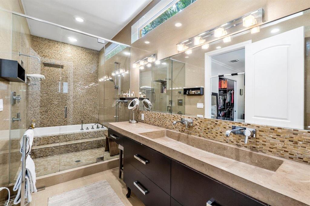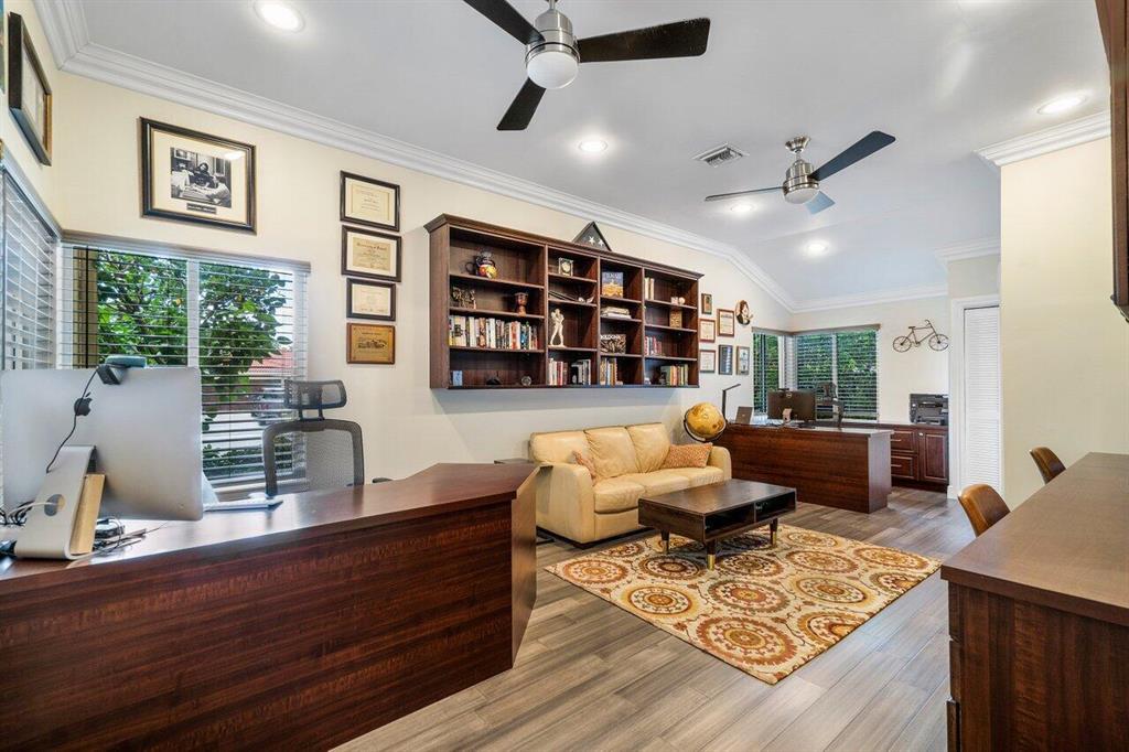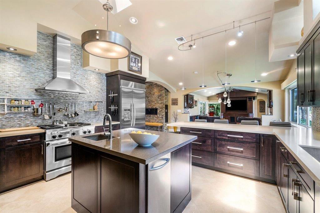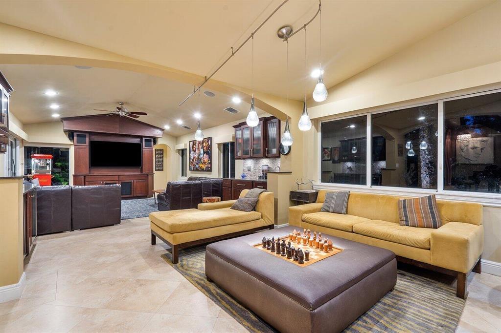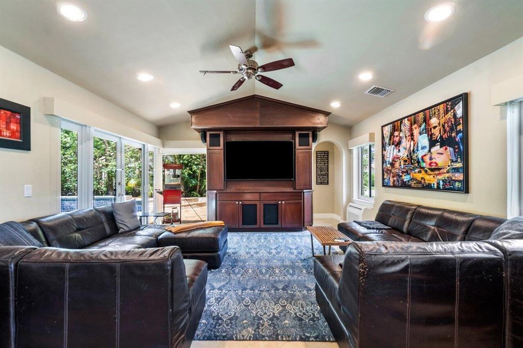 This stunning home will wow you the moment you enter with a grand staircase and 2-story stone fireplace. Completely rebuilt from the ground up in 2010, this 5BD + Loft (6th BD), 5 bath home boasts 3,920 sq ft of living space, impact resistant glass, whole house generator, tankless water heaters, and more. Ground floor master suite and office have 10' ceilings. Recently renovated chef's kitchen with KitchenAid Pro appliances including a 36'' gas stove and 42'' refrigerator. Enjoy family movie night in the media room that includes custom cabinetry with wine/beverage cooler, 70'' HDTV and 106'' remote-controlled projection screen. Outside you'll feel as if you are in a tropical resort with the heated pool, spa, covered loggia, outdoor kitchen/bar, all surrounded by gorgeous foliage. Must See!