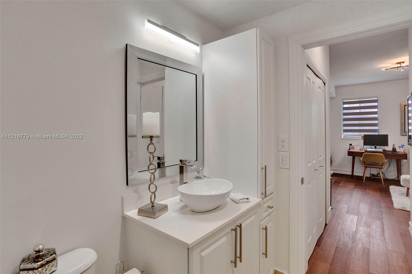 Completely remodeled spacious townhouse in a small 41 unit boutique community. Walking distance to Giralda and Miracle Mile. Open living area downstairs with a full bathroom, wine bar, all new kitchen cabinets with quartz countertops and new appliances. Custom made Modern Glass Stair railing. Individual bathrooms in the 2 bedrooms upstairs with new wood floors and private balcony in Master. Master bath has double sinks, jacuzzi tub and shower. Dual Zebra window treatments. Impact doors and windows with extra 3M film. Private Alarm system. Security cameras throughout Condominium. 2 assigned parking spaces in secured garage. Amenities include pool area, gym & business center. Across from Phillips Park and tennis courts. Great schools! Open House Saturday and Sunday June 11-12, from 12PM-3PM