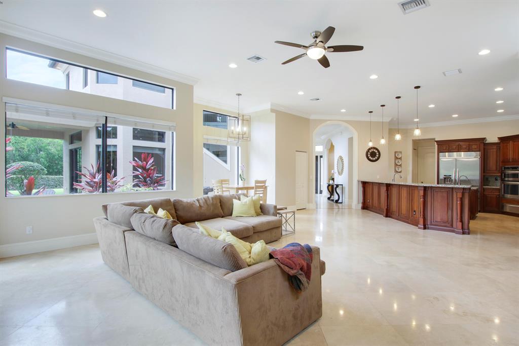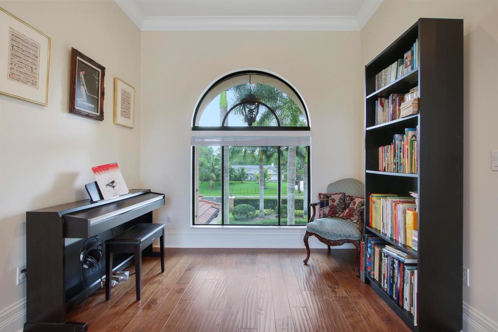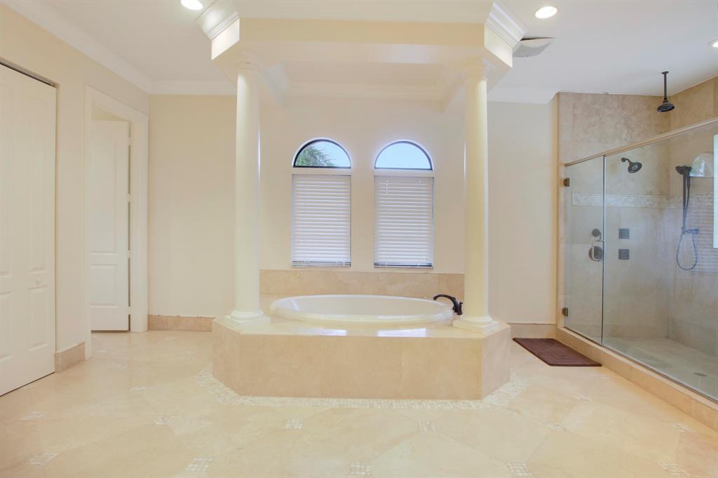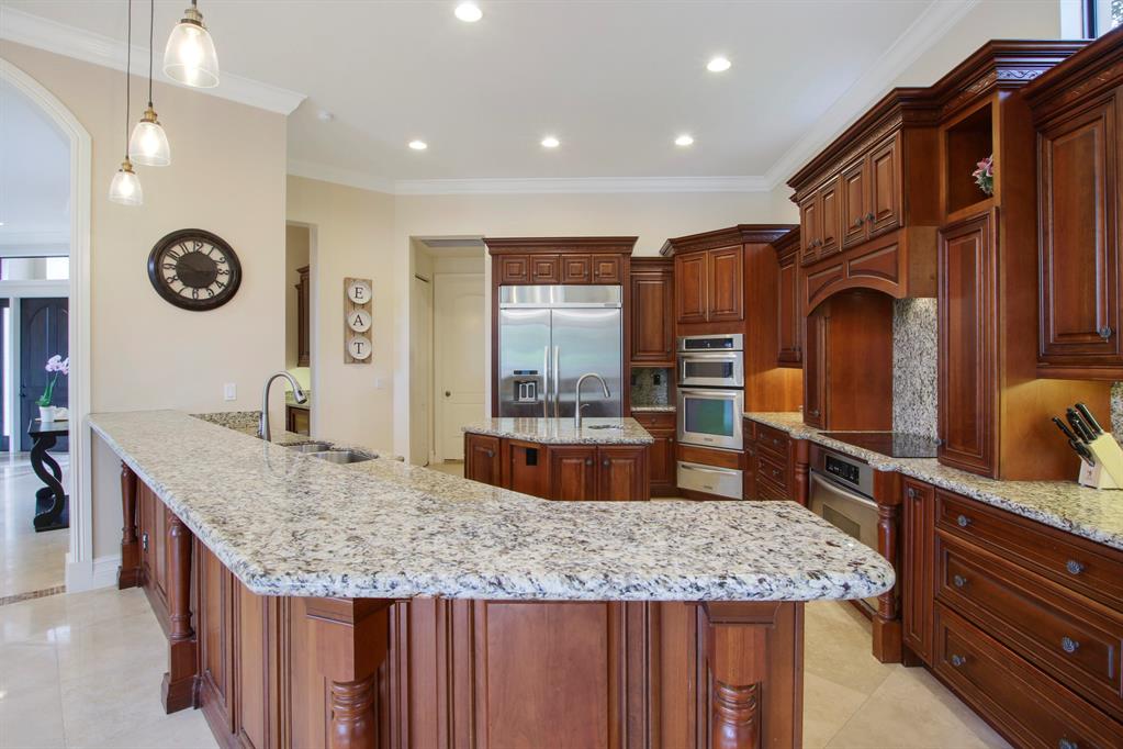 A private gate opens onto a circular drive leading to a luxurious, 2 story, custom built Mediterranean home on 1.16 acres with 5B/6.5B. Upon entering you are awed by the twin bridal staircases with a centered oversized window looking out to the courtyard and pool with spa beyond. This floor features a dining room joined by, a tall cabinet lined passage to the kitchen that has a granite counter wrapping around for a lengthy breakfast bar facing beautiful wood cabinets. This faces the FP'd family room out to a covered patio.. There is an in-law/nanny suite with a private entrance. A full cabana bath, powder room, a custom bookcase lined office, a tray ceiling LVRM with built-ins and wet bar. All this with soaring 12' ceilings, plus a laundry room adjoining the 3 car garage. The