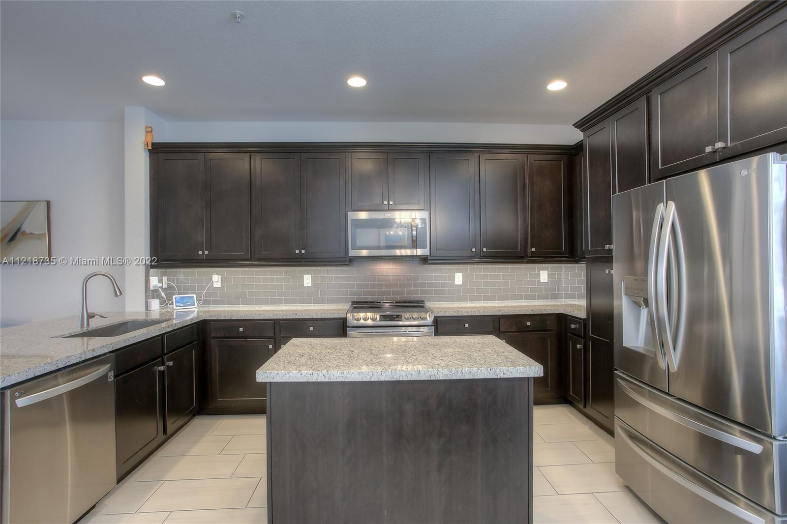 3/3.5 Tri-level townhouse in the gated community of Raintree. First floor features 1/1 +en-suite. The main living area which is on the second floor features neutral tile w/the developer upgrade package in the open kitchen that includes high end granite countertops, wood cabinets, S/S appliances, center island, & snack bar.The third floor feature the expansive master suite w/master walk-in closet upgrade, grand master bath, & third bedroom. Impact windows, great patio hang out.