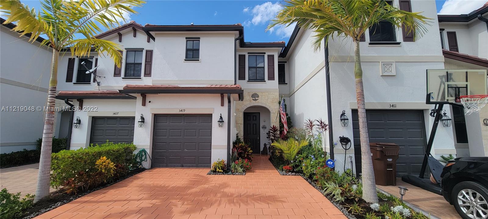 Beautiful Townhome with Smart home features located in the desired resort gated community of Aquabella with two resort pools, two gyms and kids’ waterpark. New construction, just 2.5 years old. Close to highways and great schools. Townhome features, quartz countertops kitchen with stainless steel appliances, upgraded porcelain floors, laminate floors throughout stairway, finished garage, finished backyard with large patio for easy maintenance. Custom marble built in entertainment system, upgraded light fixtures, all upgraded features and appliances stay with new owner. Many other custom stylistic upgrades included, fully landscaped, large lot for community with a park nearly 4 acres in your front yard with plenty of extra parking spaces for your guests in this open concept townhome.