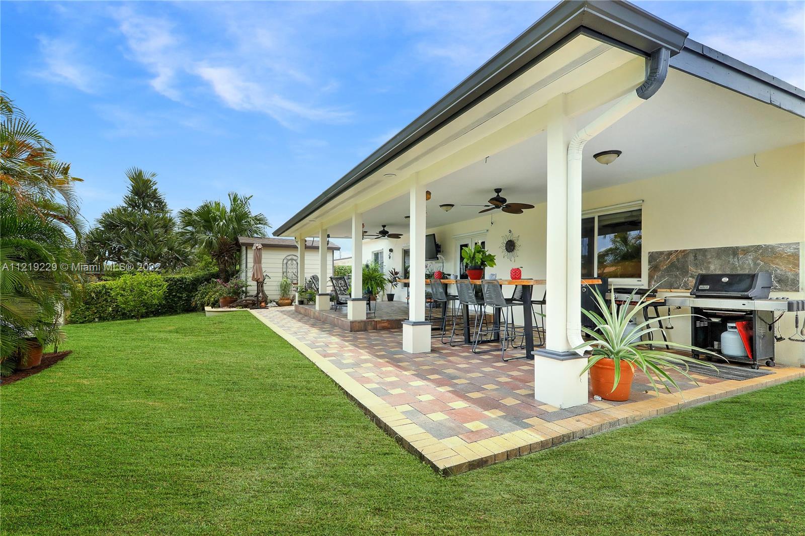 Enjoy epic family gatherings under your covered backyard terrace overlooking the peaceful canal waters. This 4 bedroom, 3 bath home plus office is conveniently located near everything you need – supermarkets, schools, restaurants, shops, and the Palmetto Expressway! Interior features include a triple split floor plan, granite and stainless-steel kitchen, Master Bedroom with his/her closets, updated bathrooms, new A/C (2022), and new shingle roof (2021). The home has a one-car garage, hurricane shutters for all window and doors, pavers on the front and back porches, a side yard for RV or boat parking, and a large shed. The community is connected to the same power grid as Palmetto General Hospital.