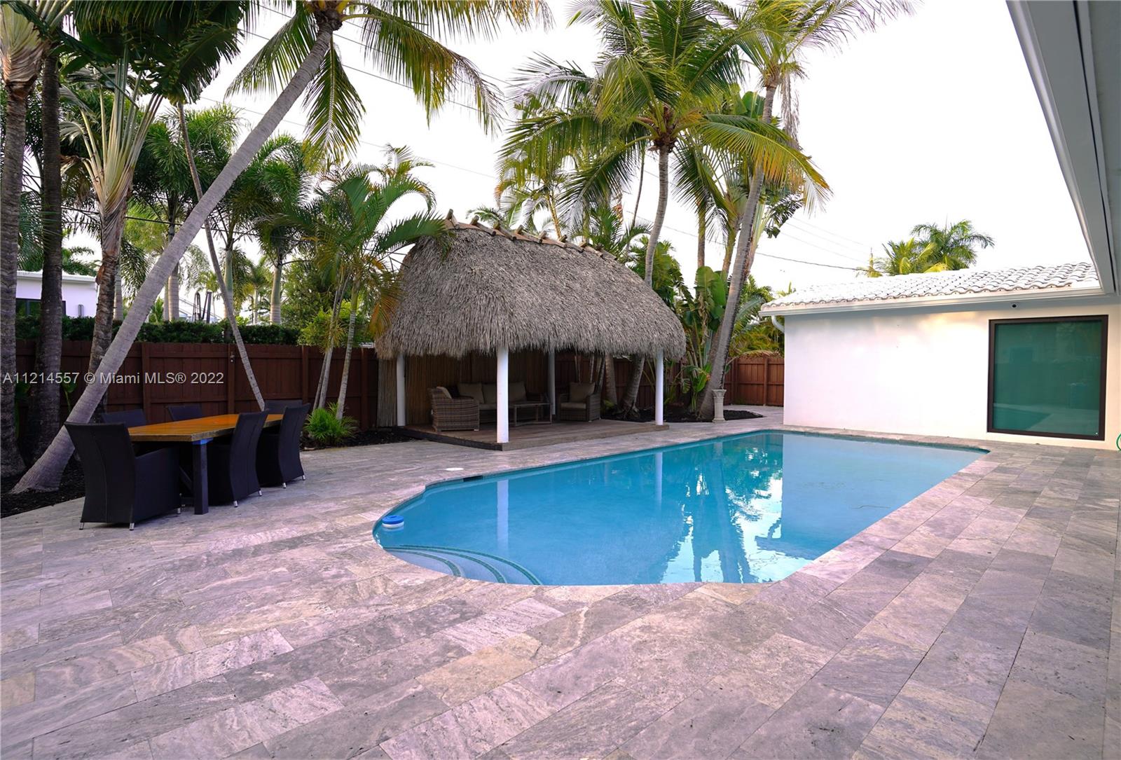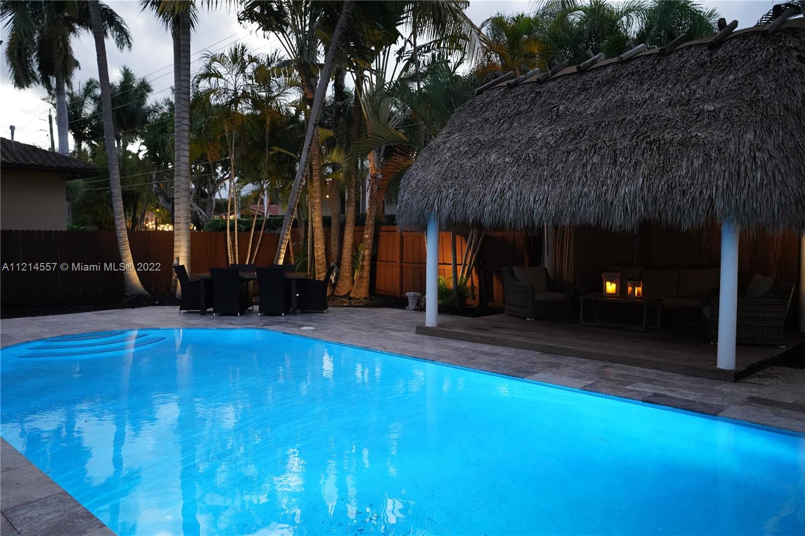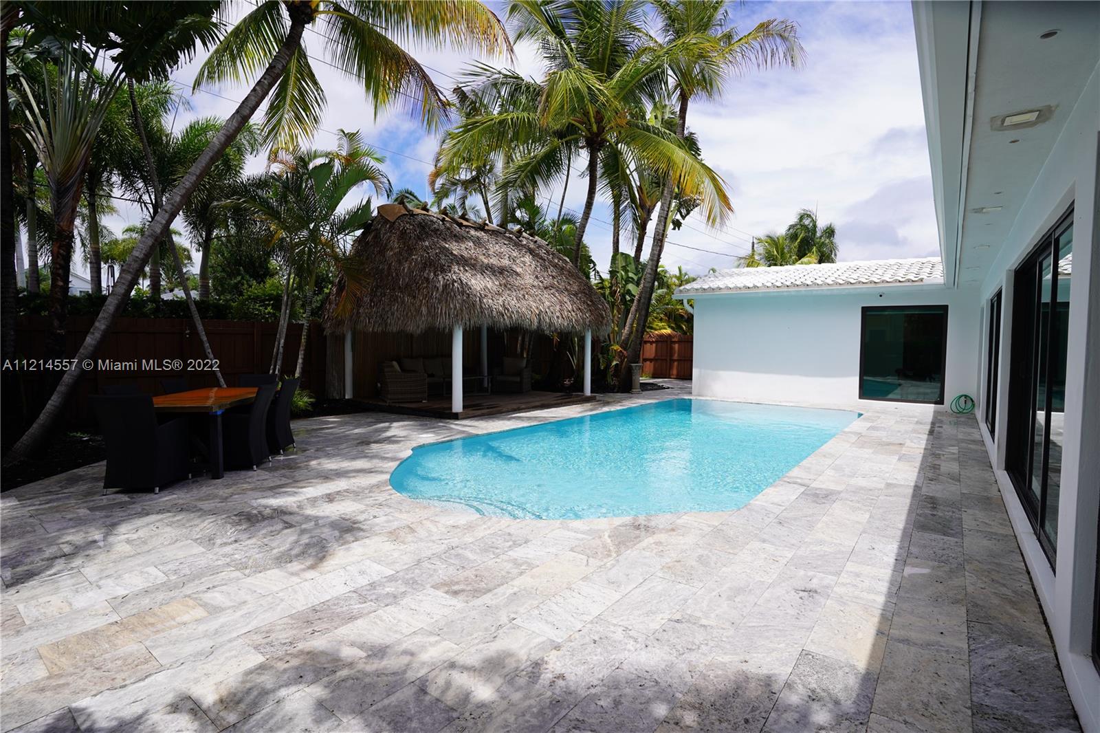 Enjoy your tropical lifestyle in this luxurious, turnkey 4 Bd/3 Bath, 2 car garage home! Contemporarily designed and situated 1 block from the Intracoastal in the heart of Hollywood Lakes, this home has been completely remodeled, featuring Italian porcelain flooring, Italian kitchen cabinetry, high end appliances, impact windows and doors, gas stove, walk in closet and so much more. Your backyard oasis highlighting a pool, mature palm trees and tiki hut will lend itself to great entertainment as well as a quiet retreat while you enjoy the tropical breezes. Upgrades include recently updated electrical wiring, partially new plumbing, 2 tankless gas water heaters, recently resurfaced epoxy flooring inside the garage, extensive attic insulation and a volcanic rock wall at the main entrance.