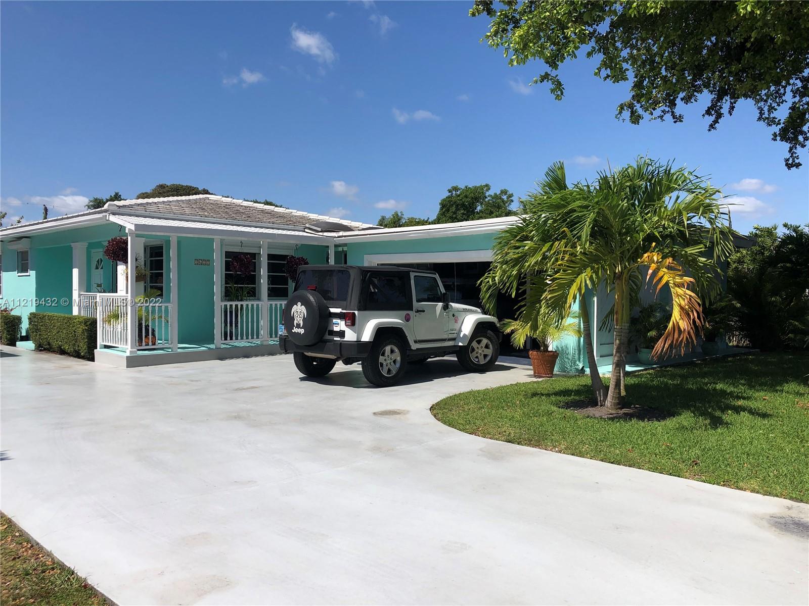 Beautiful Hollywood Little Ranches home, meticulously maintained. Absolute gem, 10 minutes to beach, 5 minutes to I-95 or downtown Hollywood. Backyard is fully fenced and expertly landscaped. Huge lot, over 14,000 square feet (.33 acres) and zoned multi-family. Lots of room to add income producing casita and/or a pool. New luxury vinyl flooring, newly redone primary bath (ensuite), granite kitchen, large living room, formal dining room area, and large Florida room (with its own new A/C unit). Large 2 nd BR and tiled bath. Oversize 2 car garage with lots of storage. Concrete tile roof 6 years old. Rain gutters, hurricane shutters, wrap around front porch, concrete driveway, exterior entry storage room, sprinkler system, new exterior paint. Move-in ready and so much added potential!