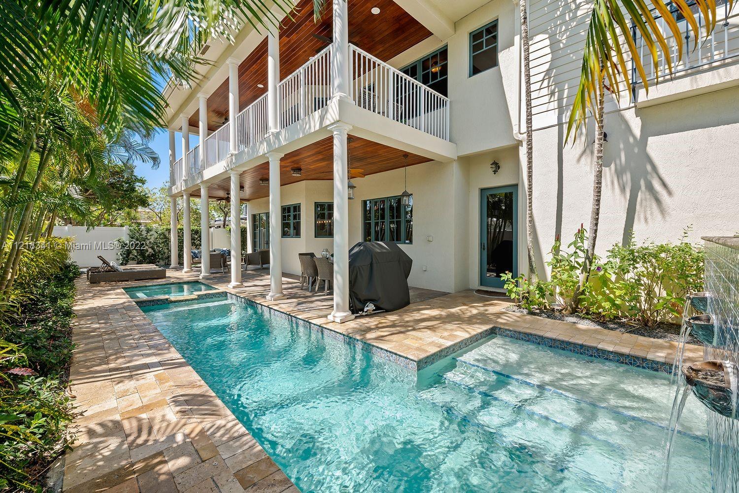 Prepare to be stunned as you walk into this custom built Key West Mediterranean in the prestigious neighborhood of Harbour Inlet, one of the most exclusive neighborhoods of east Fort Lauderdale. As you walk into the home you are welcomed by a beautiful foyer with a grand staircase with custom rod iron railing. Perfect for entertaining, the home also has a wet bar that introduces you to the open concept living room and kitchen complete with a built in breakfast nook. All bedrooms have ensuite bathrooms. The tranquil backyard is lined with palm trees and is complete with a beautiful pool/spa as well as a paved seating area. New aluminum metal roof with a 40 year warranty, 5 AC units with 5 Zones installed in 2021, a brand new fence, 2 laundry rooms, and a Generator (45 kw Natural Gas).