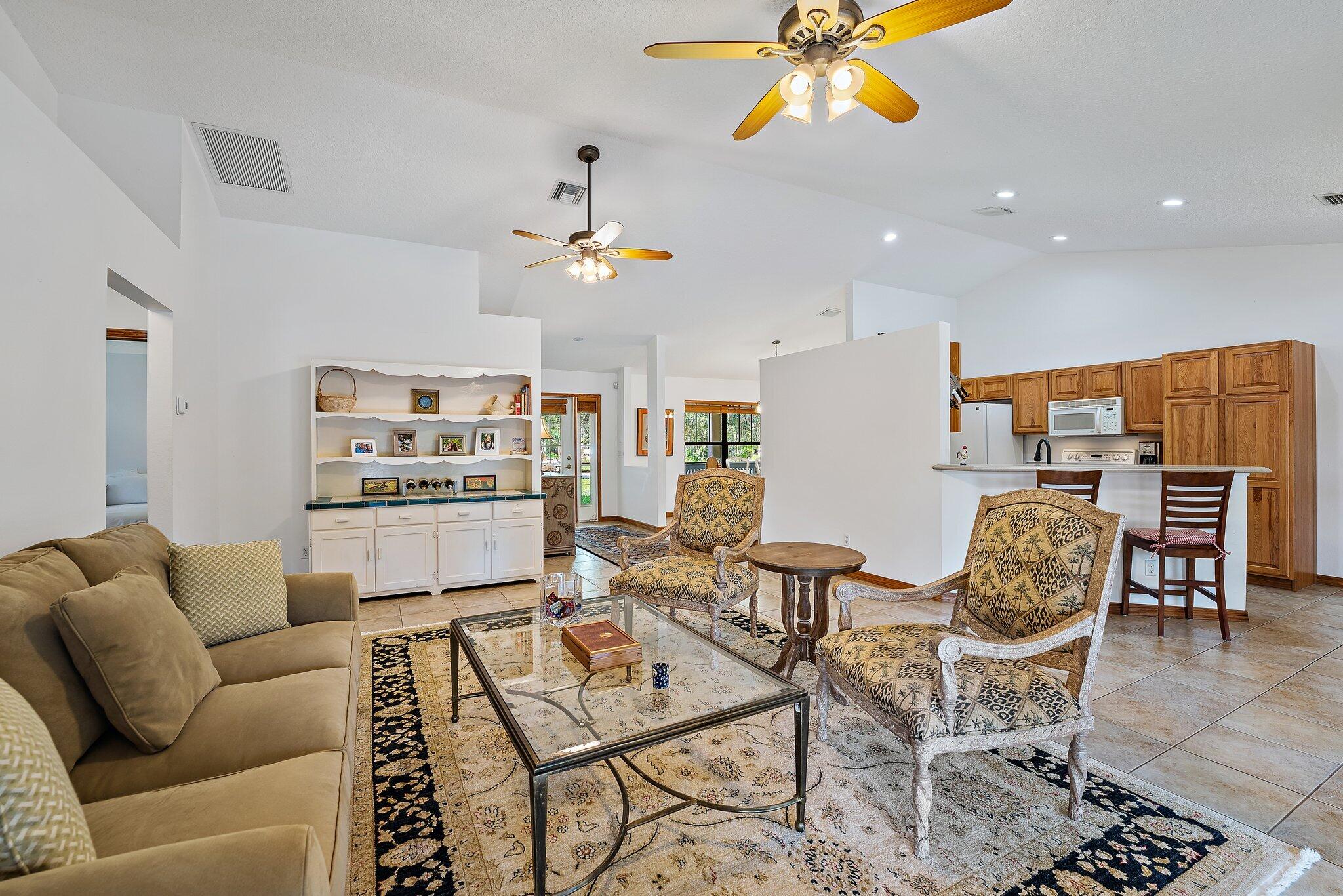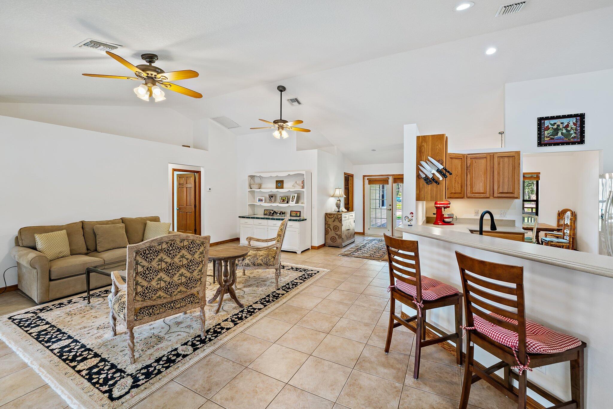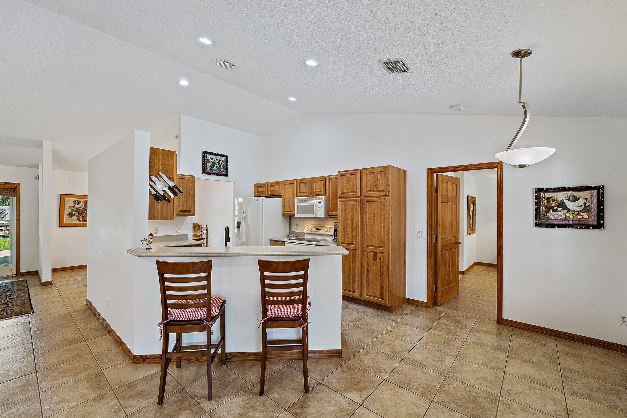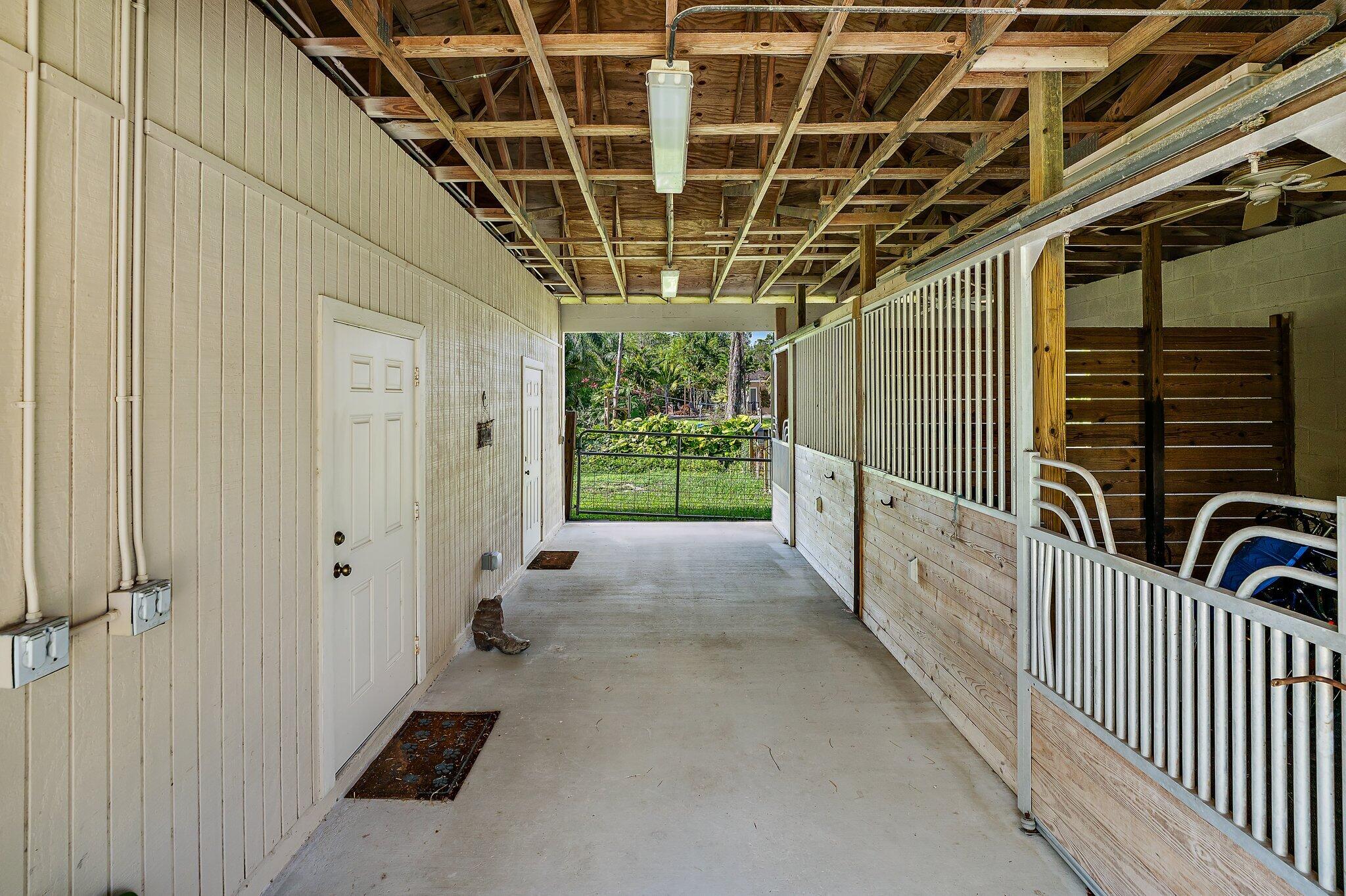 A rare opportunity to purchase a true Equestrian home in Palm Beach Country Estates. This 3 bedroom 2 bath Key West style home offers city water, CBS construction, split floor plan, vaulted ceilings, and a screen enclosed salt chlorinated pool. Located on a 1.17 acre parcel that is fully fenced. There are a variety of fruit trees....20 of them! Some recent updates include the following: New vinyl flooring in all bedrooms, exterior painted, garage floor resurfaced, paver pool deck reset, Prewired panel for generator, outdoor sink, and LED high hat lighting. Don't have a horse? The barn is CBS construction. Why not convert to guest house, additional garage or office? Last but not least, there is a coop of egg laying hens and a rooster named Oscar! Adoptable if you'd like!!