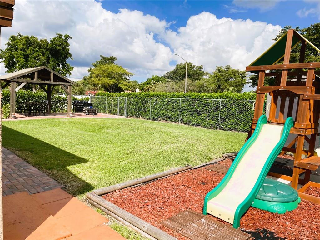 Lots of options in this beautiful home! 2 family rooms (or additional bedrooms), beautiful kitchen with wood cabinets and granite counters. 3 full bathrooms. You'll find paradise in the fully fenced backyard with plenty of room for a pool. 4th bedroom is converted garage. Quiet neighborhood yet close to The Coral Square Mall and main roads.