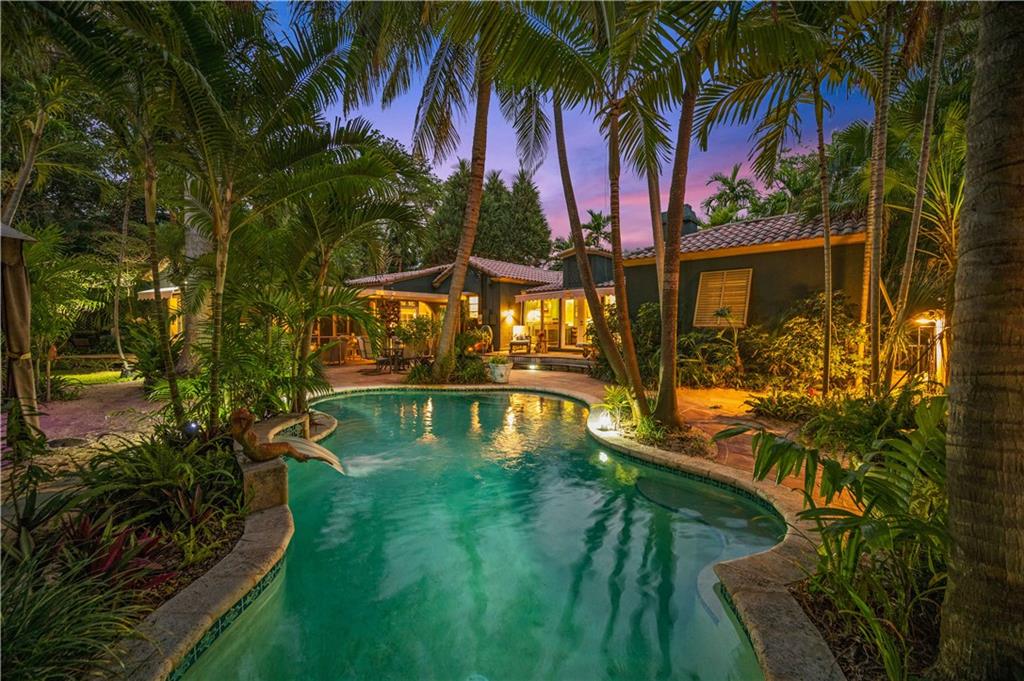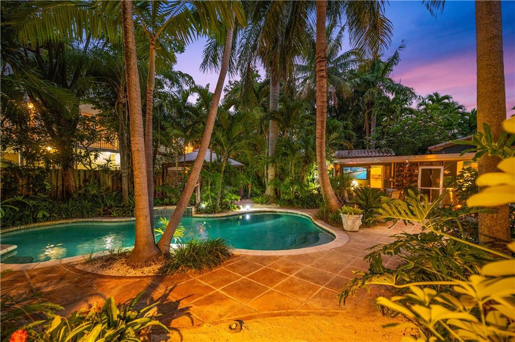 Available for the first time in nearly 30 years. Among the most prominent locations in Victoria Park. The owners of this double lot property have cared for and improved the property over that time adding a pool, an oversized two car garage, multiple patios and gardens and so much more. The main house has three bedrooms, hardwood and art tile floors, a fireplace, Florida room and a newer eat-in kitchen. A screened patio room is where you will want to relax and connects to a separate building housing the laundry. Next door is the one bedroom guest house with its own kitchen and private patio. Paved and gravel pathways travel through this gorgeously landscaped property to hidden its corners and an orchid shed and bar. Two driveways allow space for multiple cars or an RV behind a high gate.