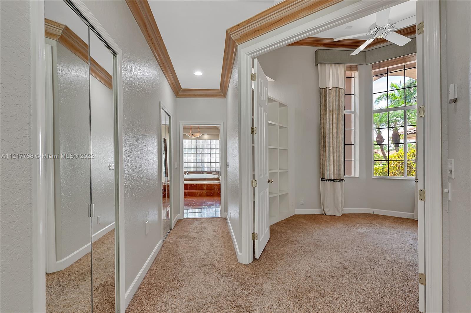 Remarkable one-story home sitting on GOLF VIEW in Weston Hills Country Club. ROOF is 2018** This home has 5 full bedrooms PLUS a bonus room!! Open Floorplan, 14 ft. high ceilings, and lots of windows invite the natural light indoors. Golf View from the main area and Master bedroom. Bathrooms have been recently renovated. Master Suite w/sitting room could be office or huge walk-in closet). Marble & Hardwood Floors in main areas. The 6th bedroom has an en-suite Cabana Bath being used as a bonus room. Accordion Shutters on the whole house.
