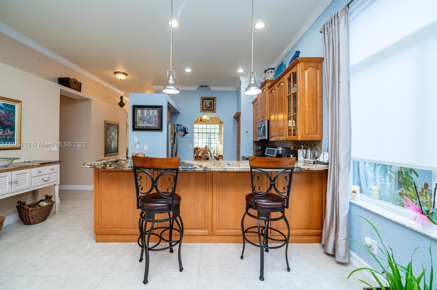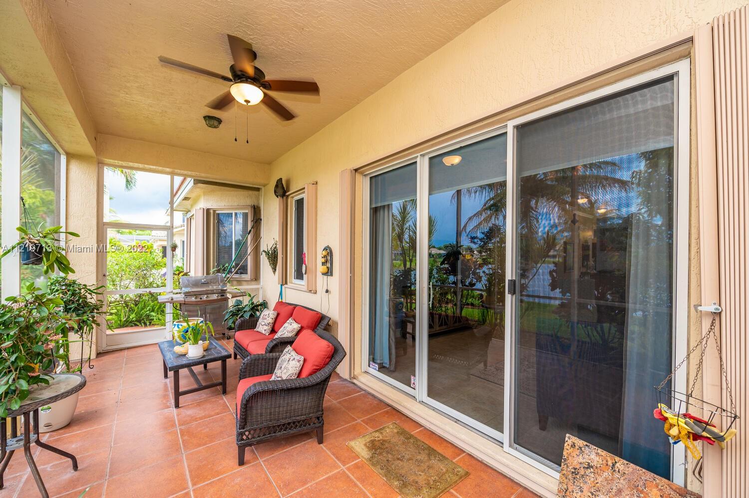 Welcome to this meticulously cared-for home in the highly sought-after community of Laguna Isles. This 3 bedroom, 2 bath, with a half bath, is only found in the Catalina model. Some features include a Brand New Roof installed on January 2022, A/C was replaced in 2020, accordion shutters, porcelain tile throughout, 42" inch wood kitchen cabinetry with Stainless steel appliances, granite countertops, and crown molding. Large master bedroom with a seating area, spacious master bathroom with a dual sink vanity, jacuzzi tub, and independent shower. Relax and enjoy your morning coffee overlooking the lake from your screened-in back porch. Laguna Isles is a gated community with 24 hr security, a community pool, tennis courts, clubhouse, and gym.