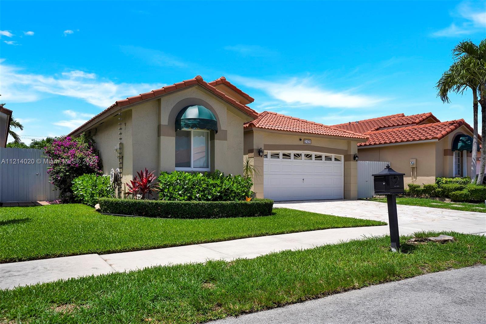Pride of Ownership in this Turnkey Home! Located in a much desired gated community of Turtle Run at Lakes of Palm Springs. The interior of the home features 3 bedrooms, 2 baths with ceramic tiles throughout; Impact windows and doors. Kitchen includes stainless steel appliances, double oven range, pull-outs on all wooden cabinetry and beautiful granite countertops that complement the eat-in kitchen. A spa experience awaits you in the Master bathroom shower at the end of the day. You can then unwind in a charming enclosed patio with a lush tropical feel perfect for outside dining. Other features include recessed lighting, closet organizers, a pump system for the sprinklers, garage cabinetry, roof tile coating, travertine marble driveway. Close to shopping, dining and Palmetto expressway.